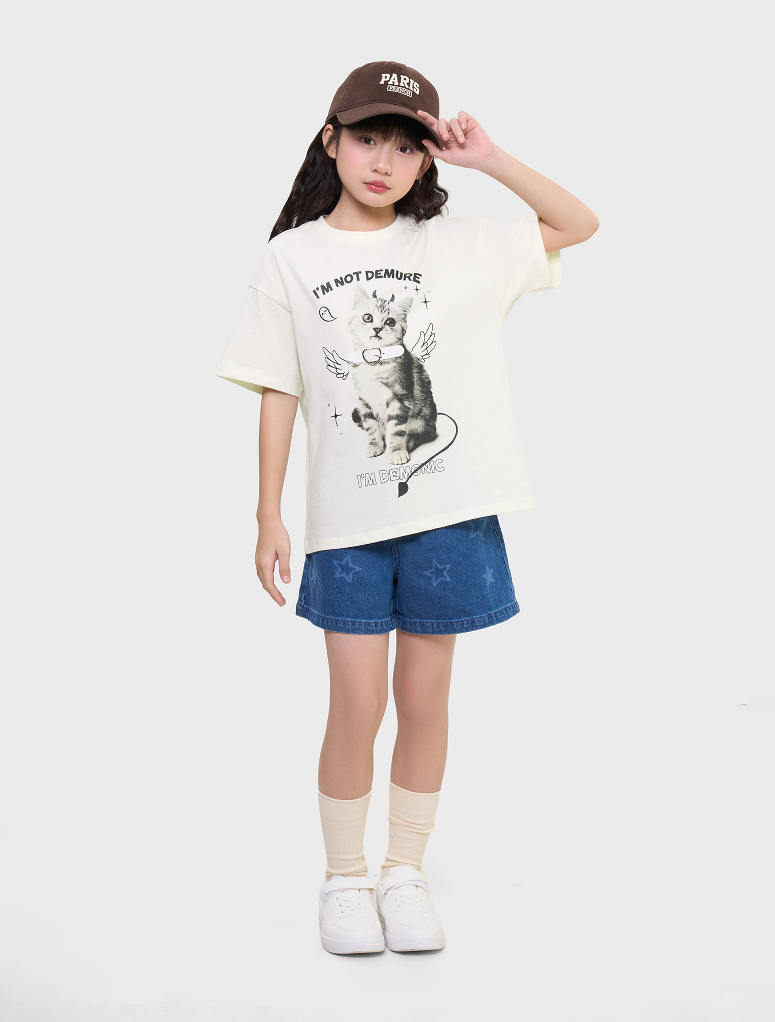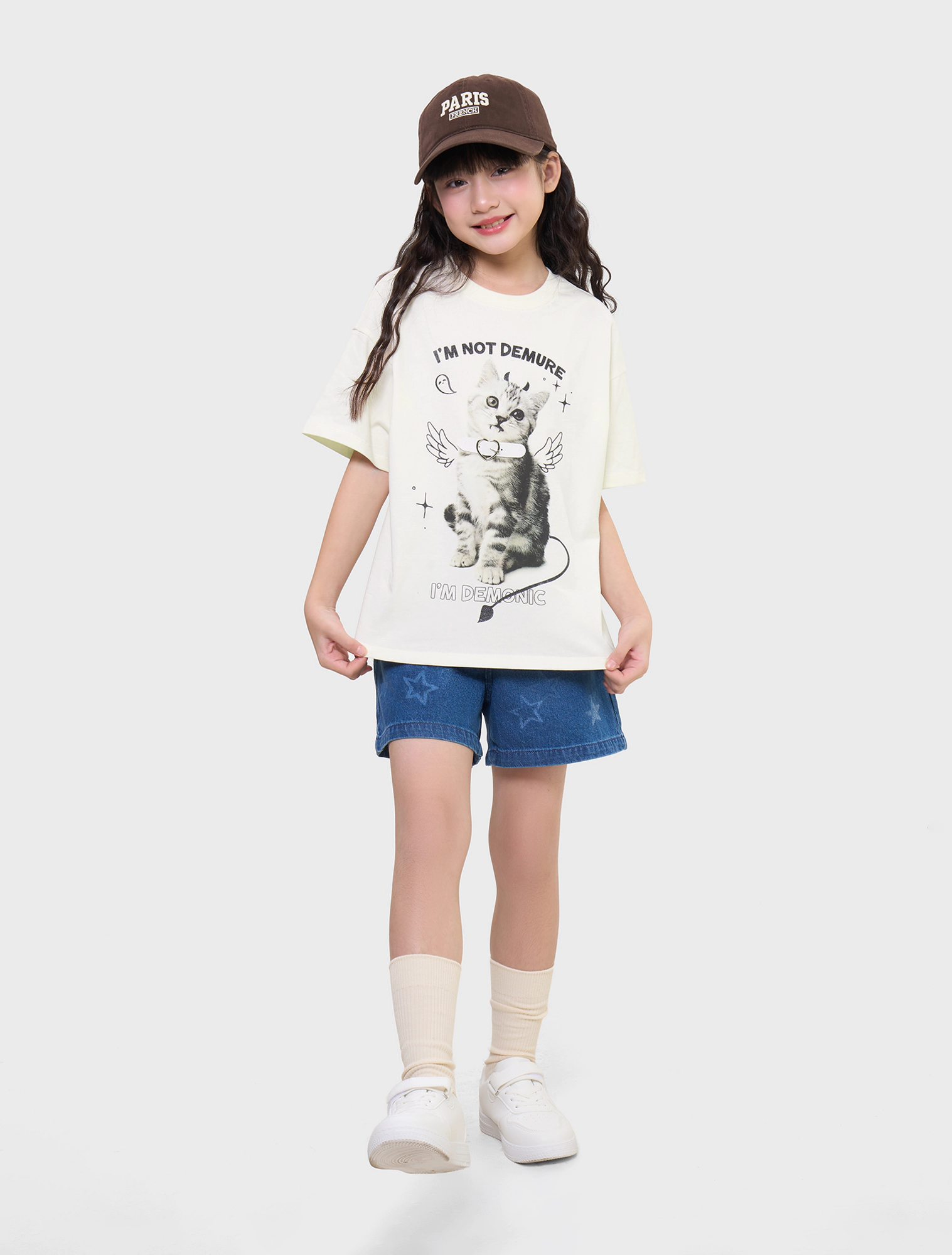 Áo phông ngắn tay bé gái cotton USA. Phom áo cơ bản, cổ tròn dễ mặc. Màu sắc, hình in dễ thương phù hợp bé gái. Chất liệu dệt kim 100% Cotton mềm mại, thông thoáng.
