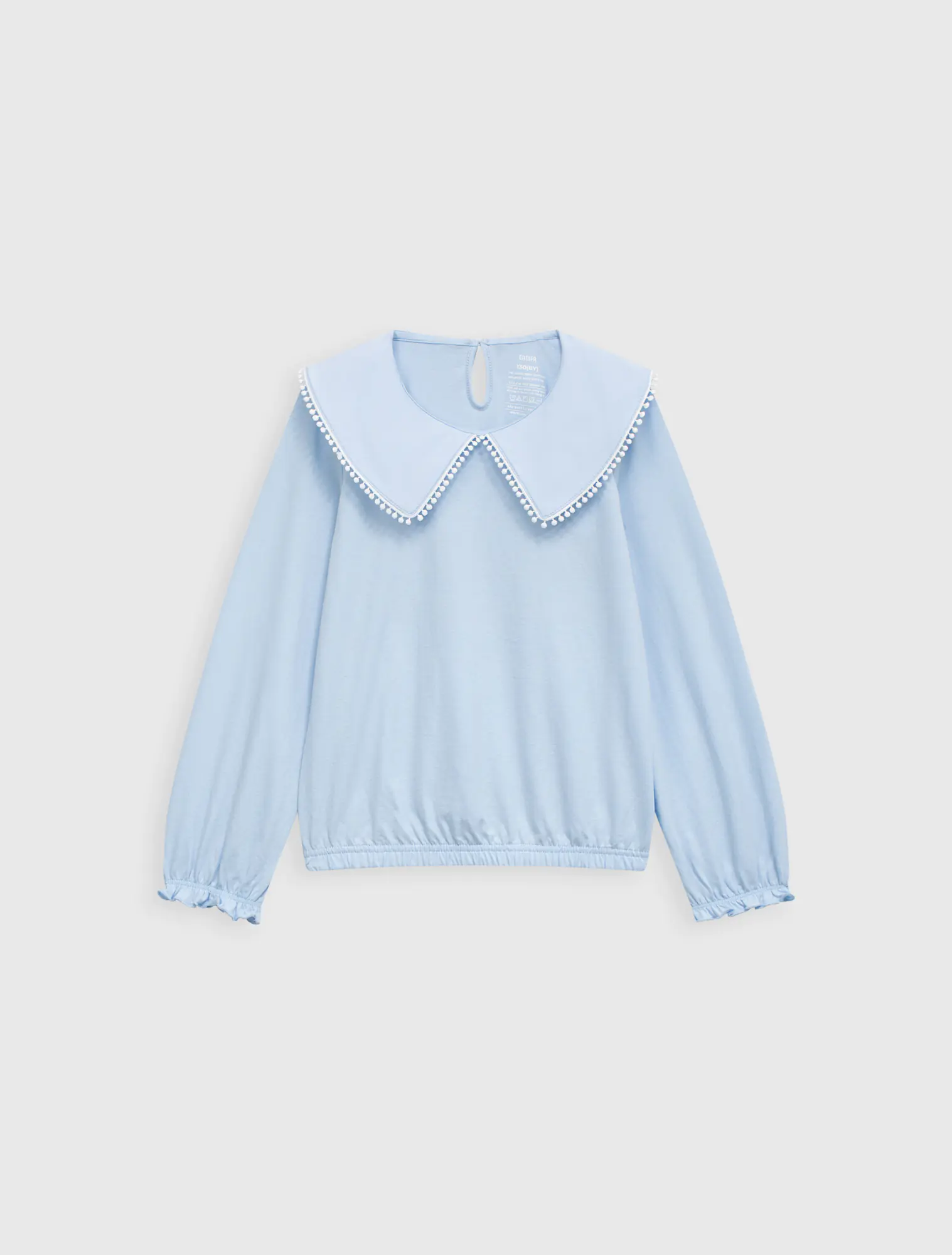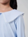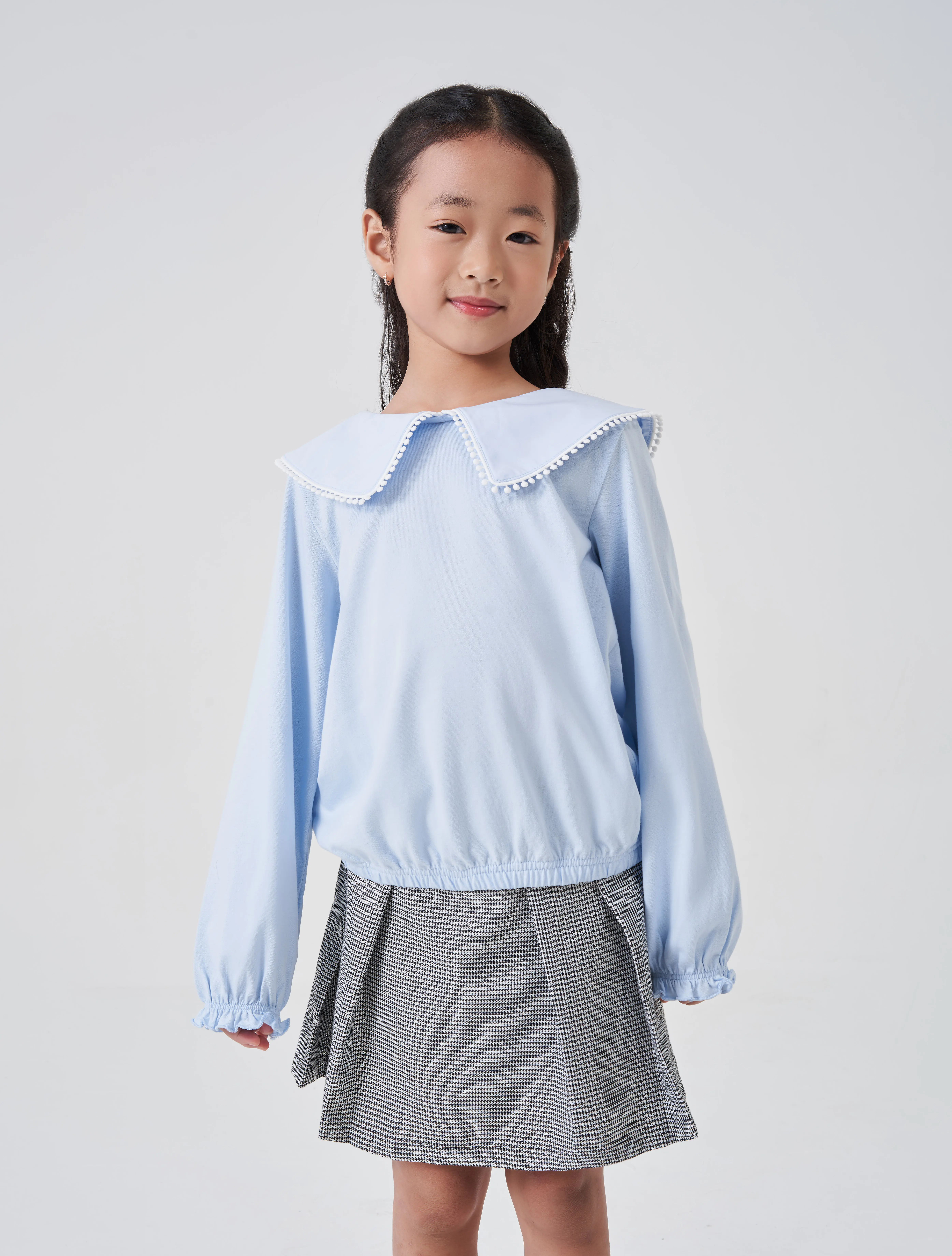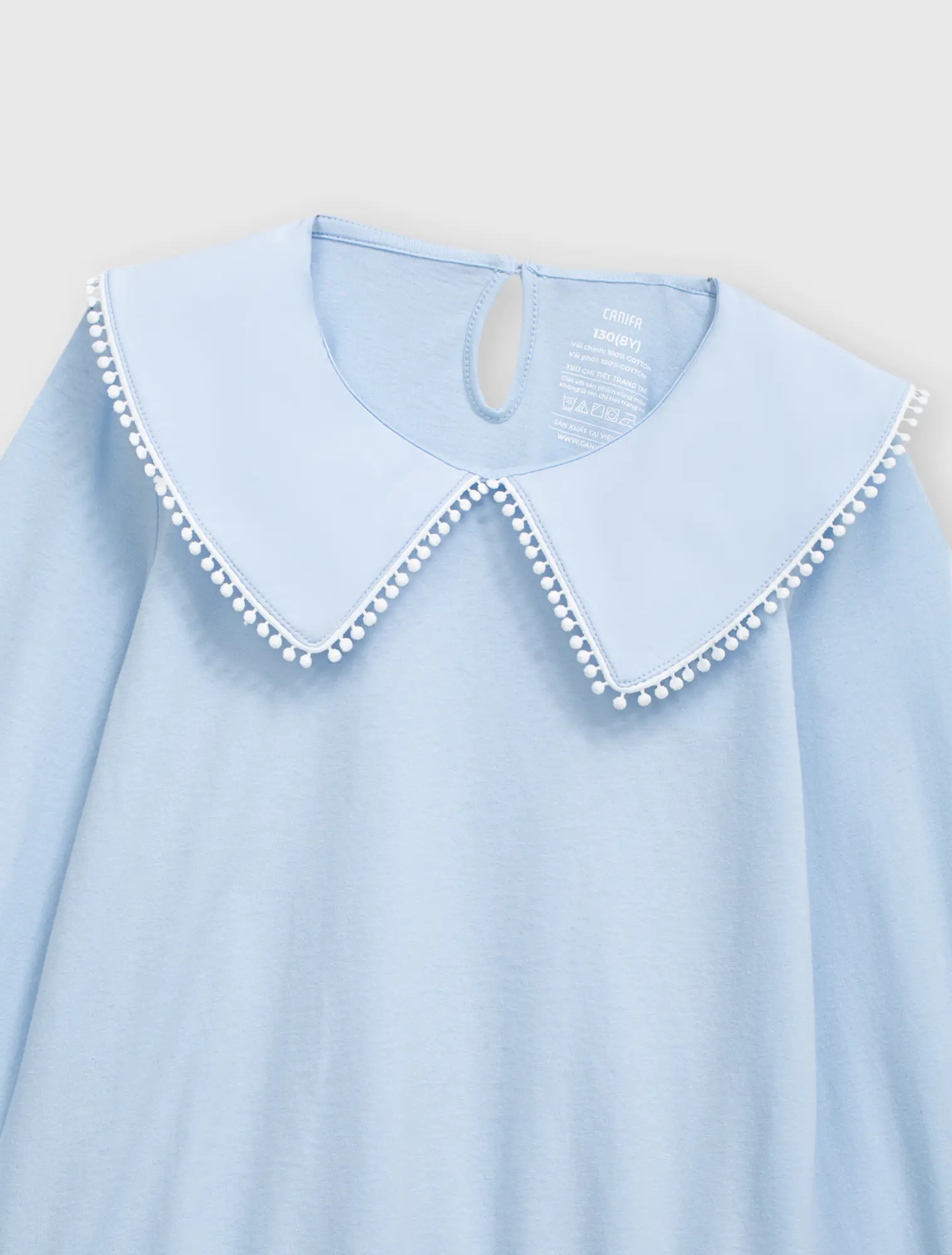 Áo kiểu bé gái có bèo cổ tạo sự nữ tính, phù hợp phối với nhiều loại trang phục cho bé gái.