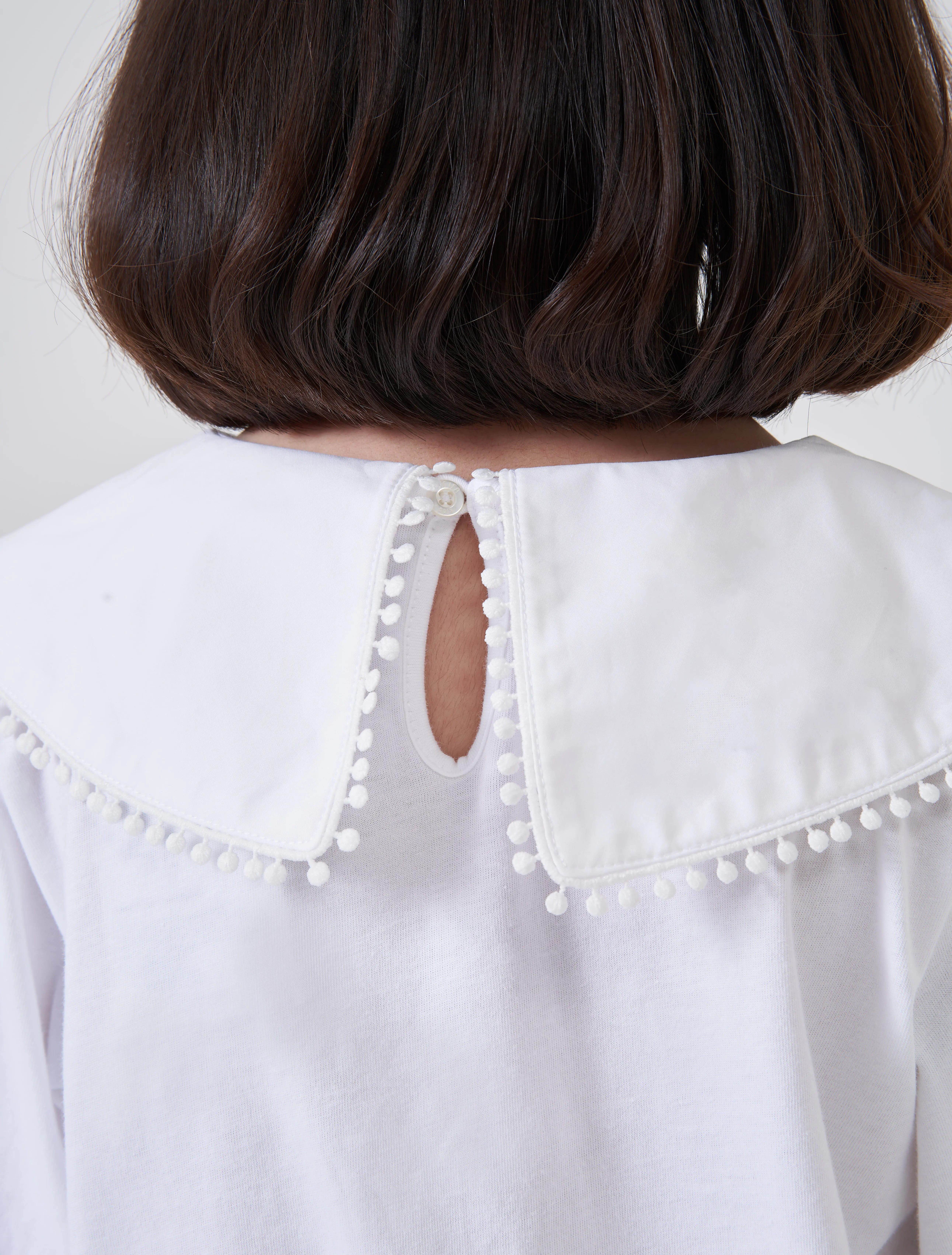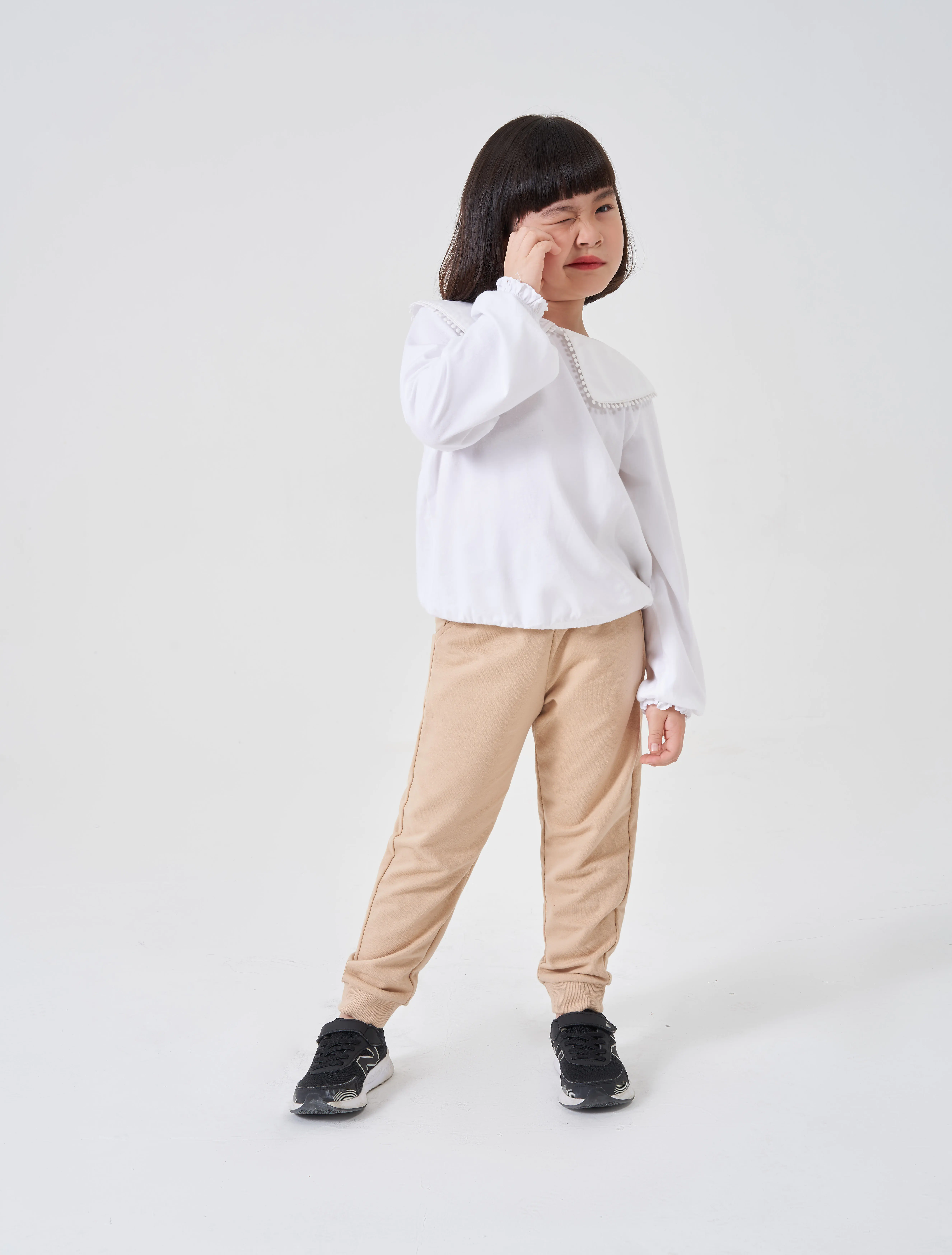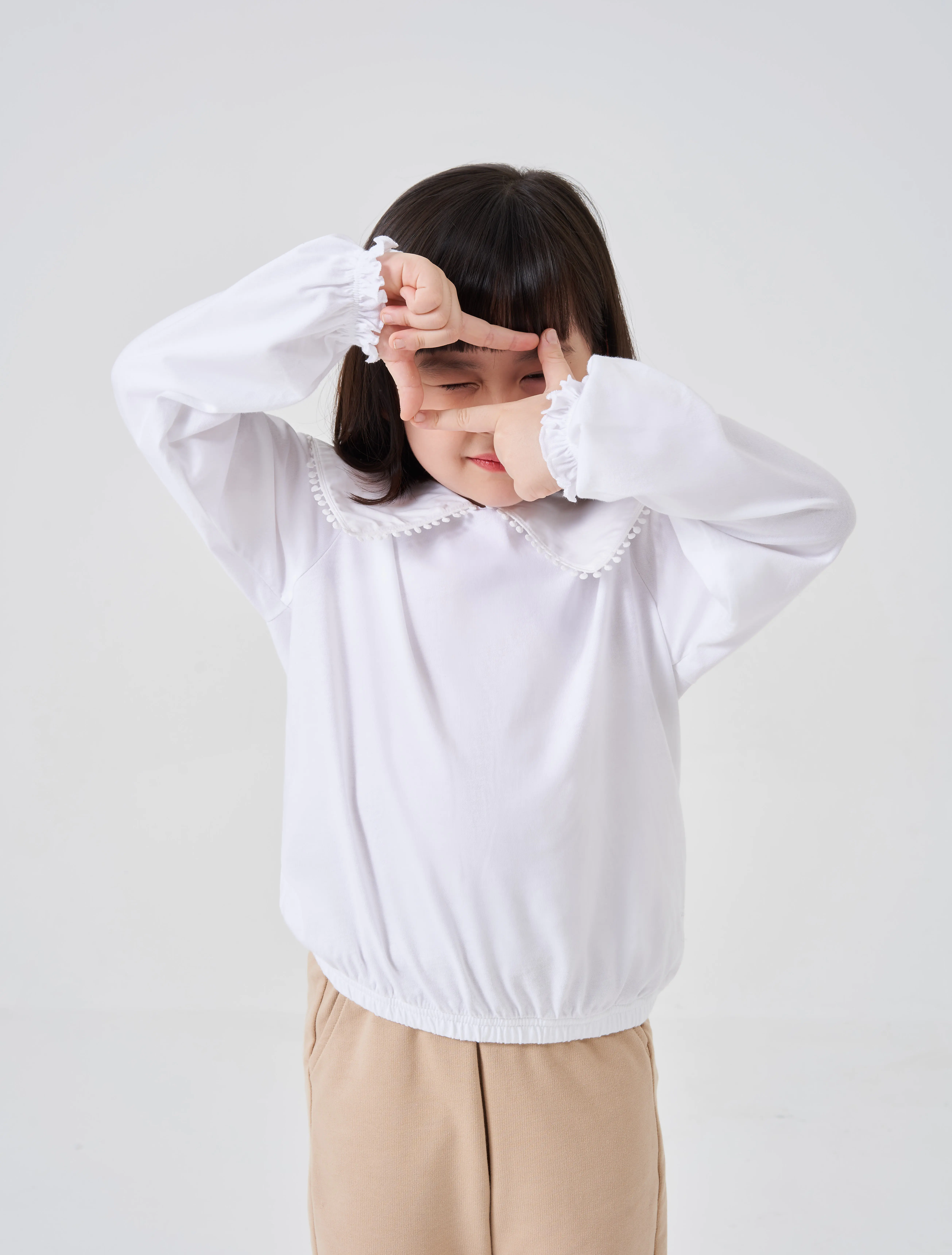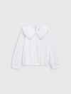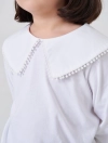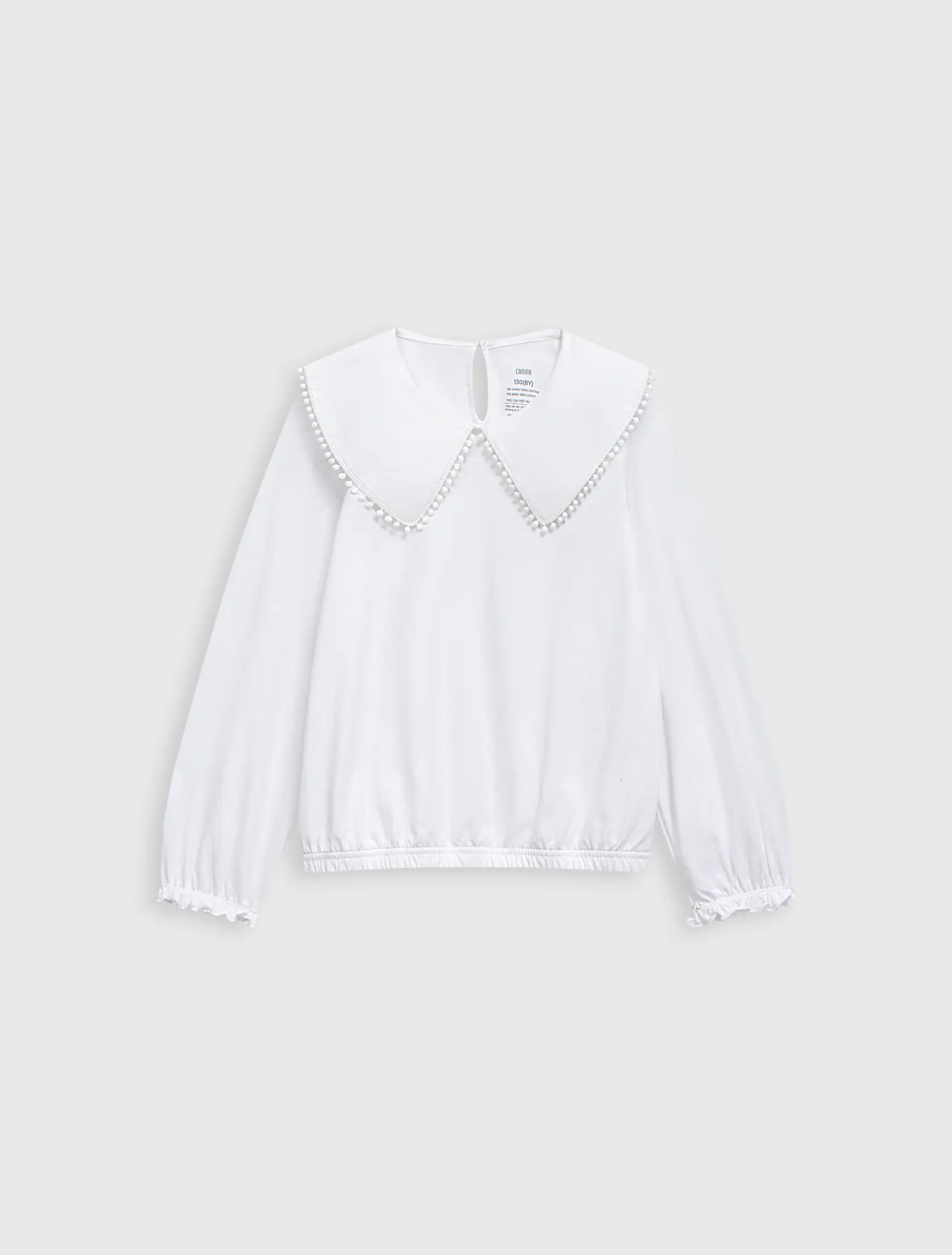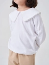 Áo kiểu bé gái có bèo cổ tạo sự nữ tính, phù hợp phối với nhiều loại trang phục cho bé gái.