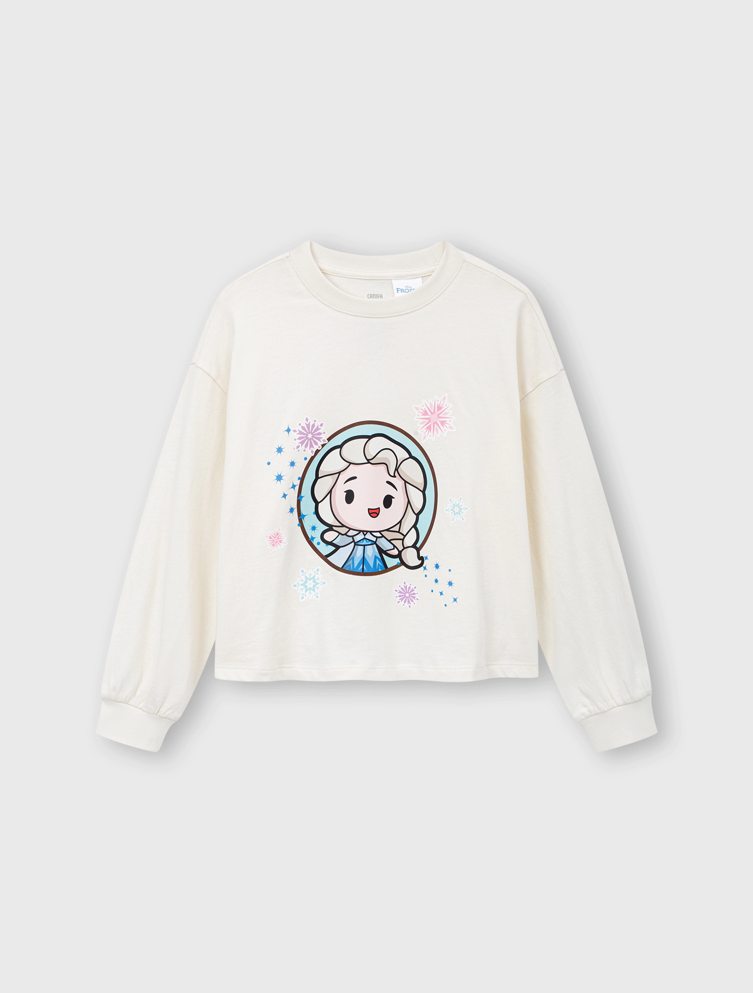 Dáng áo cơ bản dễ mặc, màu sắc tươi sáng, hình in công chúa Disney đáng yêu phù hợp bé gái.