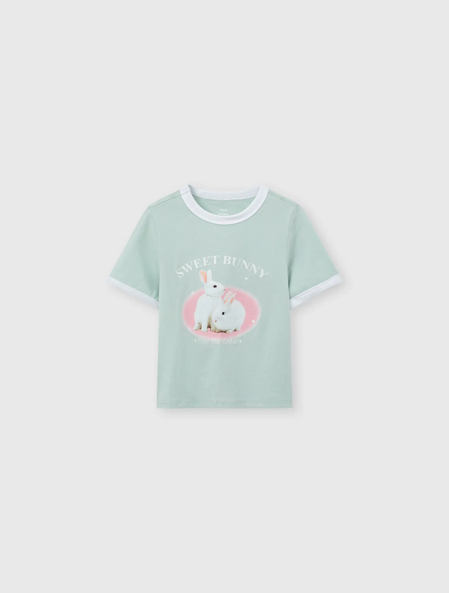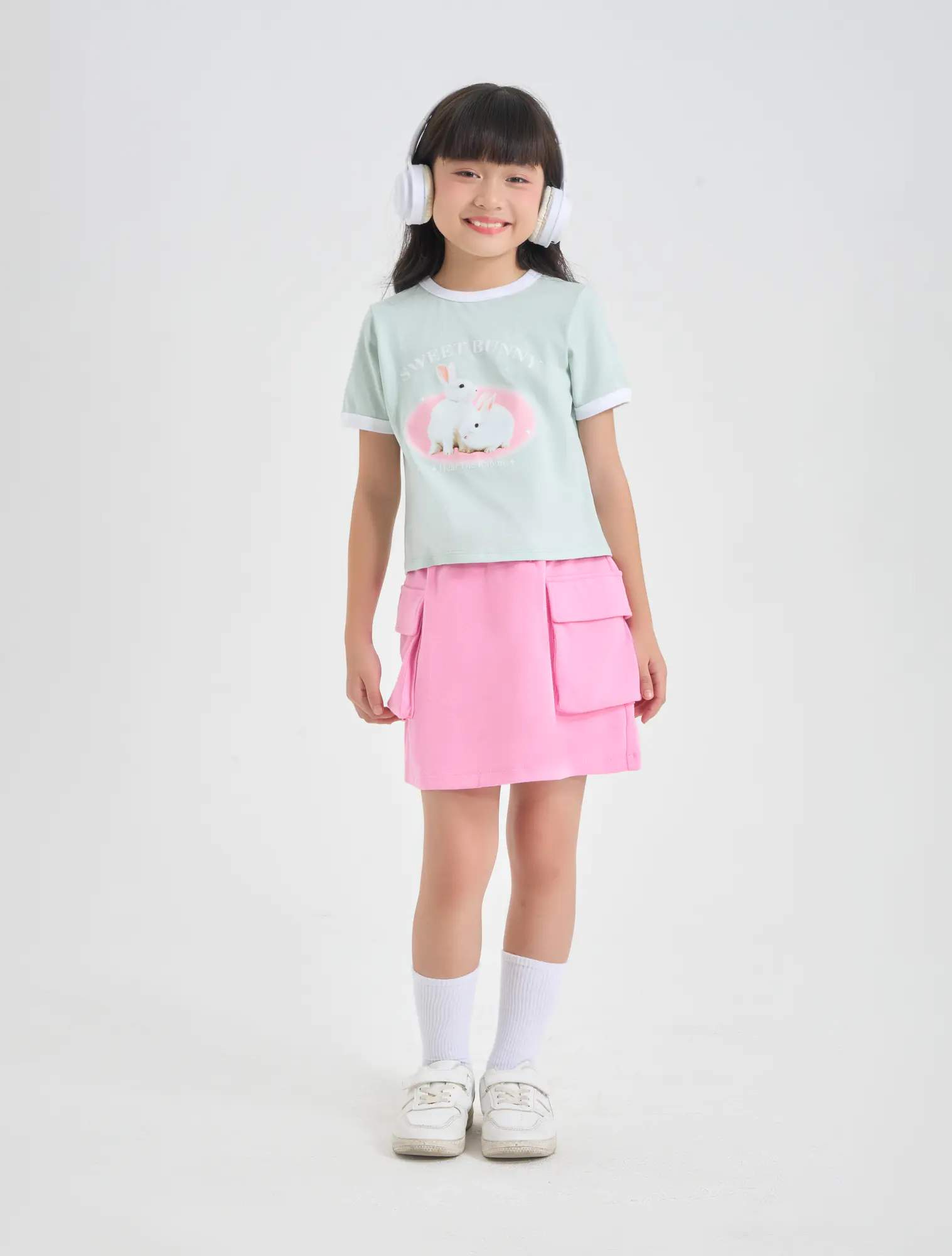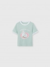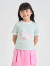 Áo phông ngắn tay bé gái kiểu dáng Baby tee hiện đại, gọn gàng, nữ tính. Màu sắc tươi sáng, phối màu cổ áo và gấu tay lạ mắt, hình in dễ thương phù hợp cho bé sử dụng trong nhiều hoàn cảnh.
