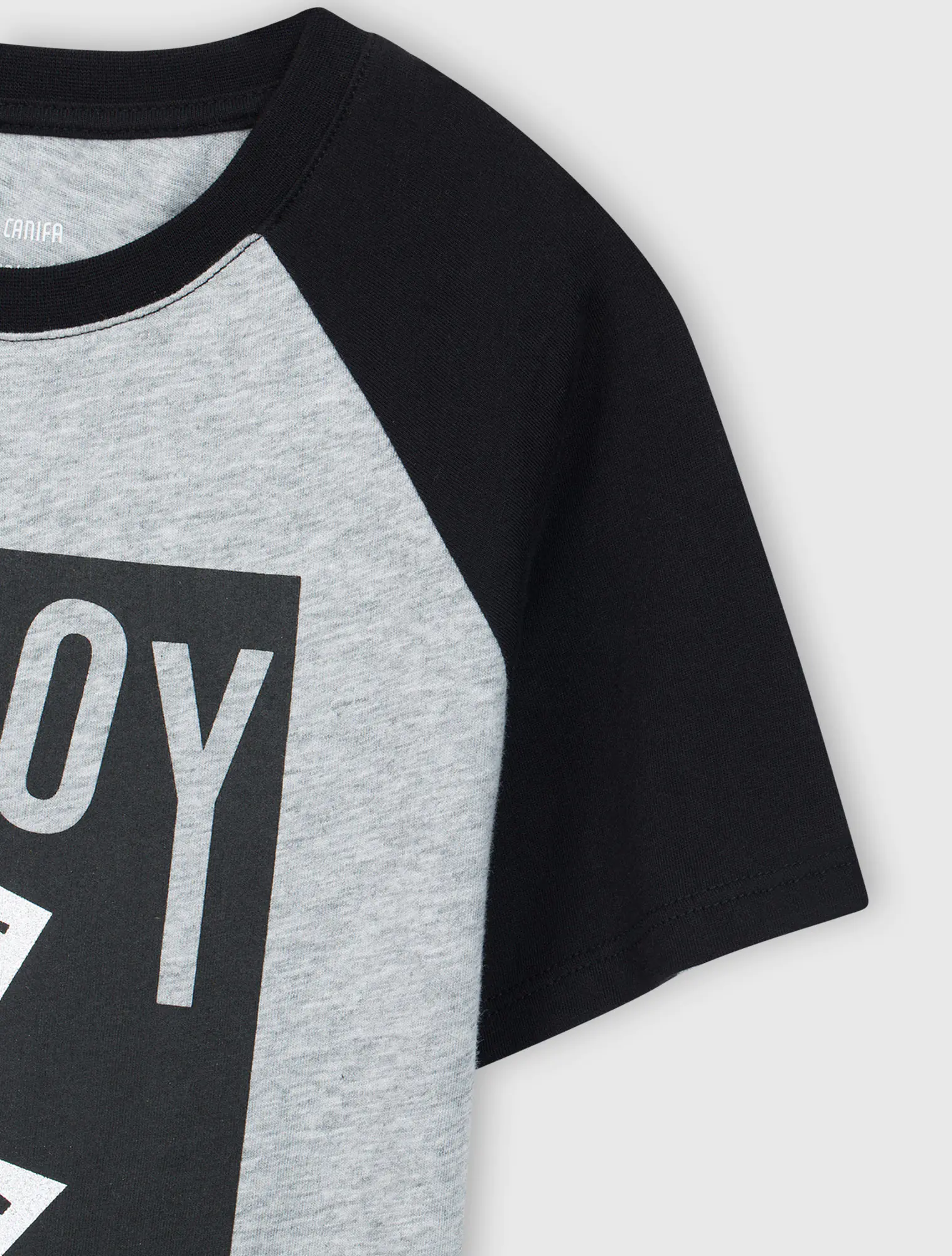 Dáng regular, cổ tròn, tay cộc, áo phối màu.
