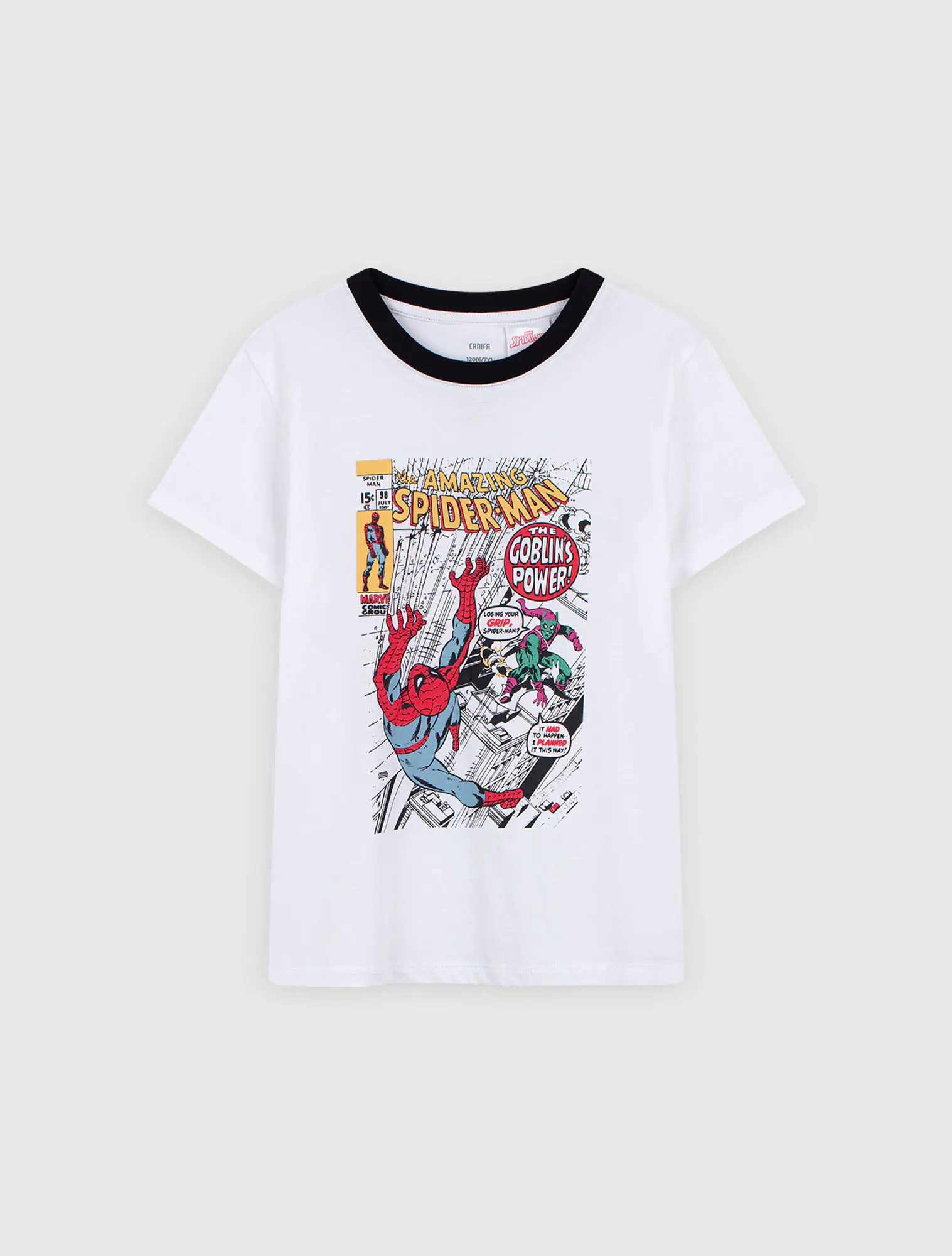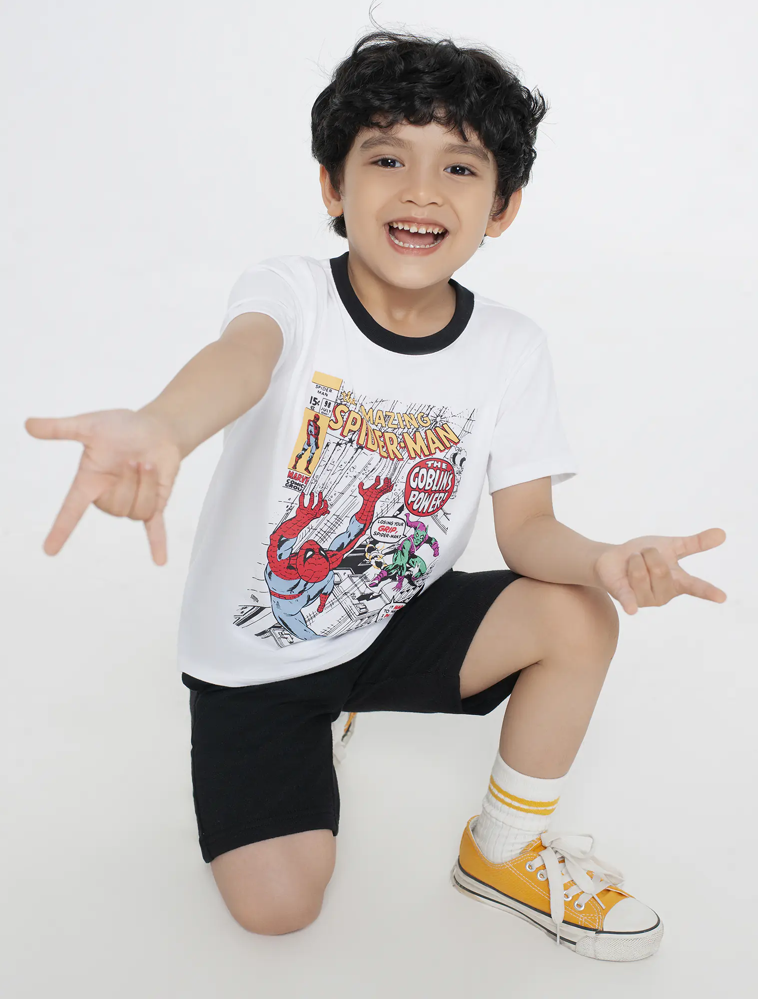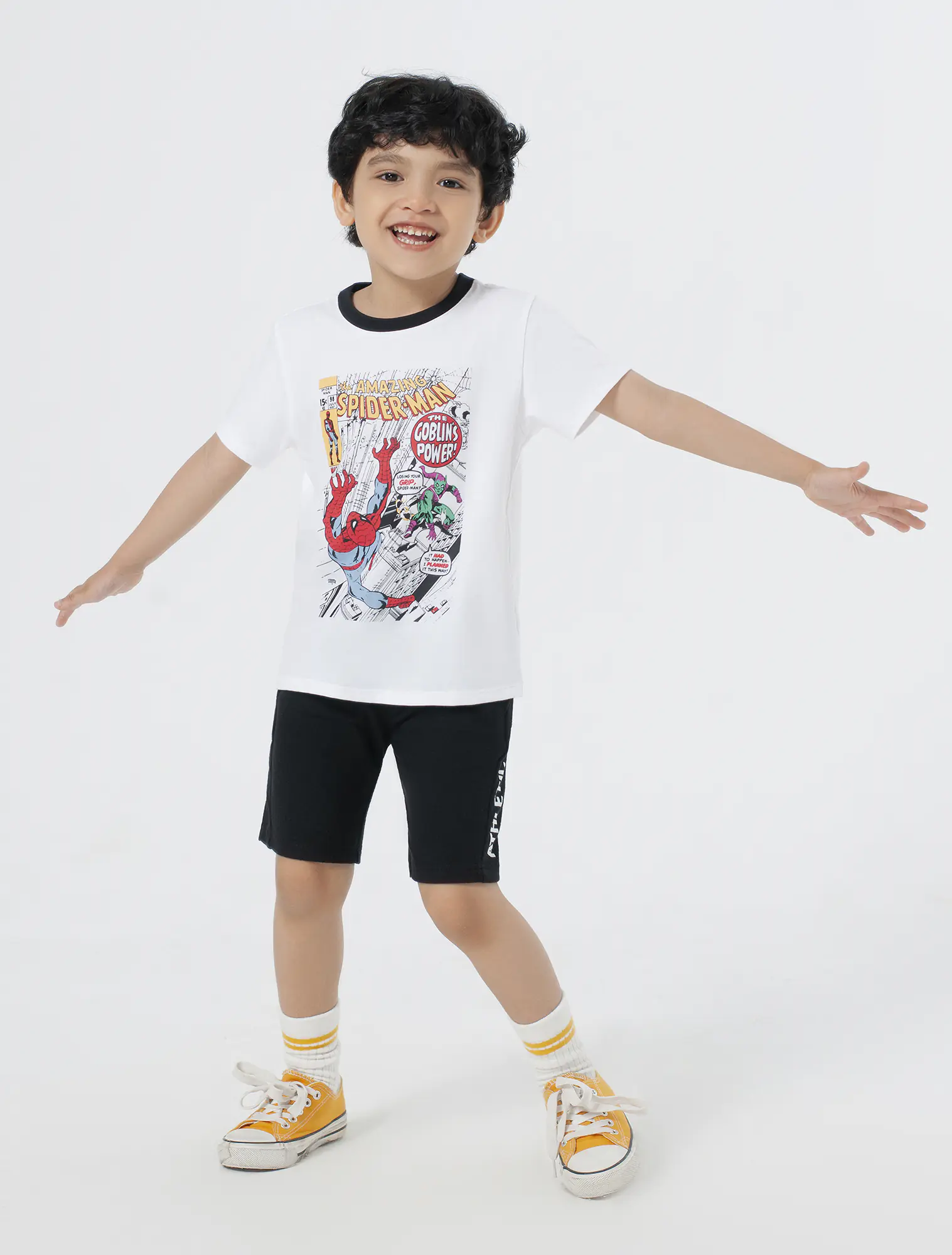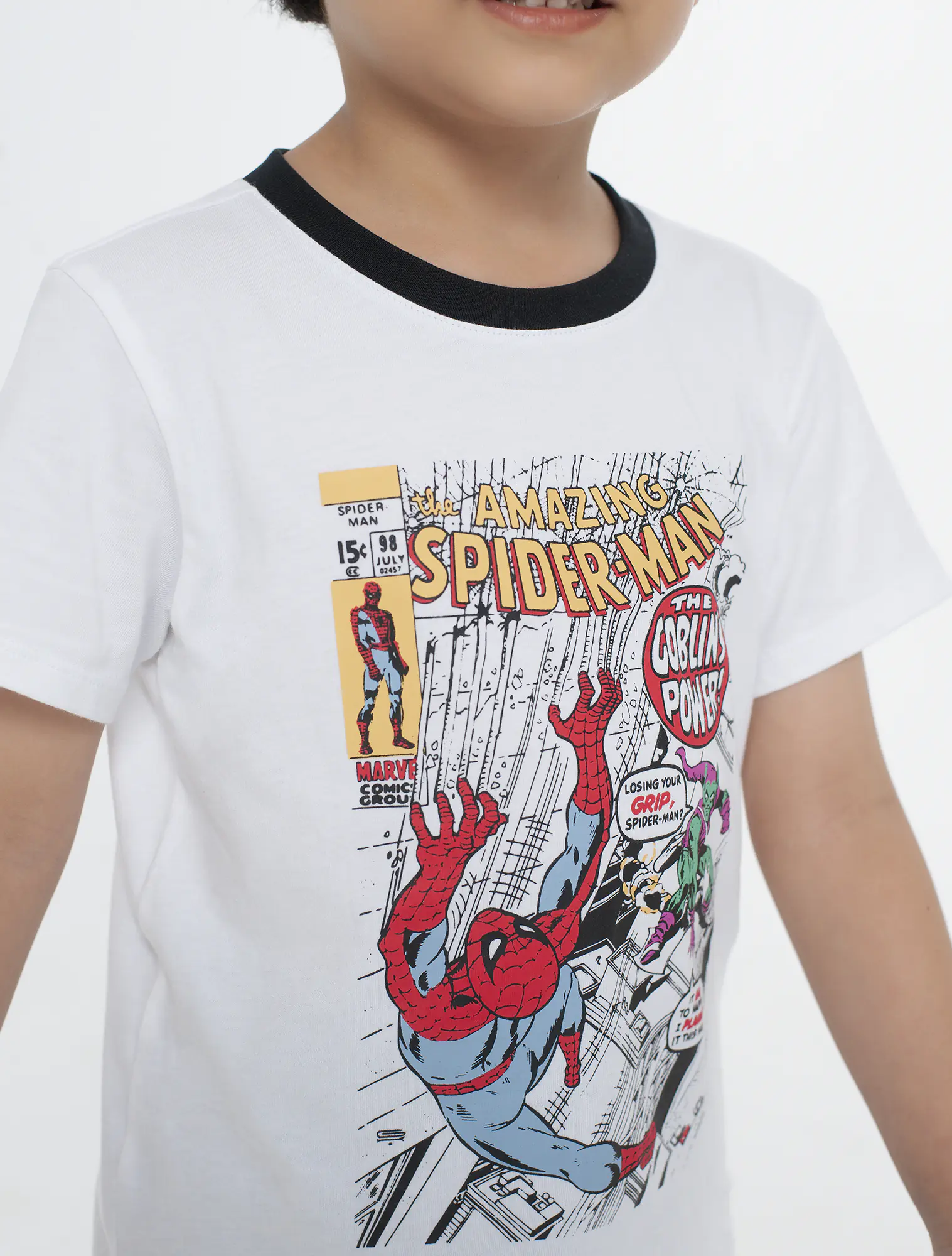 Áo phông bé trai có viền bo cổ, in hình nhân vật Spider Man chất liệu cotton USA