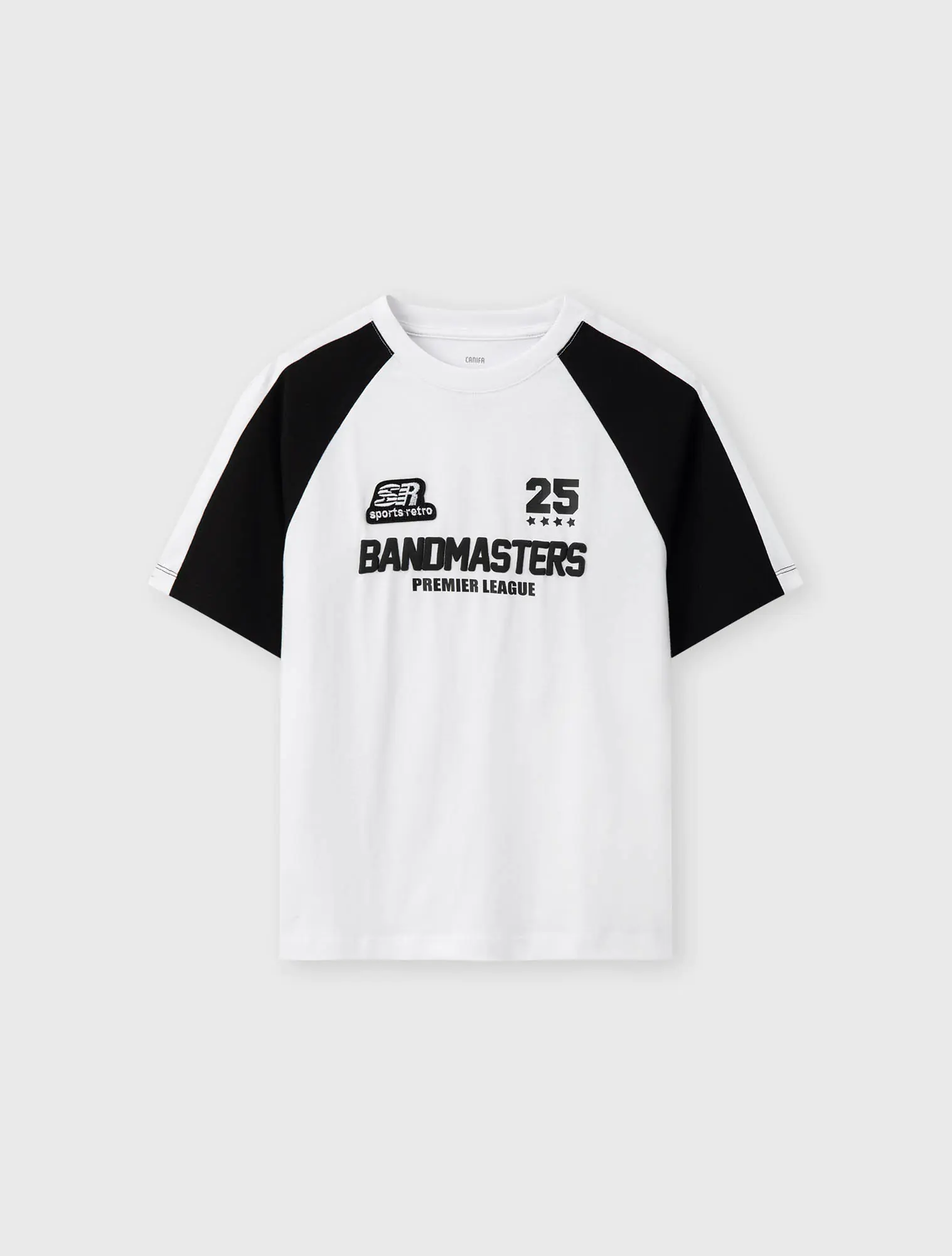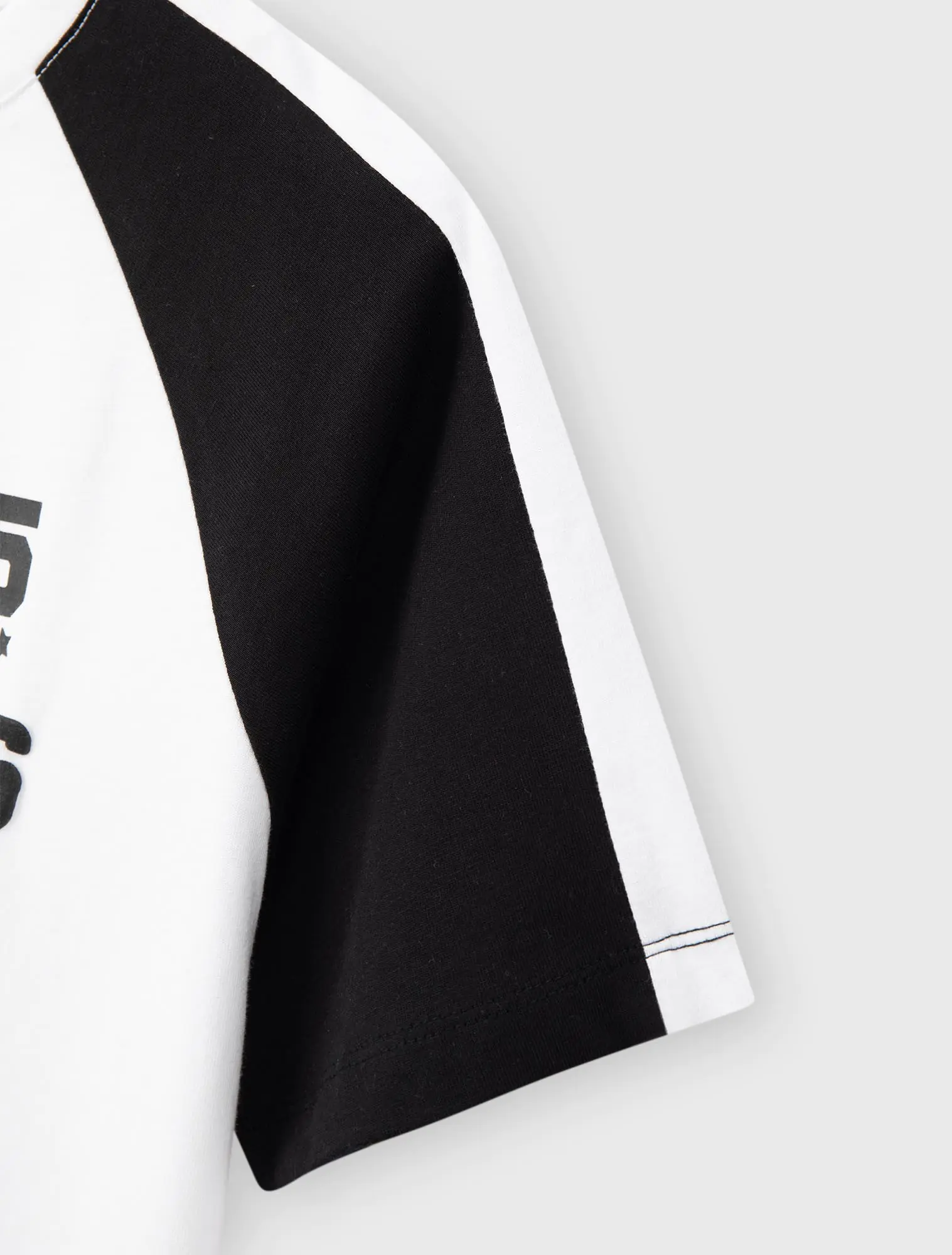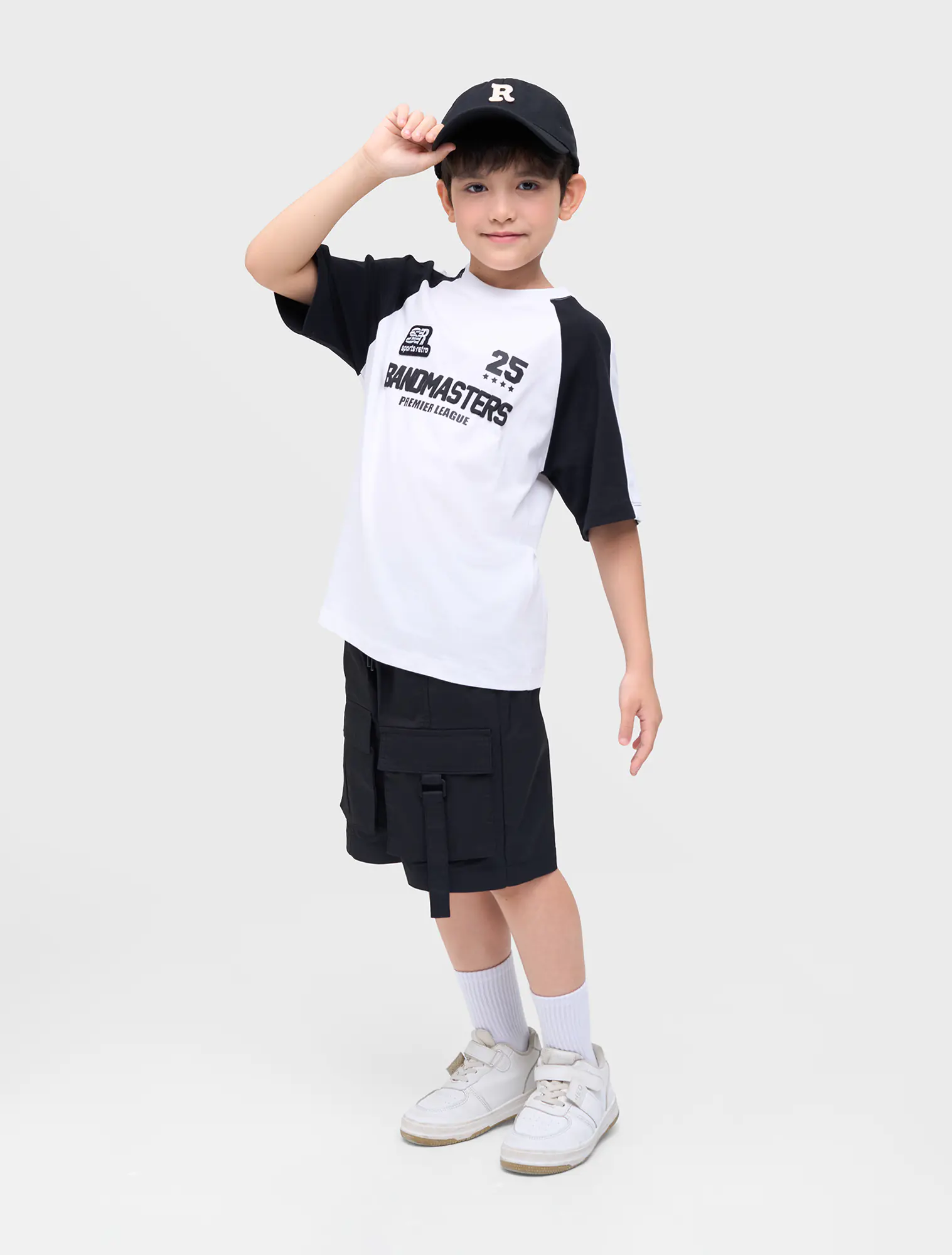 Áo phông bé trai in hình phong cách sport, phom dáng relax thoải mái, chất liệu cotton mềm mại thoáng mát, can phối màu khỏe khoắn tạo sự năng động cho người mặc.