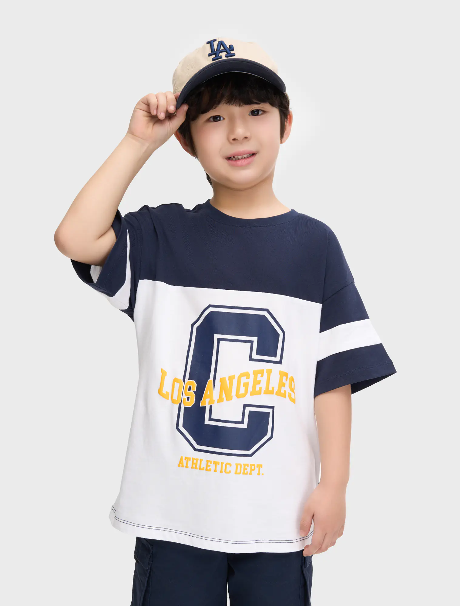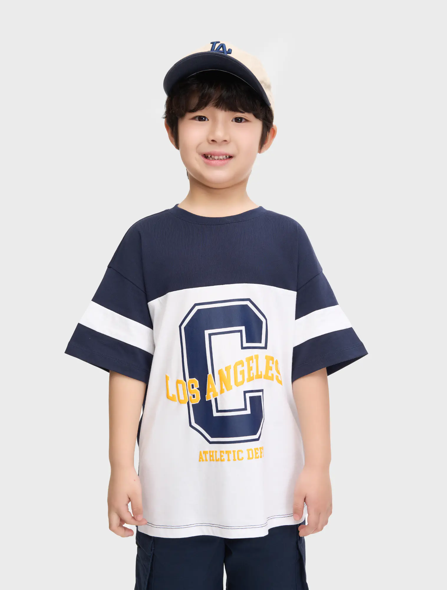 Áo phông bé trai phong cách sport can phối màu thân áo, chất liệu cotton thoáng mát, hình in sport khỏe khoắn năng động.