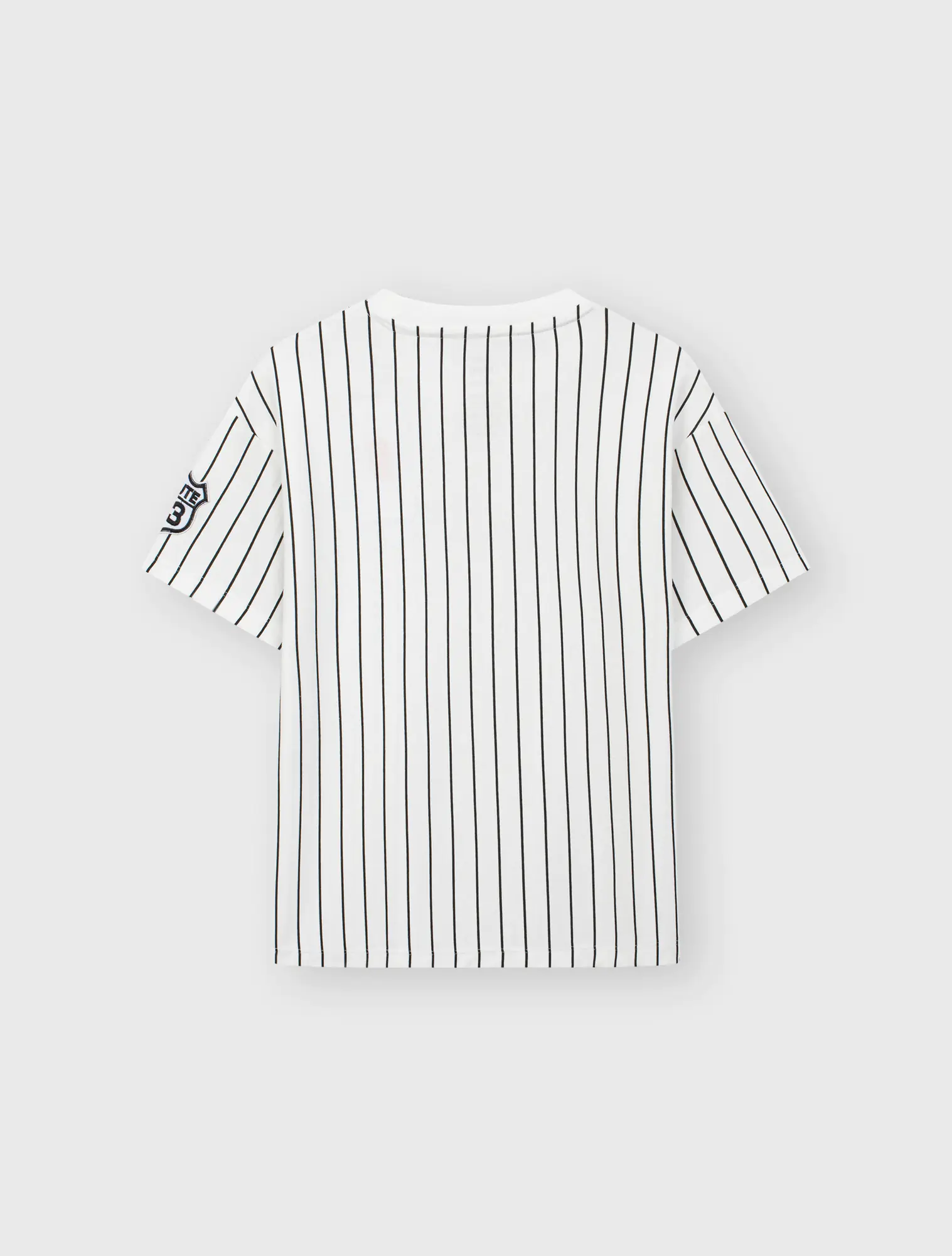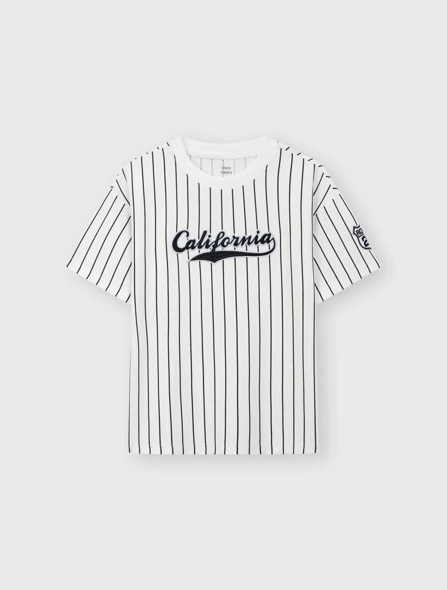 Áo phông bé trai kẻ sọc, chất liệu cotton mềm mại thoáng mát, hình patch khỏe khoắn năng động tạo sự mới mẻ cho các bạn nhỏ sử dụng trong nhiều hoạt động.