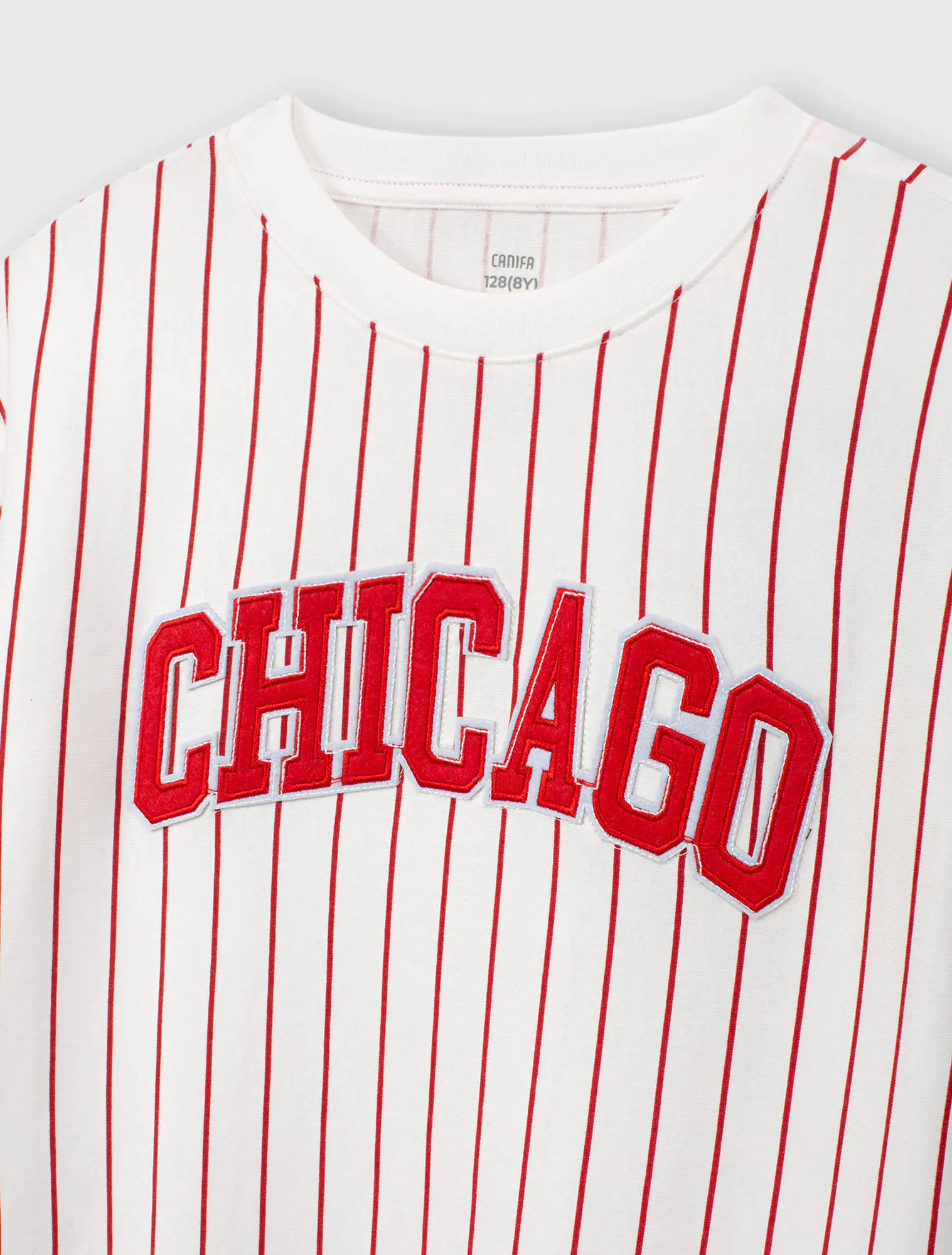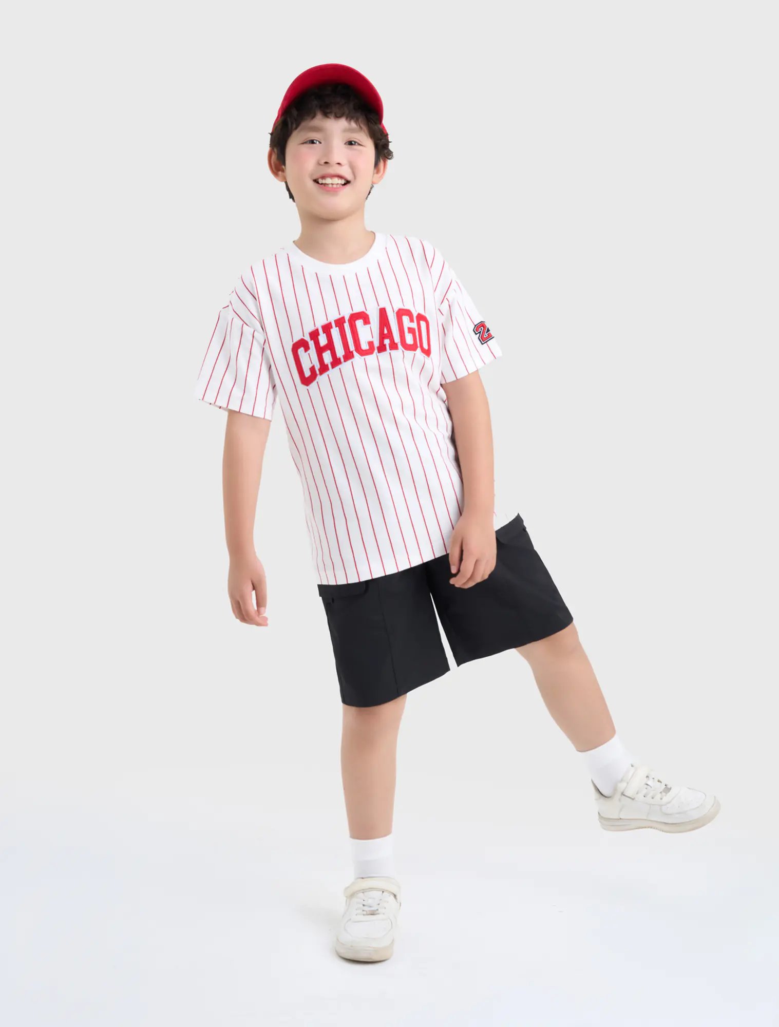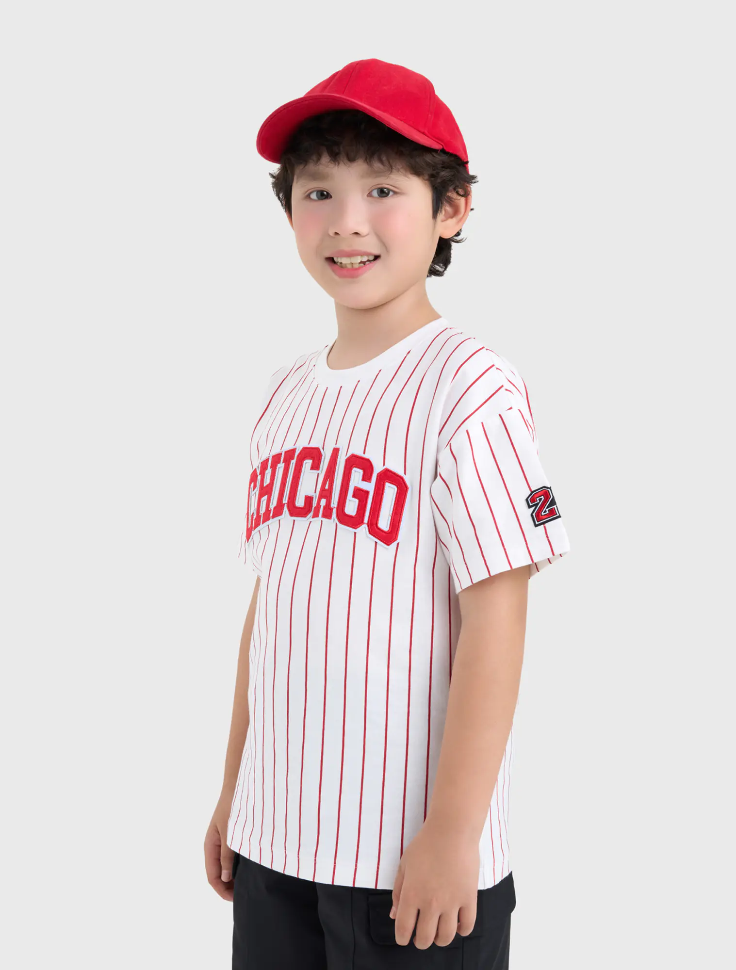 Áo phông bé trai cotton kẻ sọc đính patch trang trí