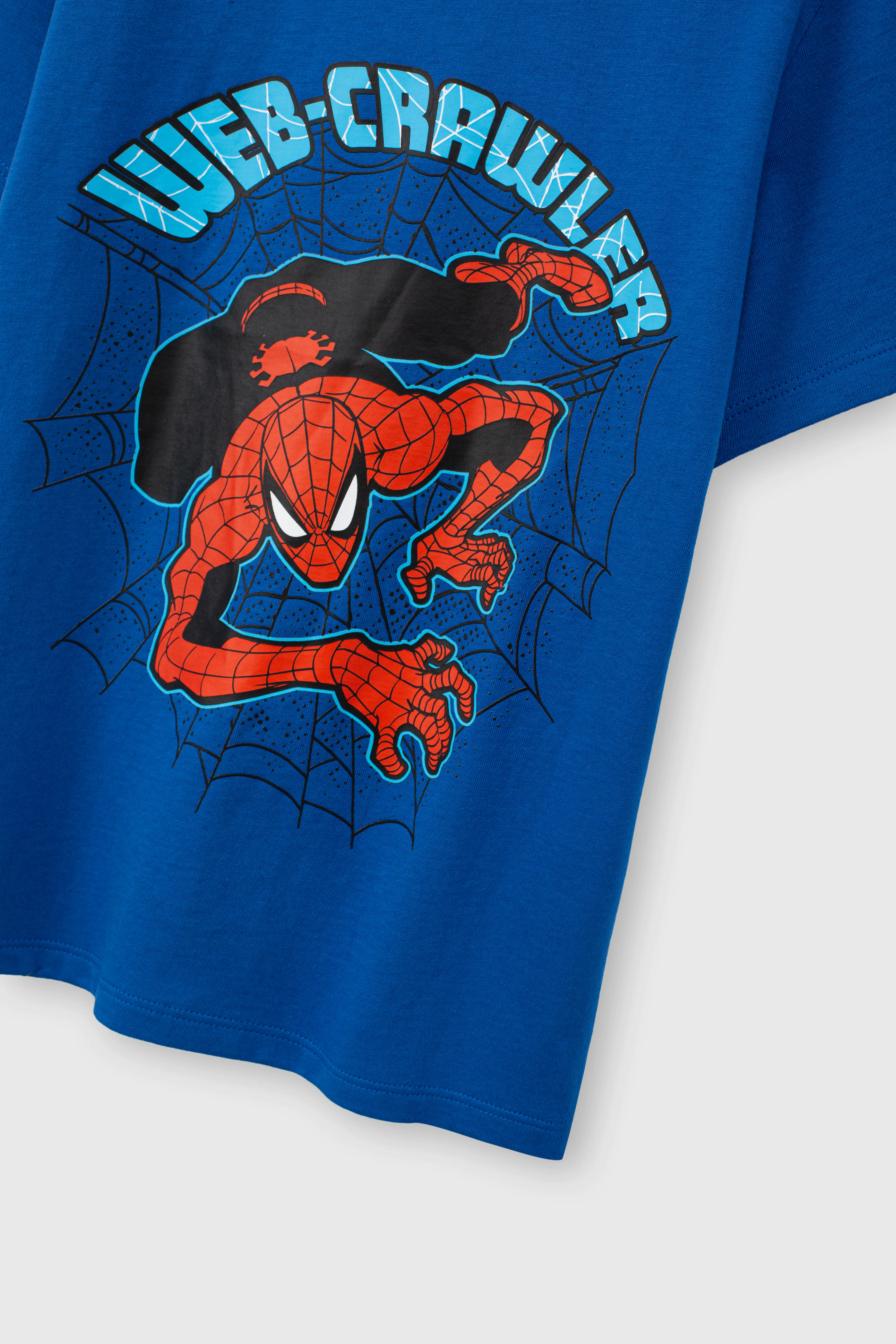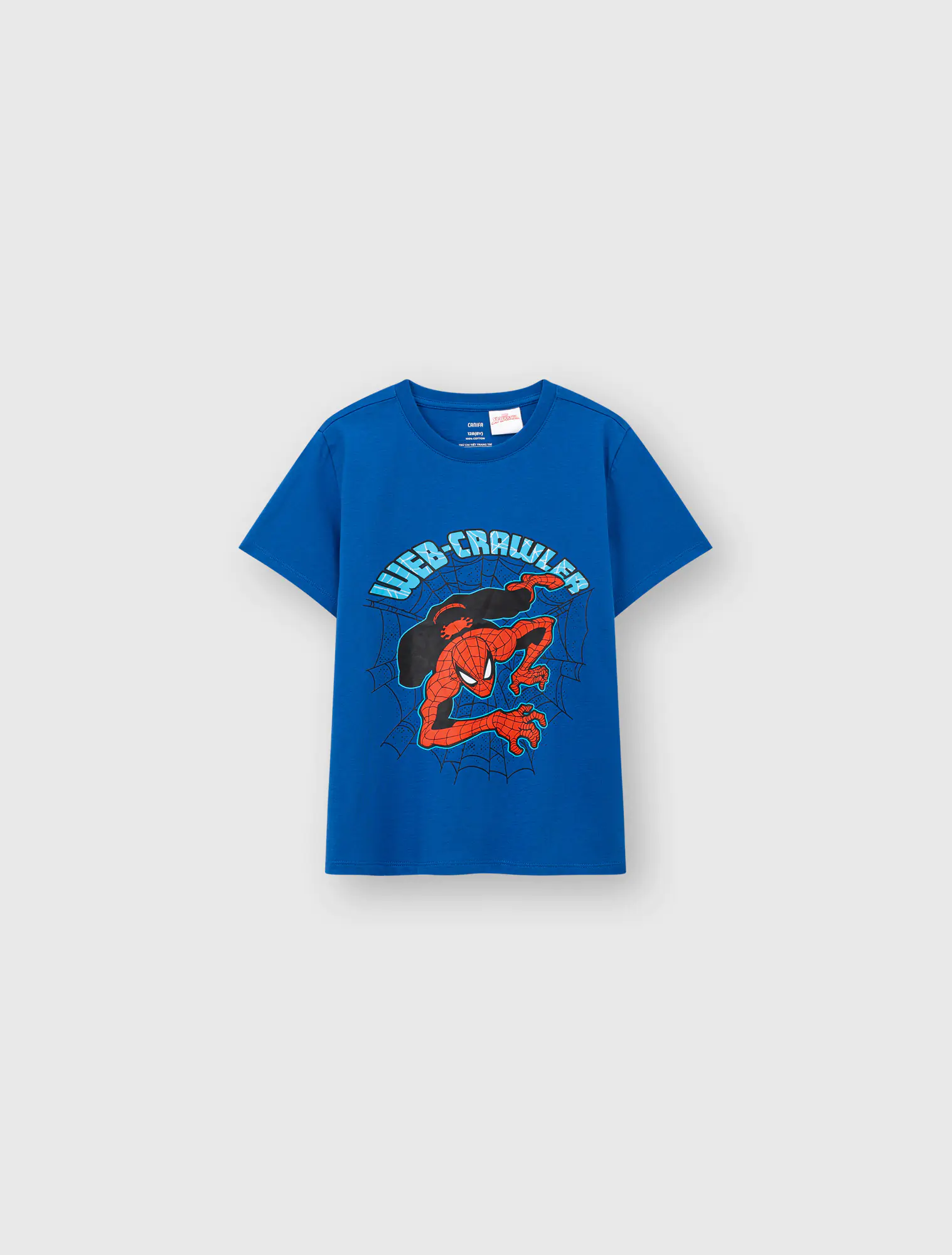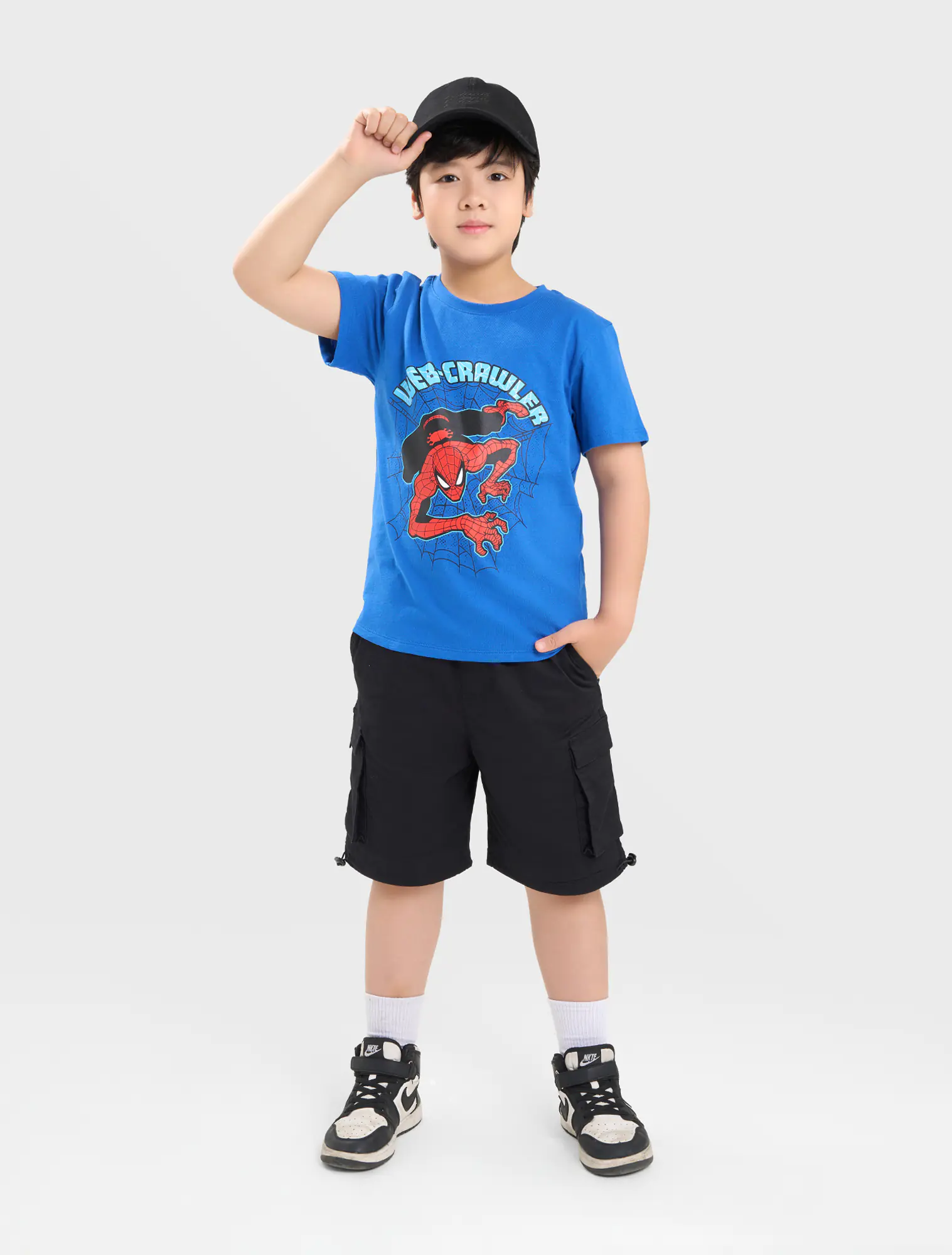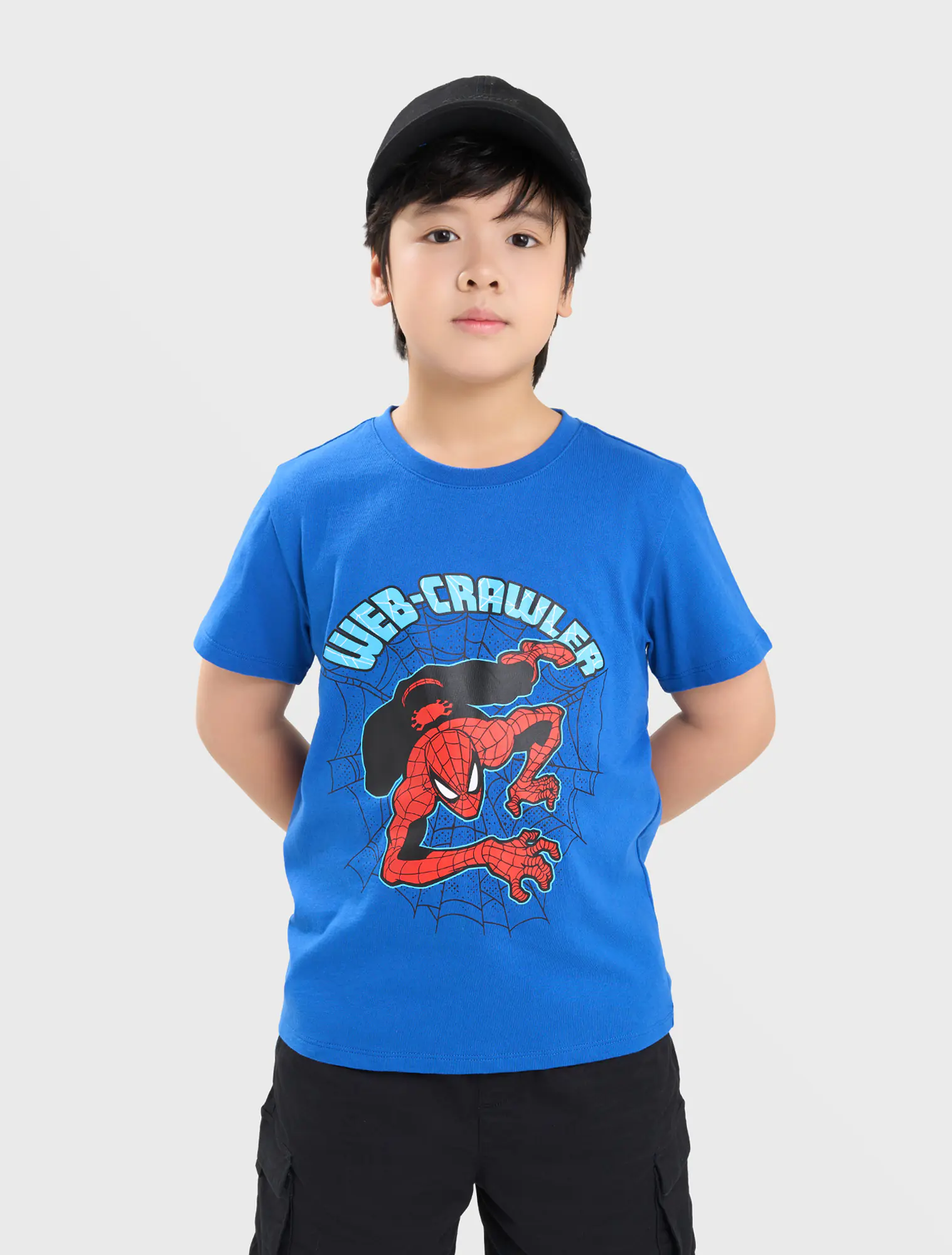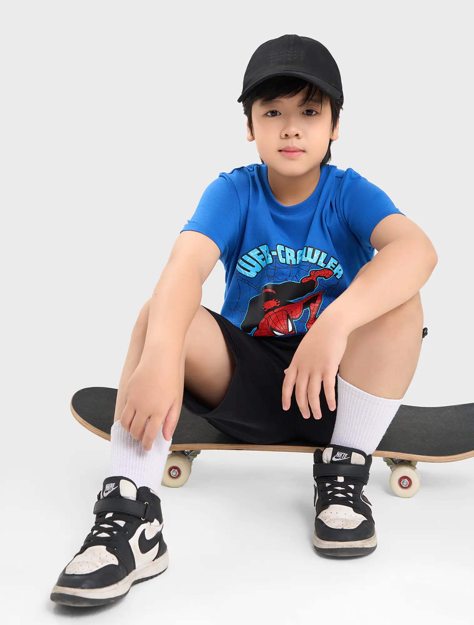 Áo phông bé trai in hình nhân vật Spiderman, chất liệu cotton thoáng mát mềm mại. Hình in bắt mắt phù hợp với sở thích của các bé.
