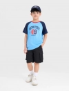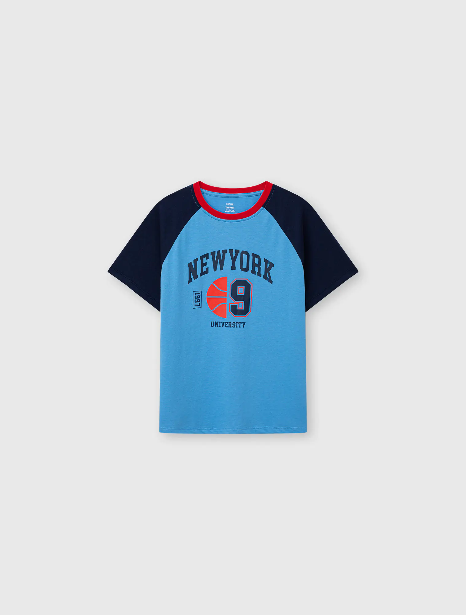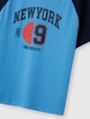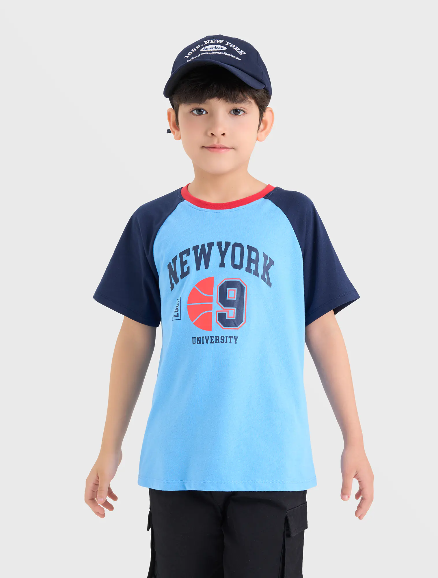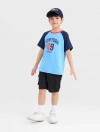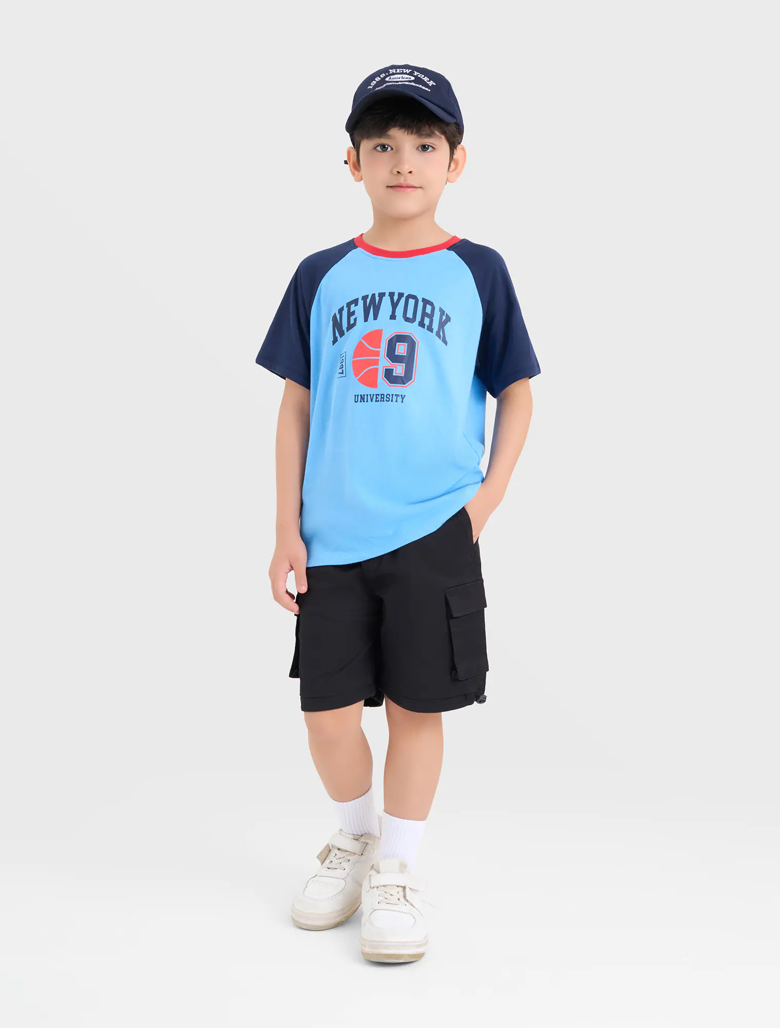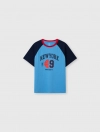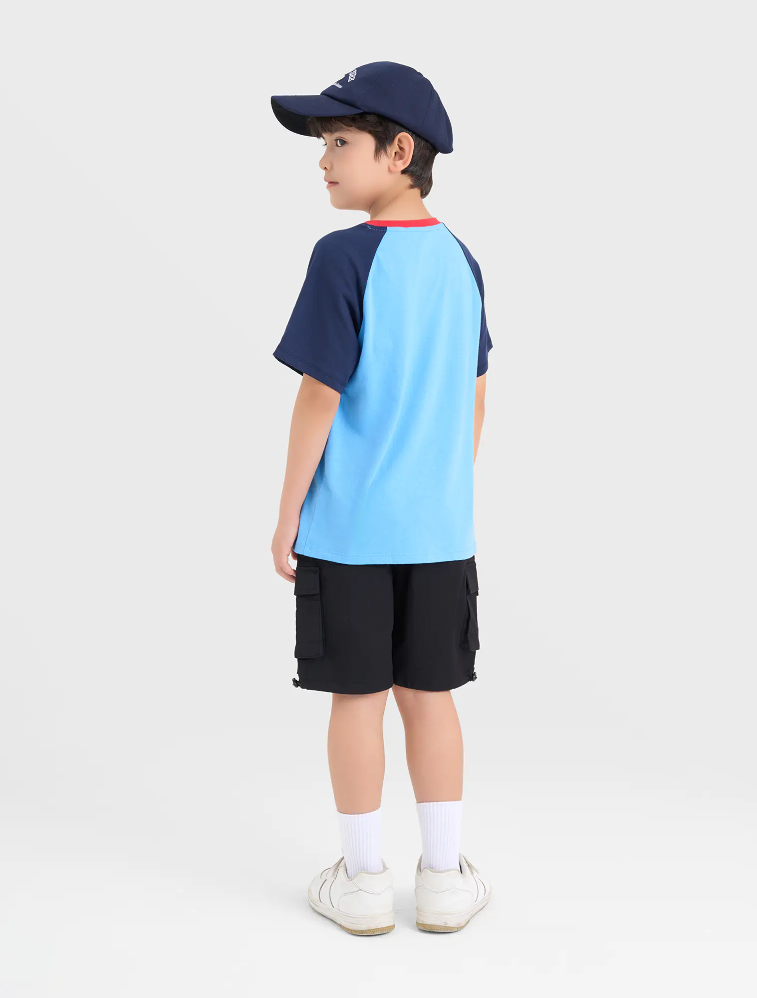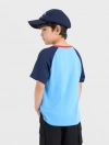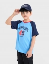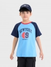 Áo phông bé trai phối màu tay áo và cổ áo, chất liệu cotton pha, hình in khỏe khoắn năng động.
