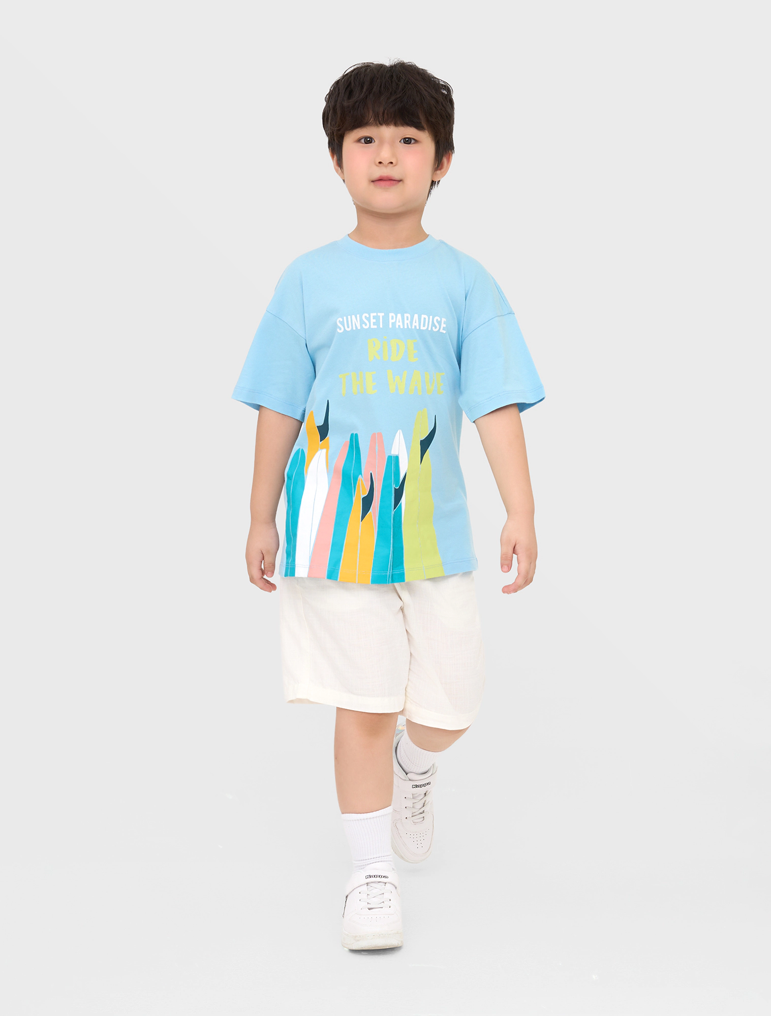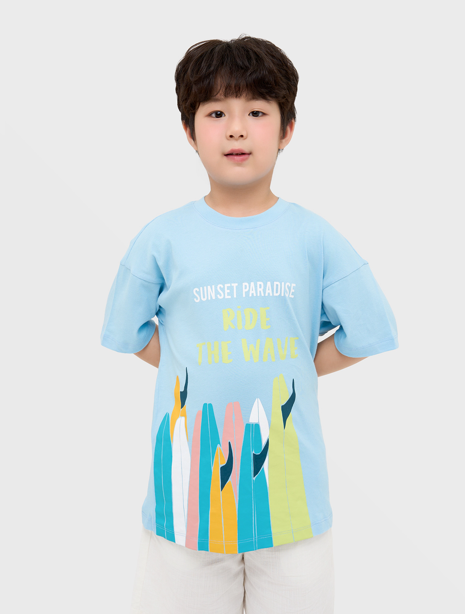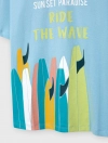 Áo phông bé trai có hình in hài hòa tươi tắn phù hợp cho cả bố và con. Chất liệu cotton mềm mại thoáng mát, màu sắc dễ mặc sẽ là lựa chọn hàng đầu cho những cuộc vui chơi dã ngoại của gia đình.