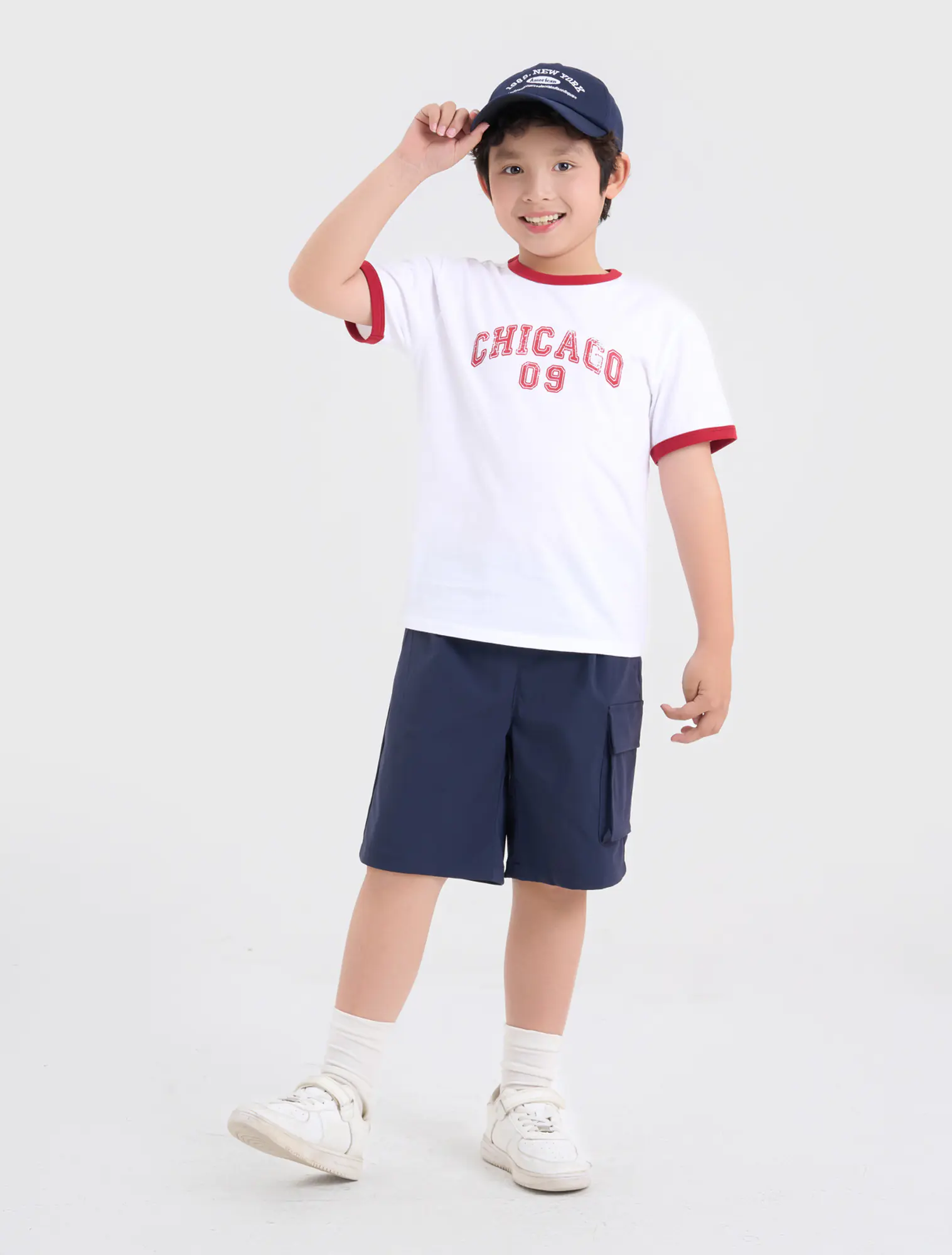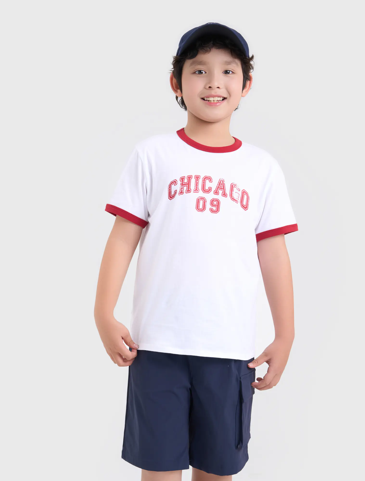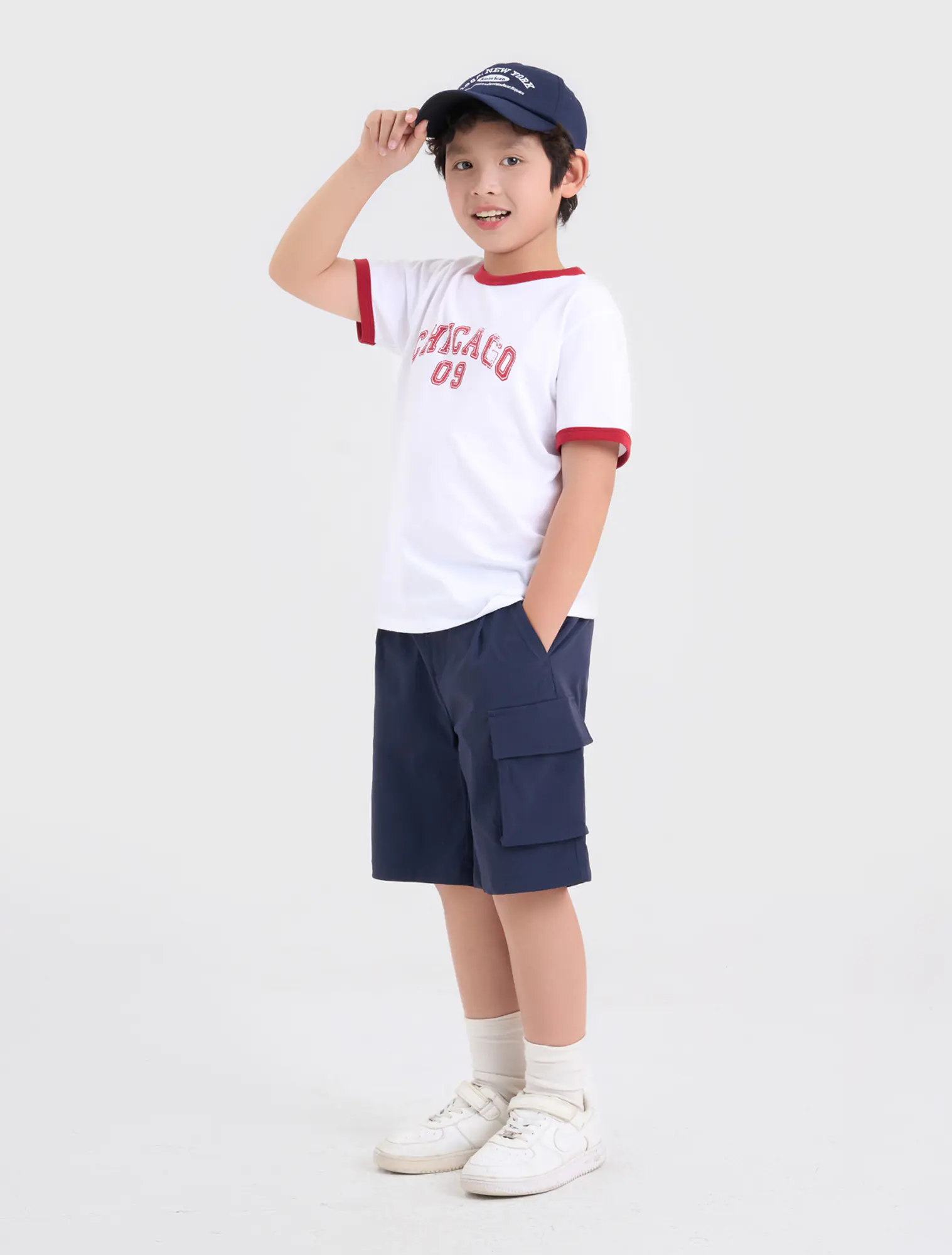 Áo phông bé trai phối màu bo cổ và tay, hình in sport khỏe khoắn, chất liệu cotton mềm mại thoáng mát thoải mái và an toàn cho trẻ sử dụng.