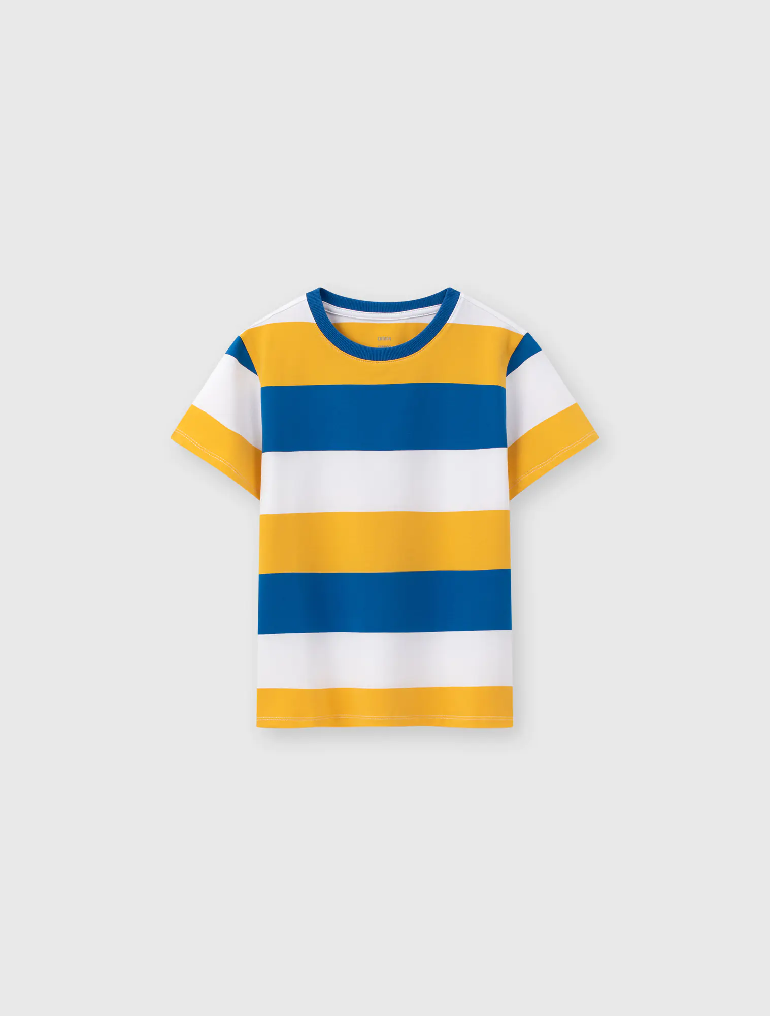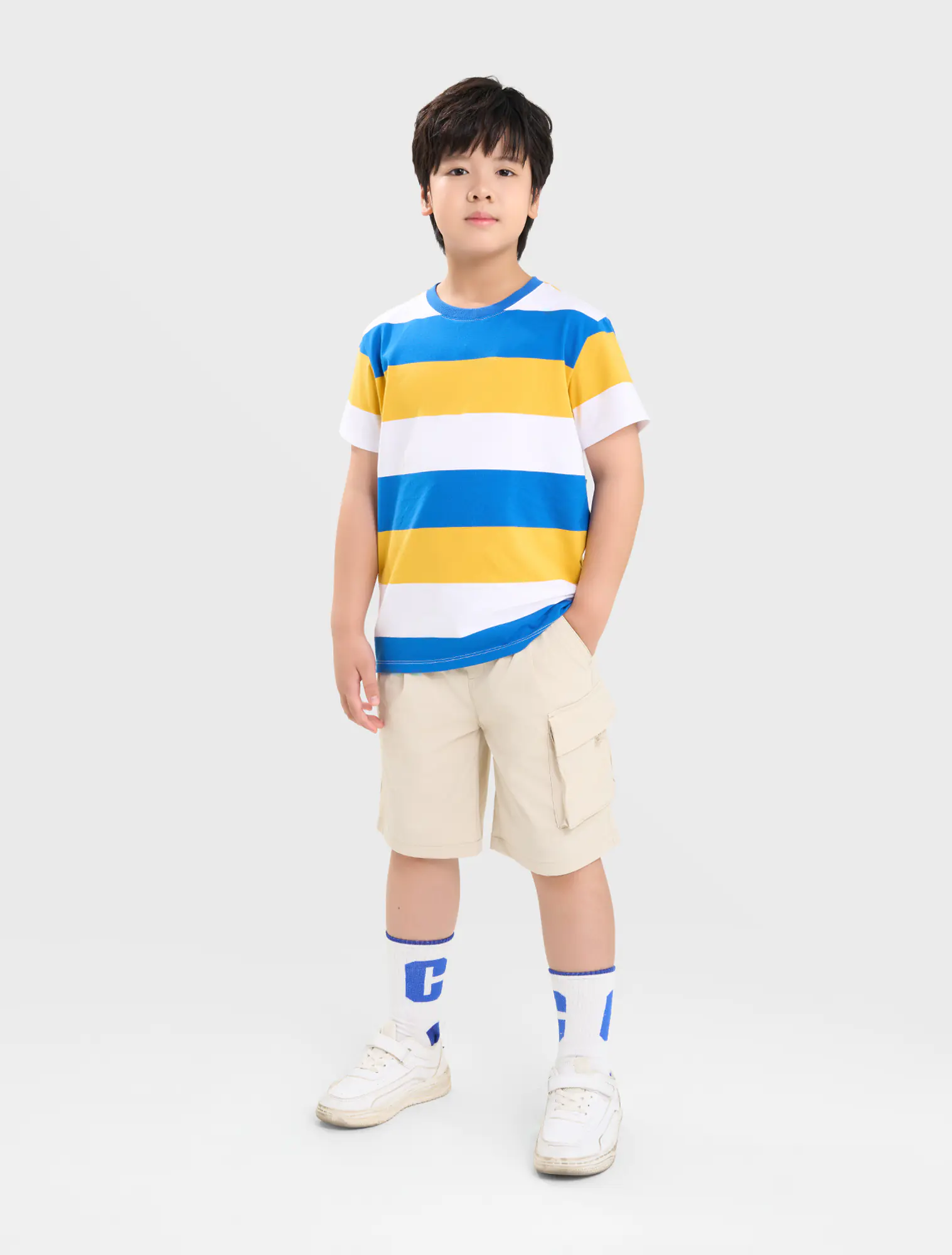 Áo phông bé trai họa tiết kẻ, chất liệu cotton spandex co giãn mềm mại tạo sự thoải mái thoáng mát khi trẻ sử dụng.