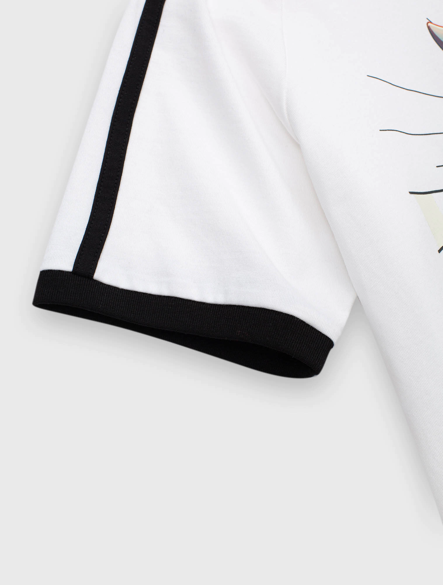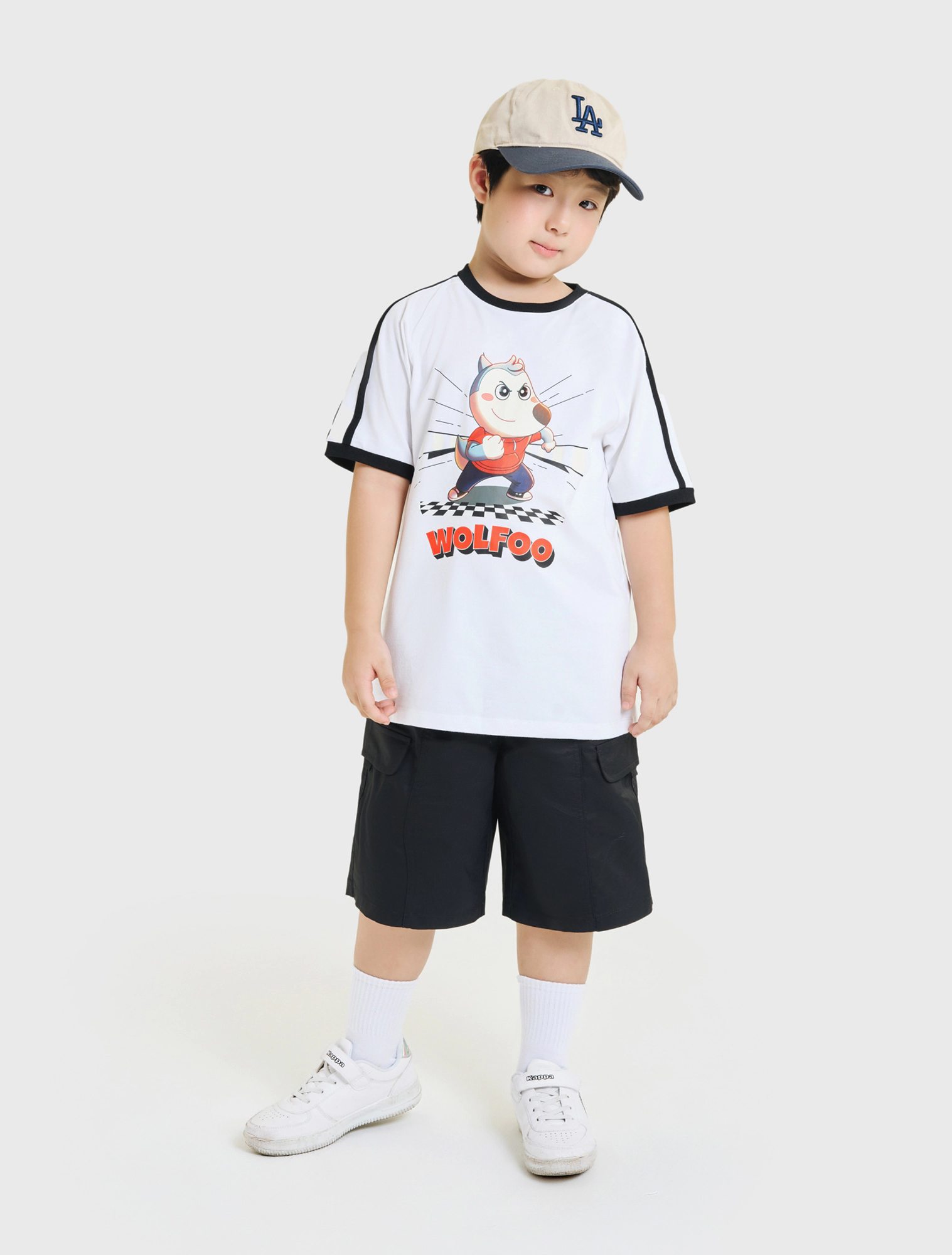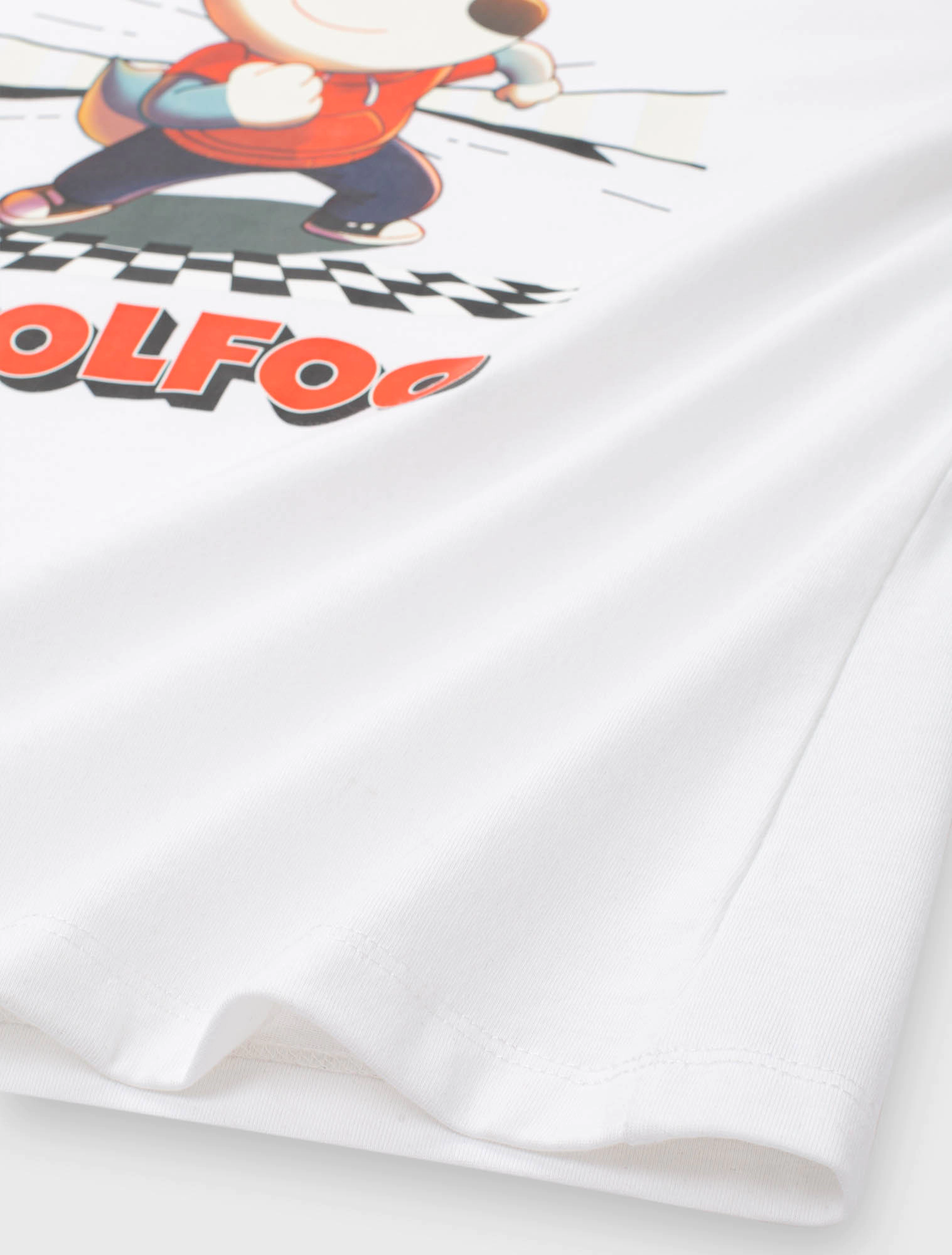 Áo phông bé trai in hình Wolfoo nổi bật, dáng suông thoải mái. Chất liệu cotton pha mềm mại, thoáng mát, thích hợp mặc đi học, đi chơi hay ở nhà.
