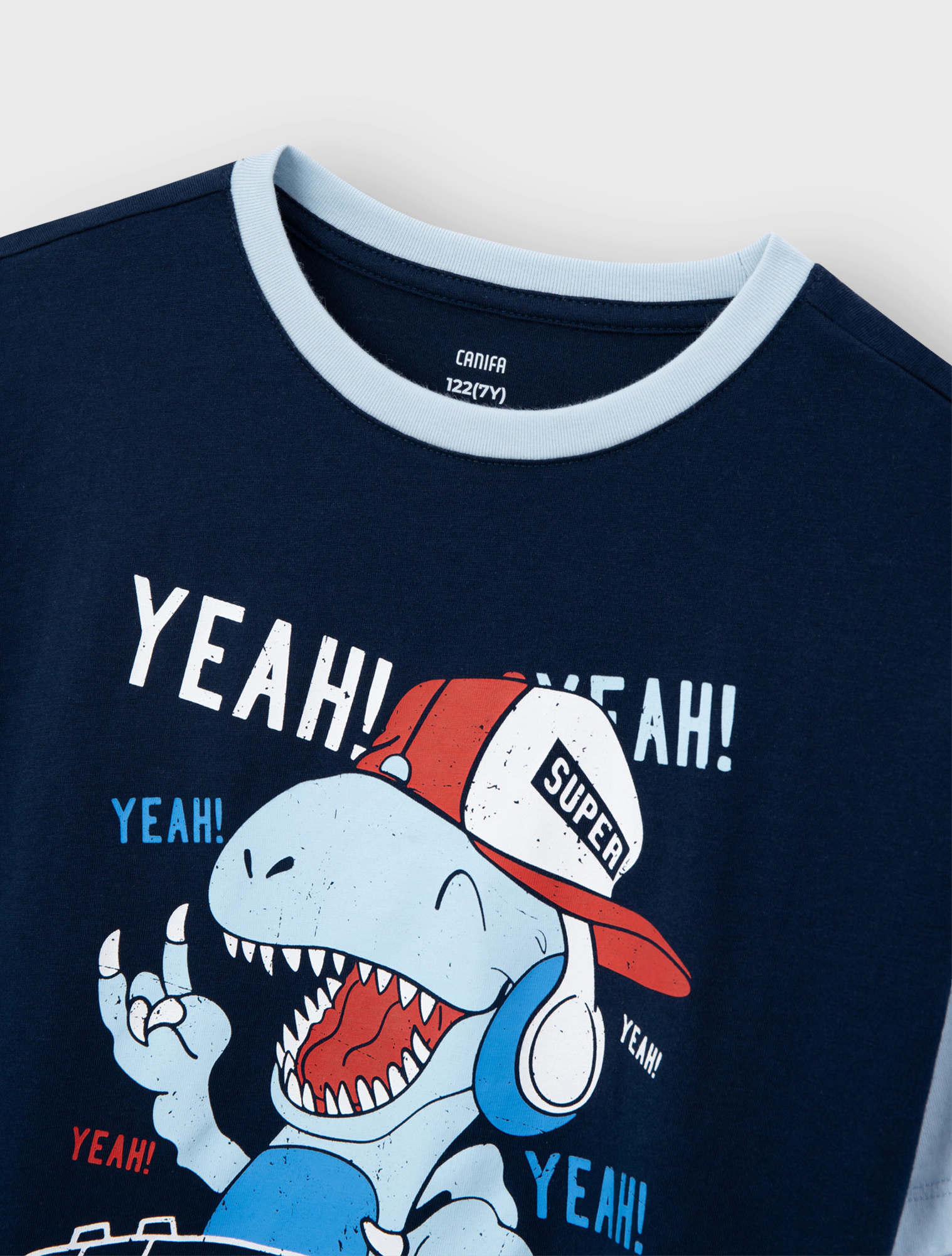 Áo phông bé trai phối màu tay và cổ áo, chất liệu Cotton USA mềm mại co, giãn thoải mái. Hình in khỏe khoắn, năng động.