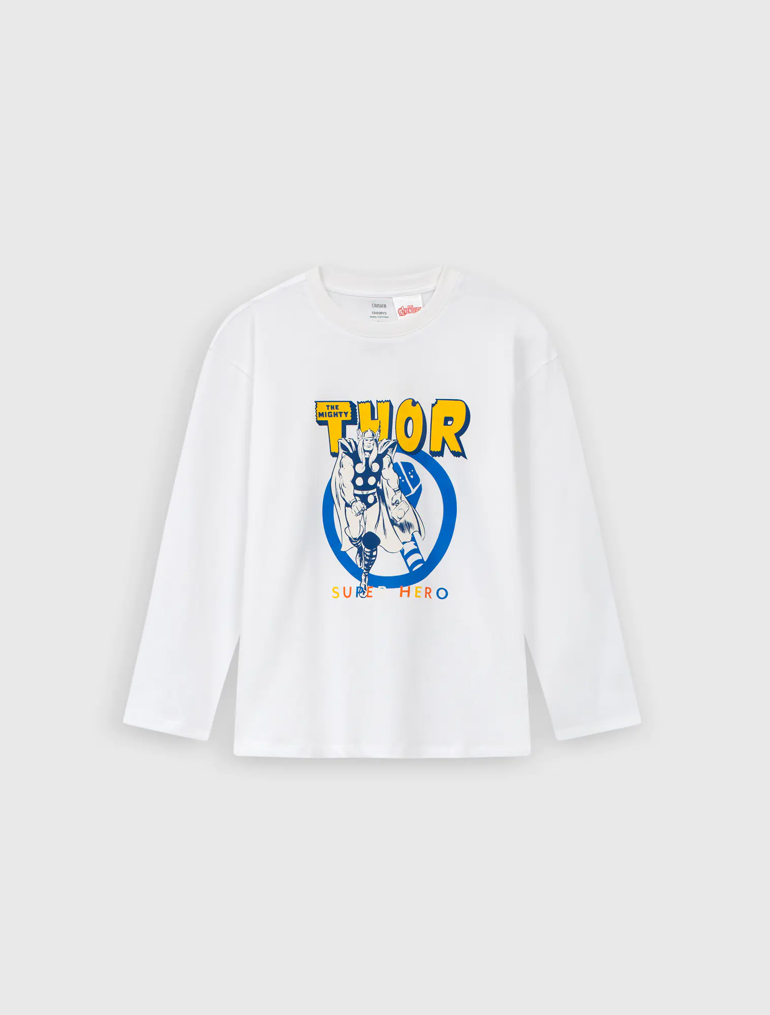 Áo phông dài tay in hình nhân vật Marvel, dáng regular. Hình in nổi bật bắt mắt phù hợp với sở thích của các bé.