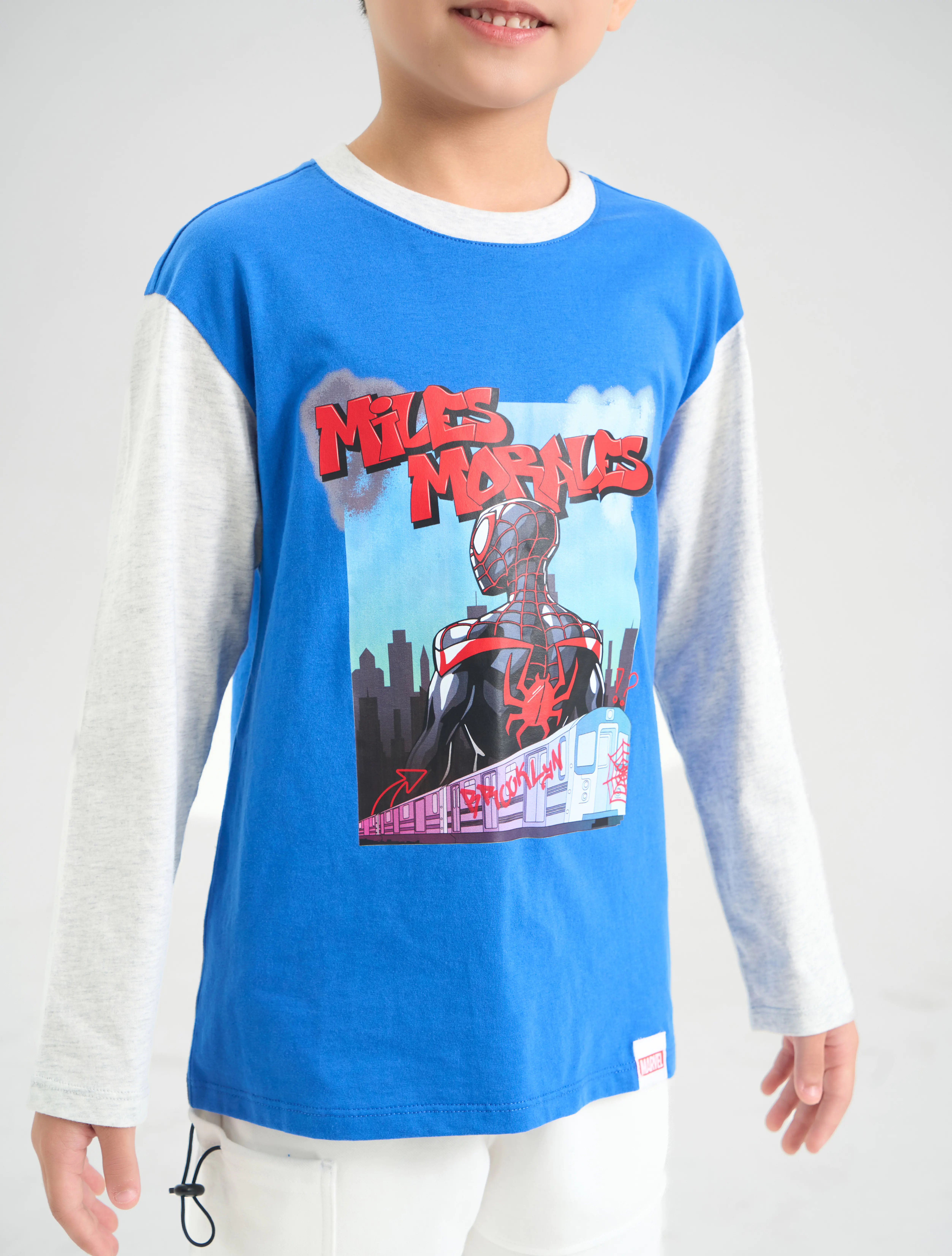 Áo phông dài tay bé trai in hình nhân vật Spiderman và Avenger. Chất liệu cotton USA mềm mại, tay áo can phối màu, hình in nhân vật phù hợp với sở thích của các bé.