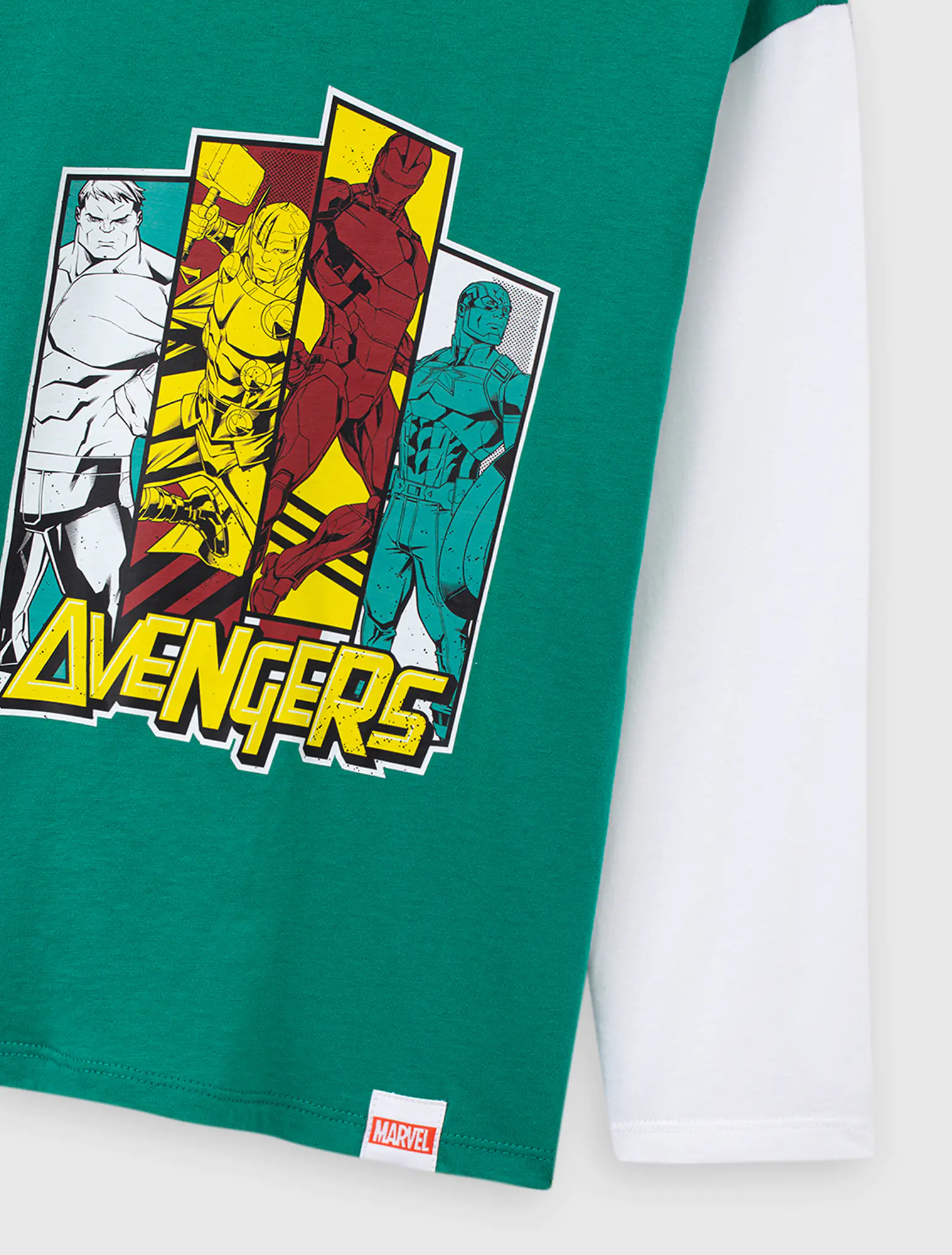 Áo phông dài tay bé trai in hình nhân vật Spiderman và Avenger. Chất liệu cotton USA mềm mại, tay áo can phối màu, hình in nhân vật phù hợp với sở thích của các bé.