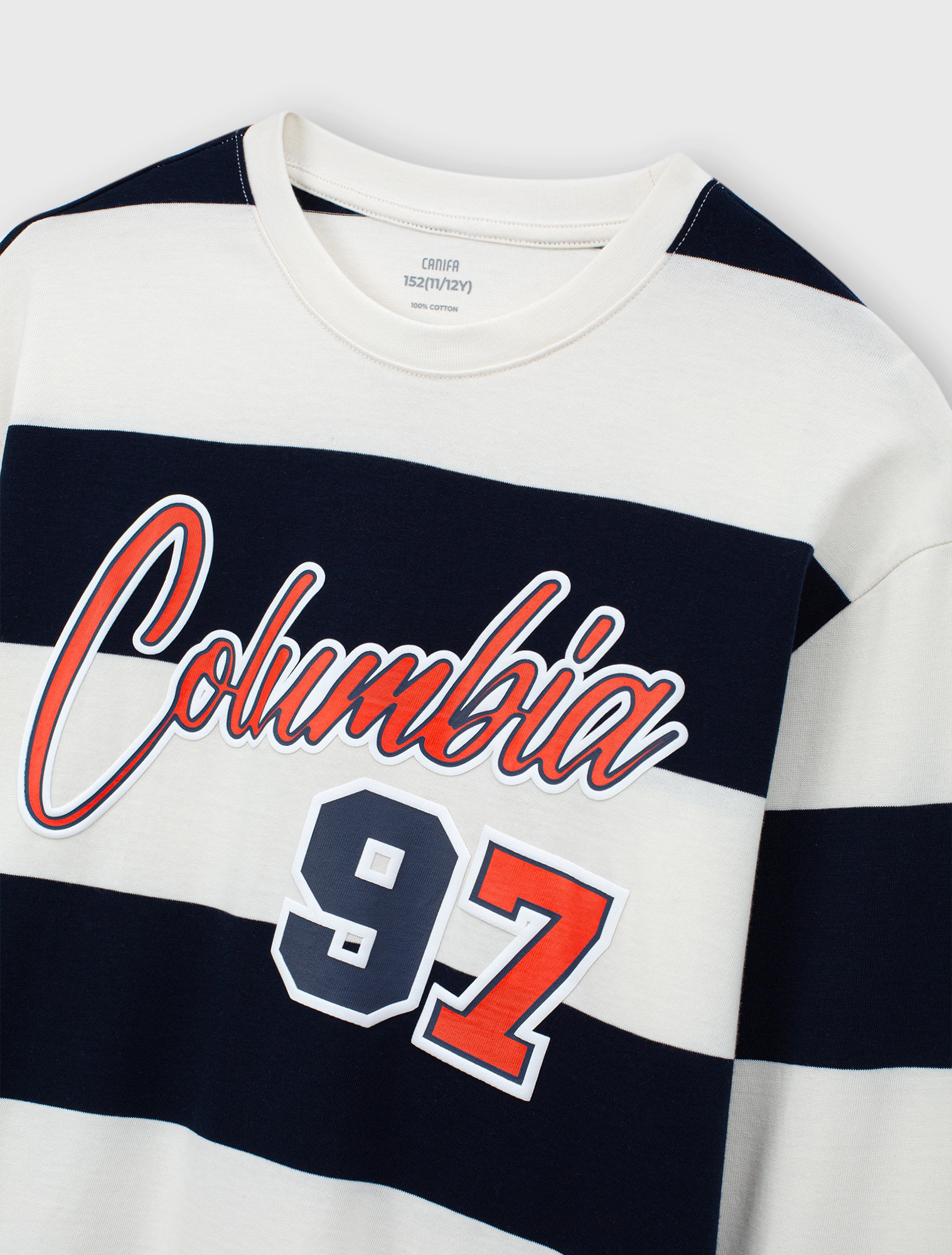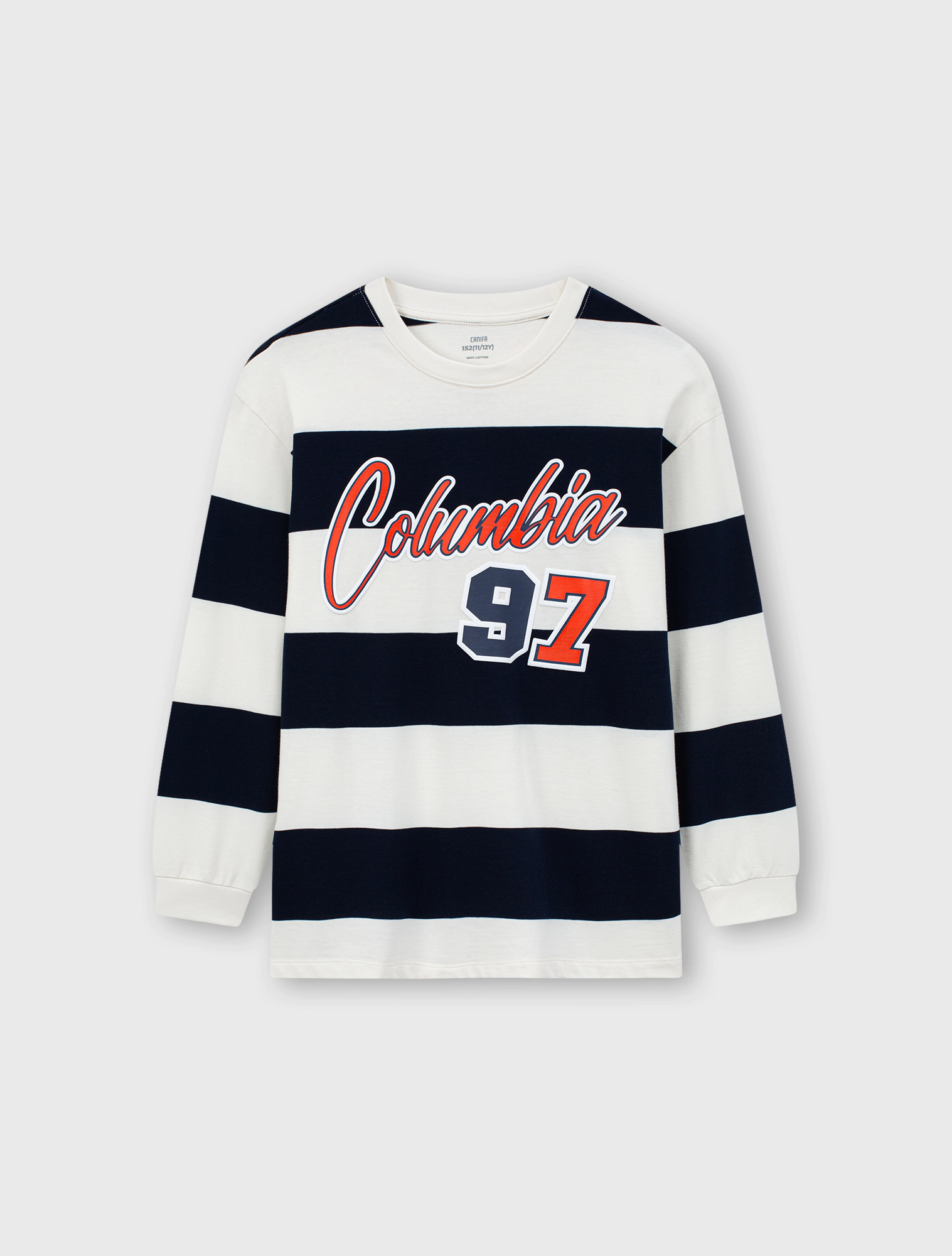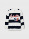 Áo thun kẻ dài tay bé trai, phom dáng thoải mái, nguyên liệu mềm mại, hình in năng động tạo sự thoải mái cho bé sử dụng.
