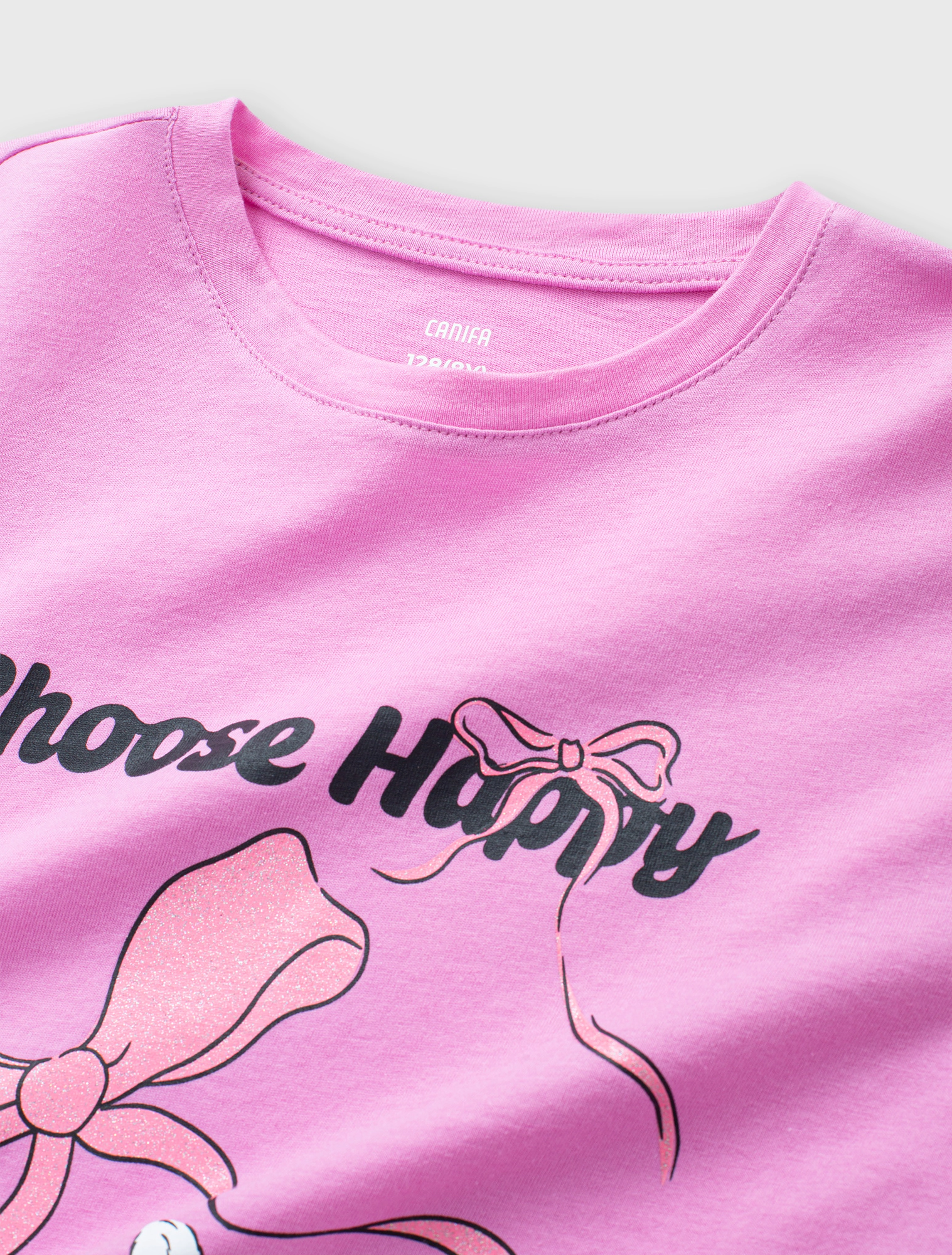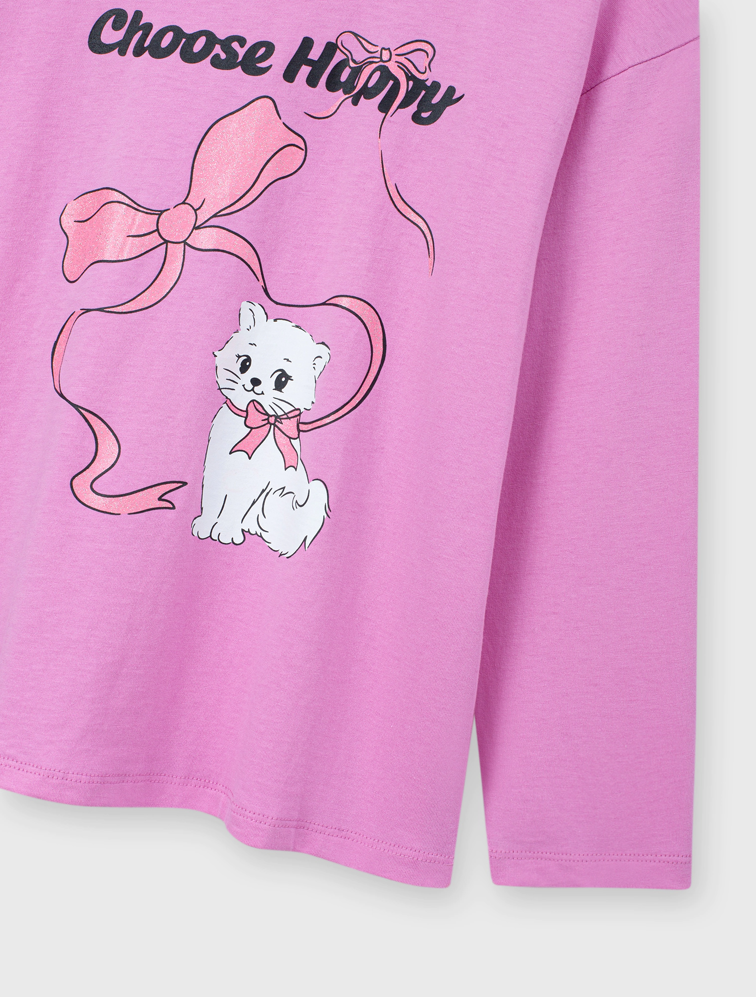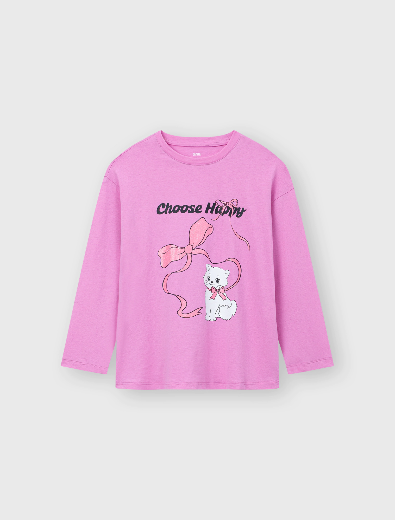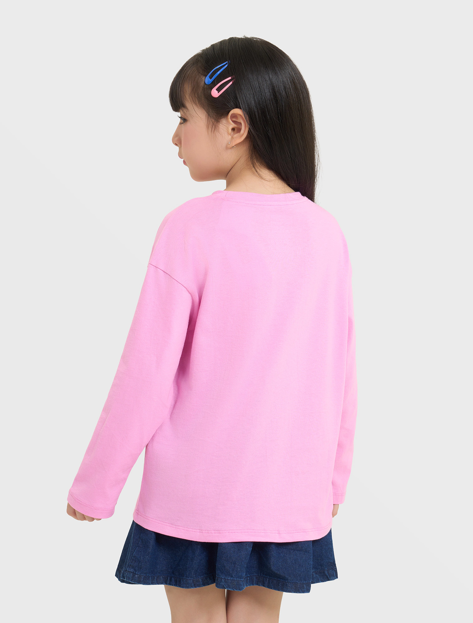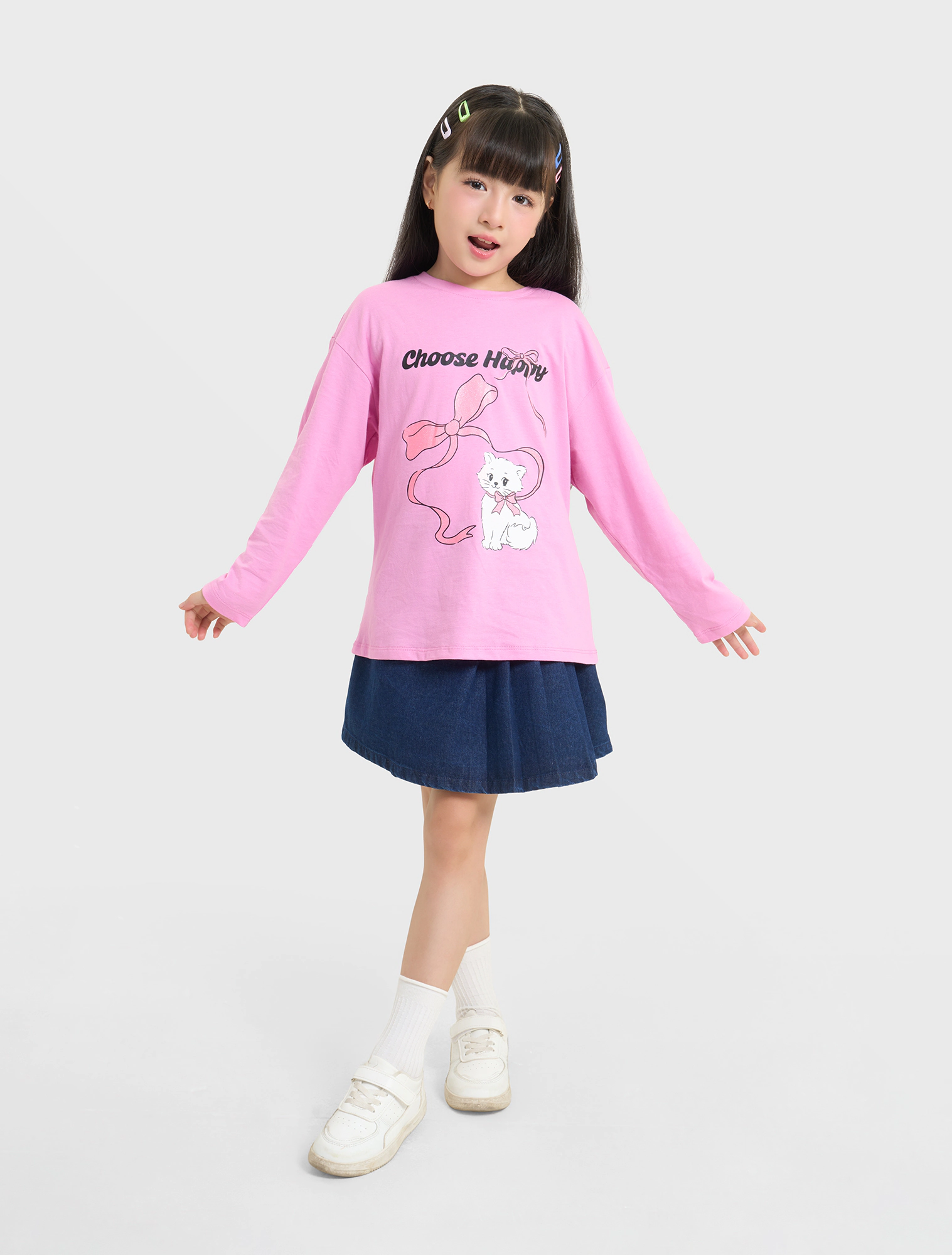 Áo phông bé gái dài tay, dáng suông với hình in đáng yêu, dễ phối đồ hàng ngày.