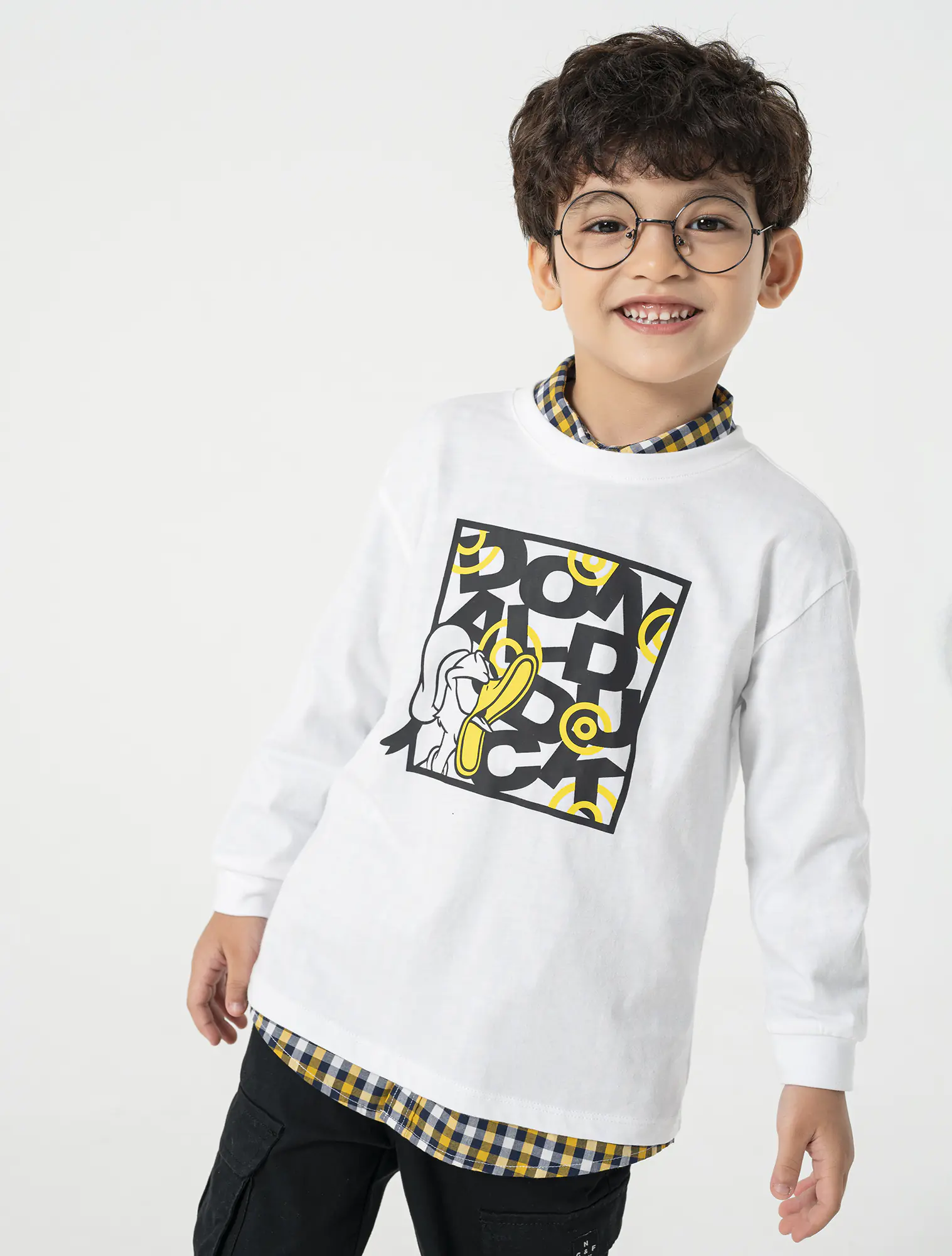 Áo phông chất liệu 100% cotton, cổ tròn tay dài.