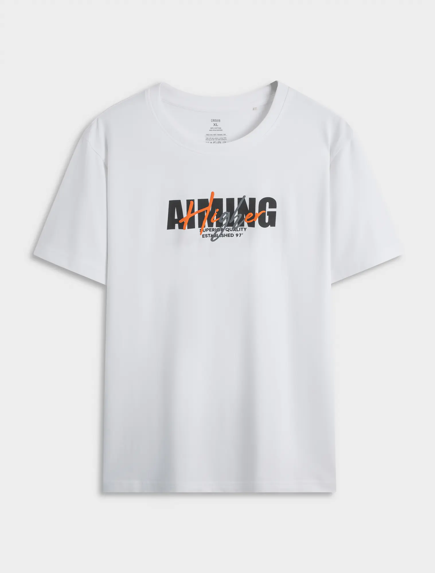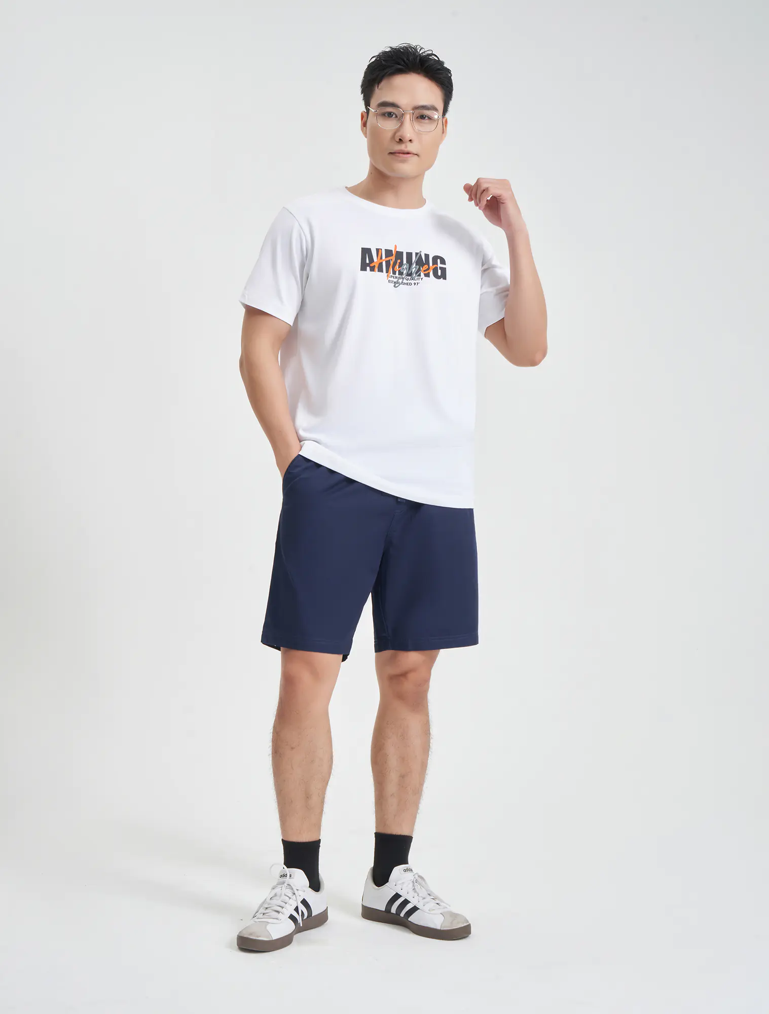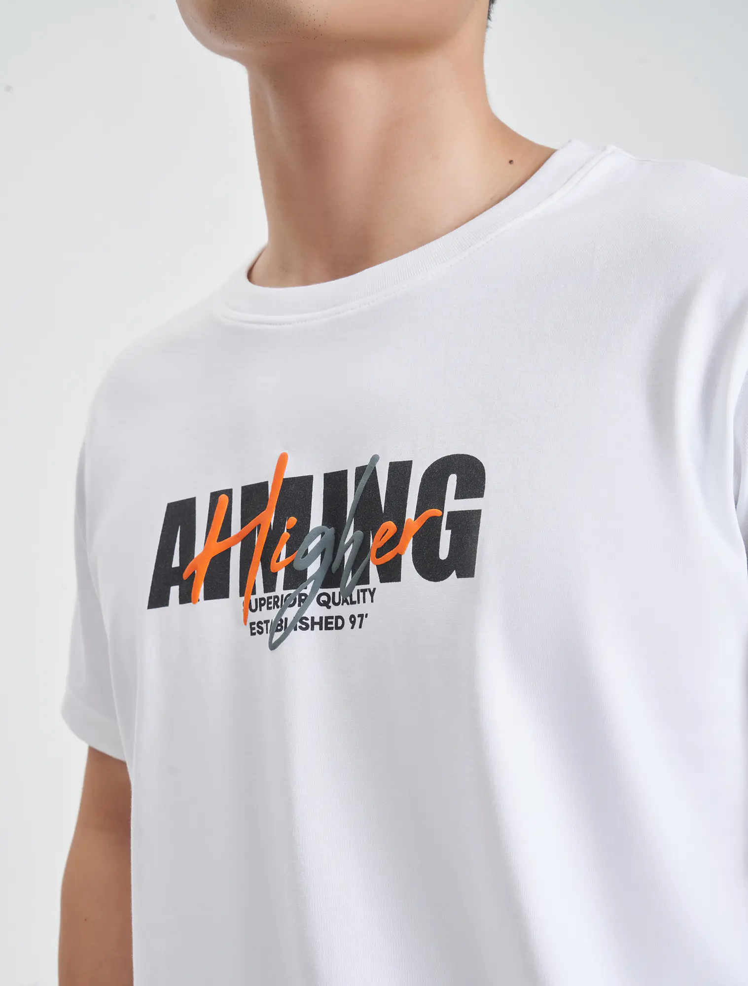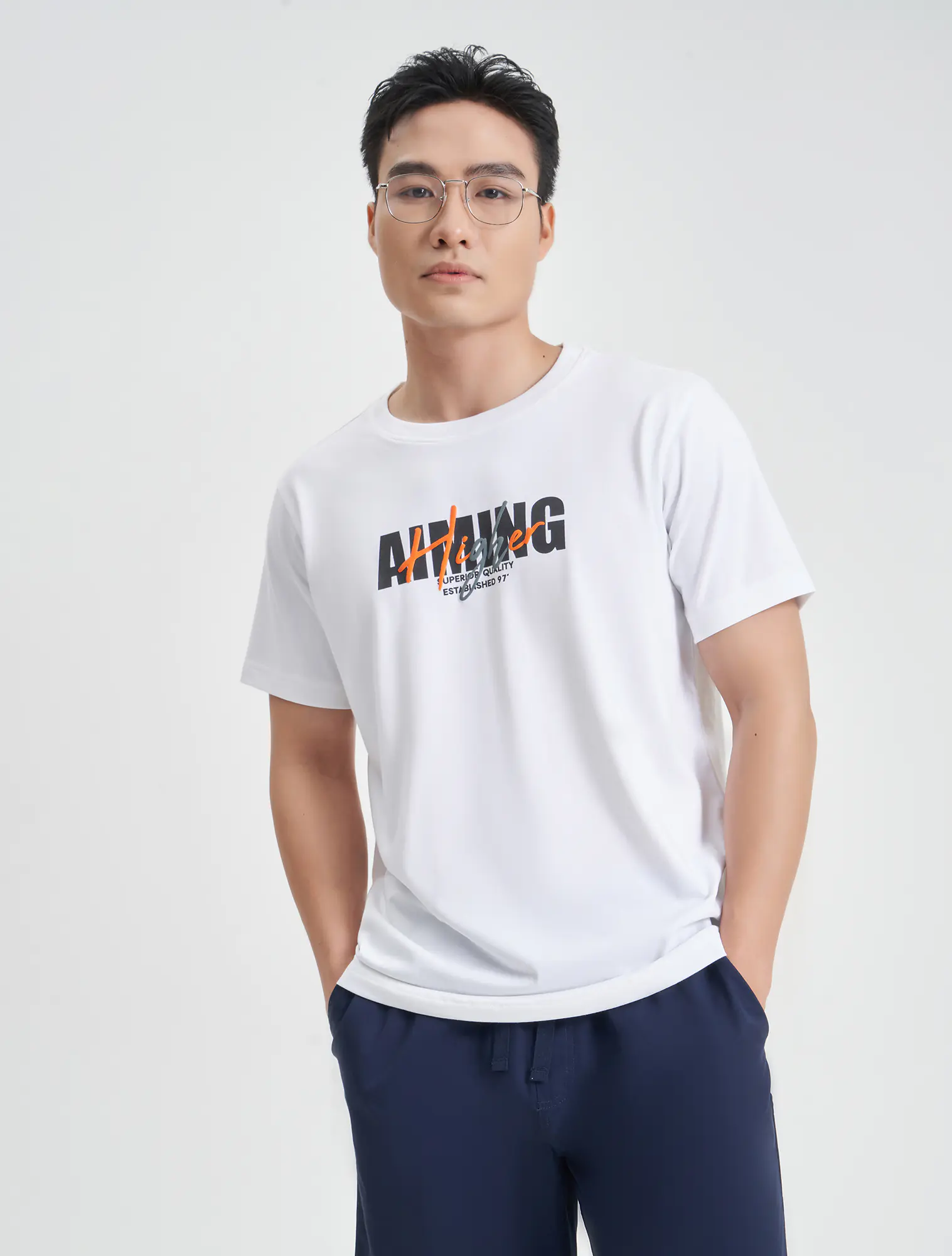 Áo phông nam dáng regular với chi tiết đồ họa đơn giản phù hợp với nhiều đối tượng khách hàng.