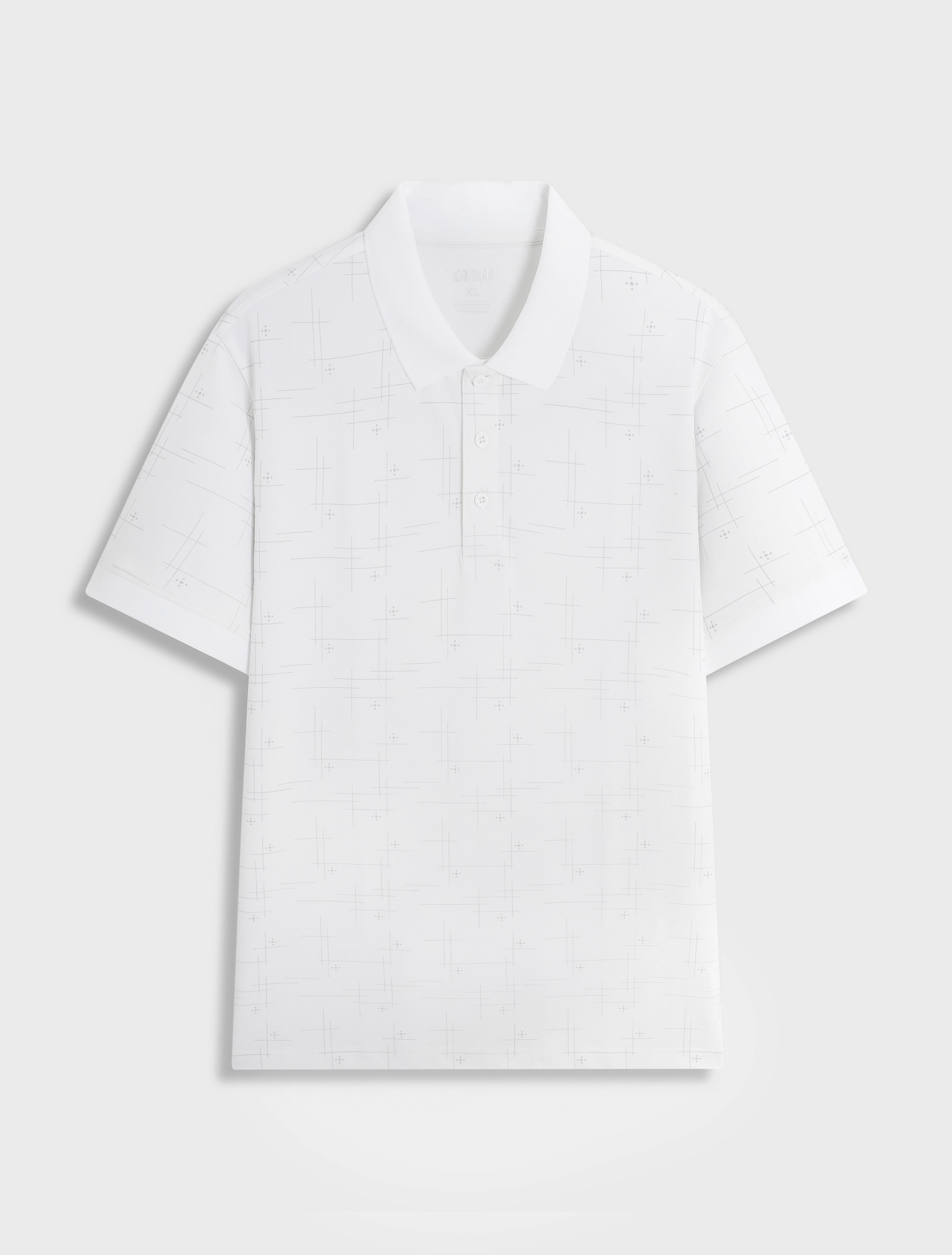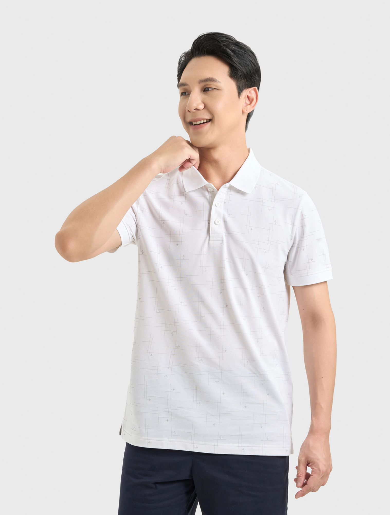 Áo polo nam basic có cổ bẻ, nẹp cài cúc, bề mặt vải có họa tiết in tạo điểm nhấn mới cho sản phẩm.