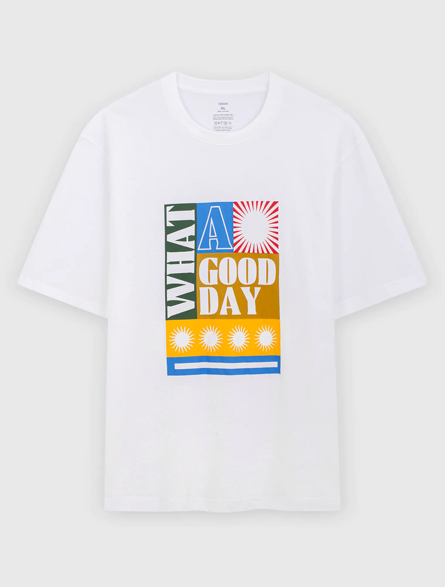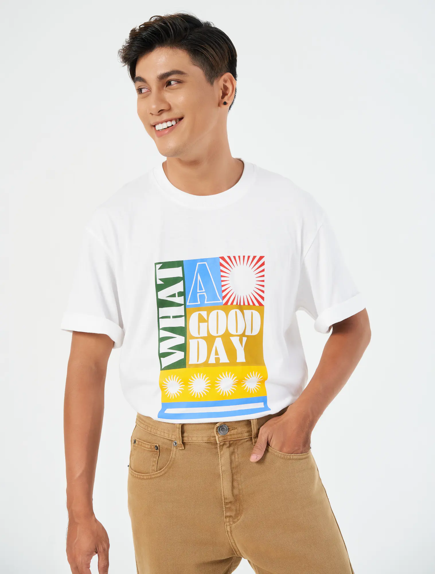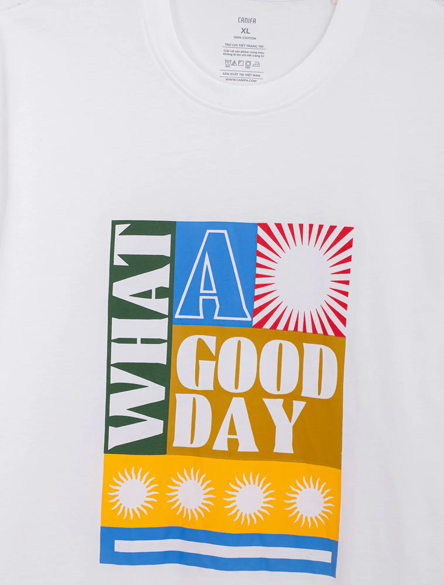 Áo phông 100% cotton in hình, phom regular cổ tròn tay cộc.