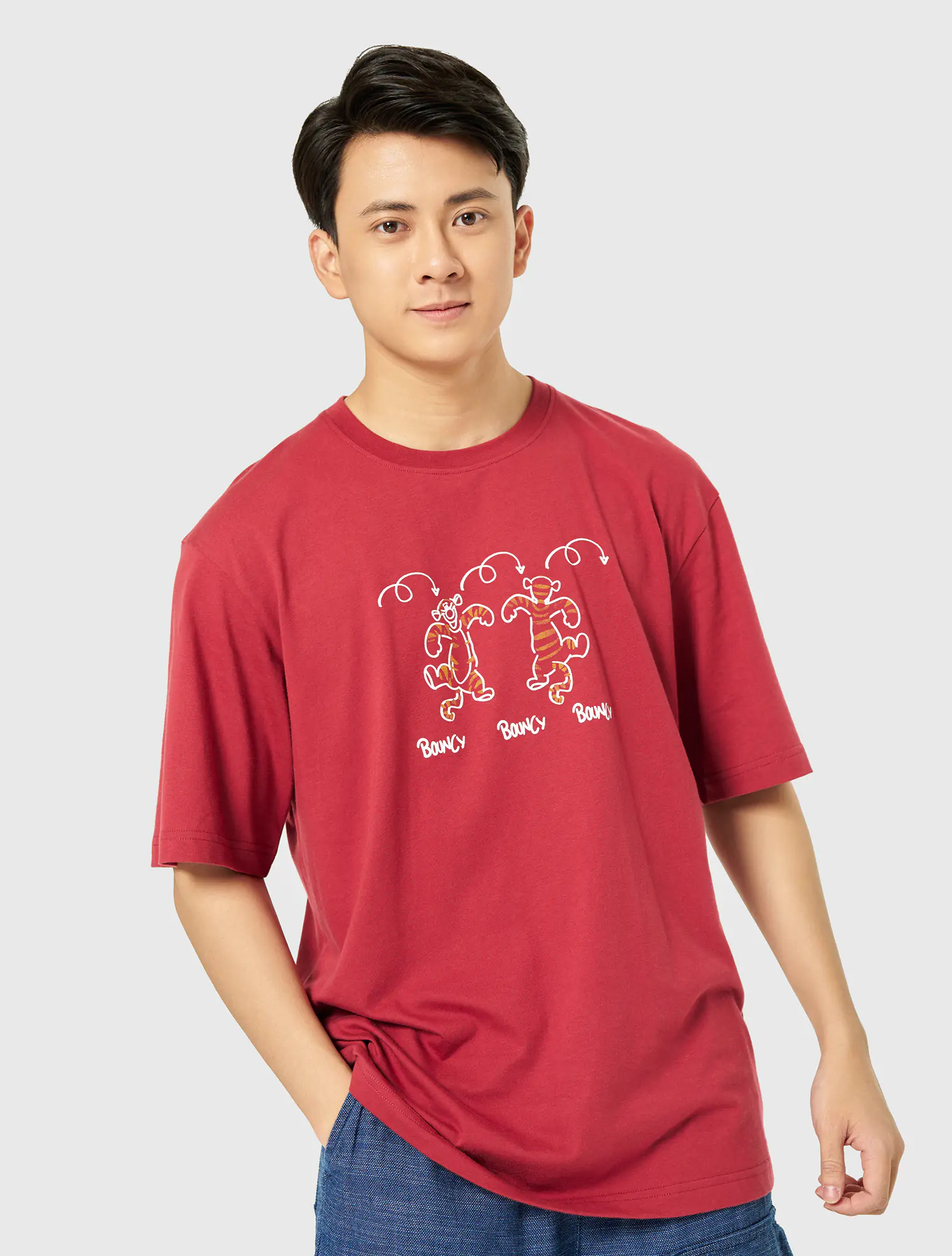 Áo phông nam form relax, in hổ bouncy trong phim hoạt hình gấu Pooh