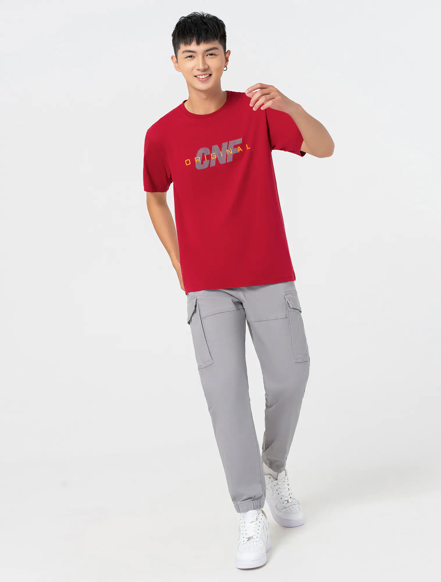 Áo phông chất liệu 100% cotton, cổ tròn tra bo, tay cộc, phom regular.