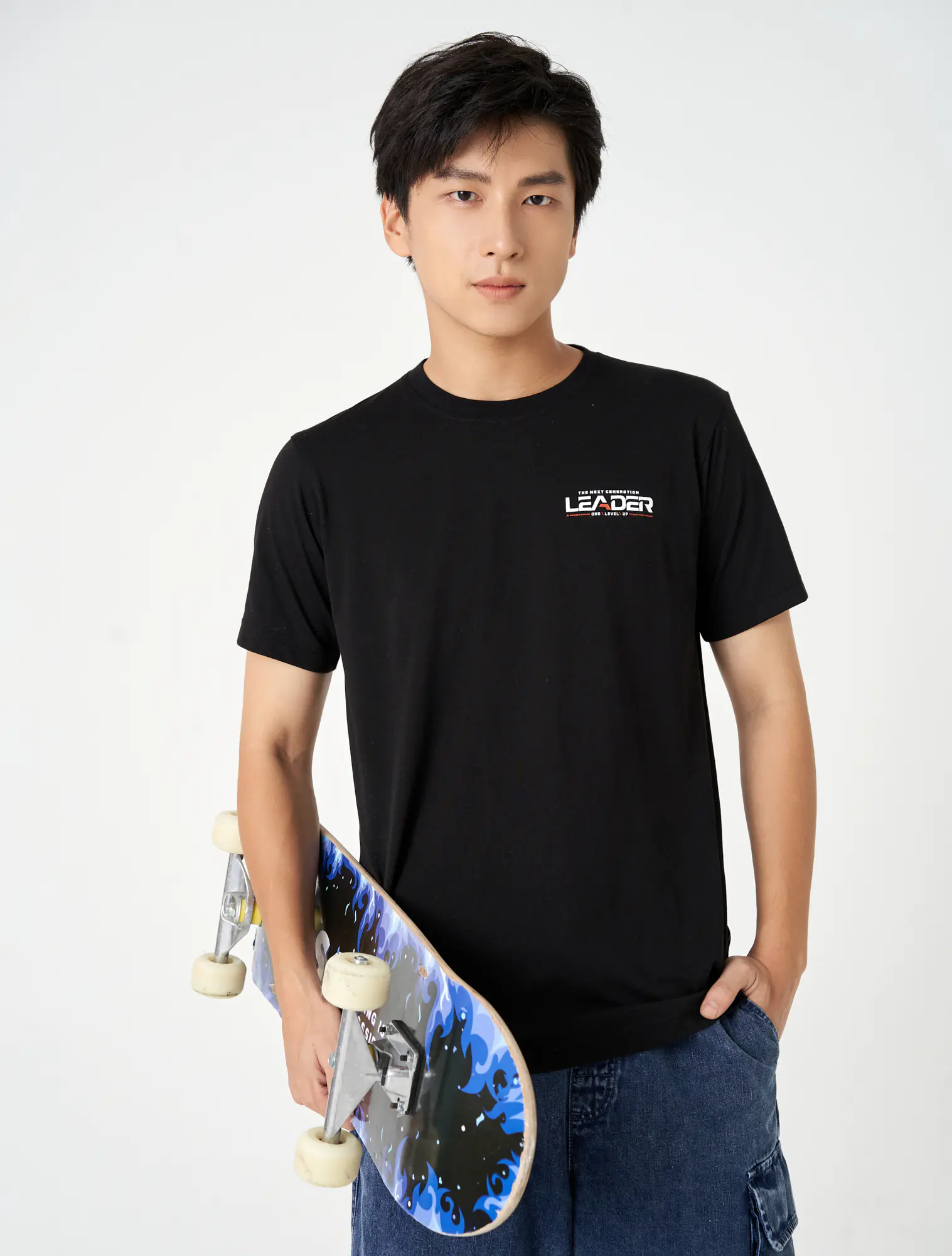Áo phông chất liệu cotton pha, áo cổ tròn tra bo, tay cộc, phom regular.