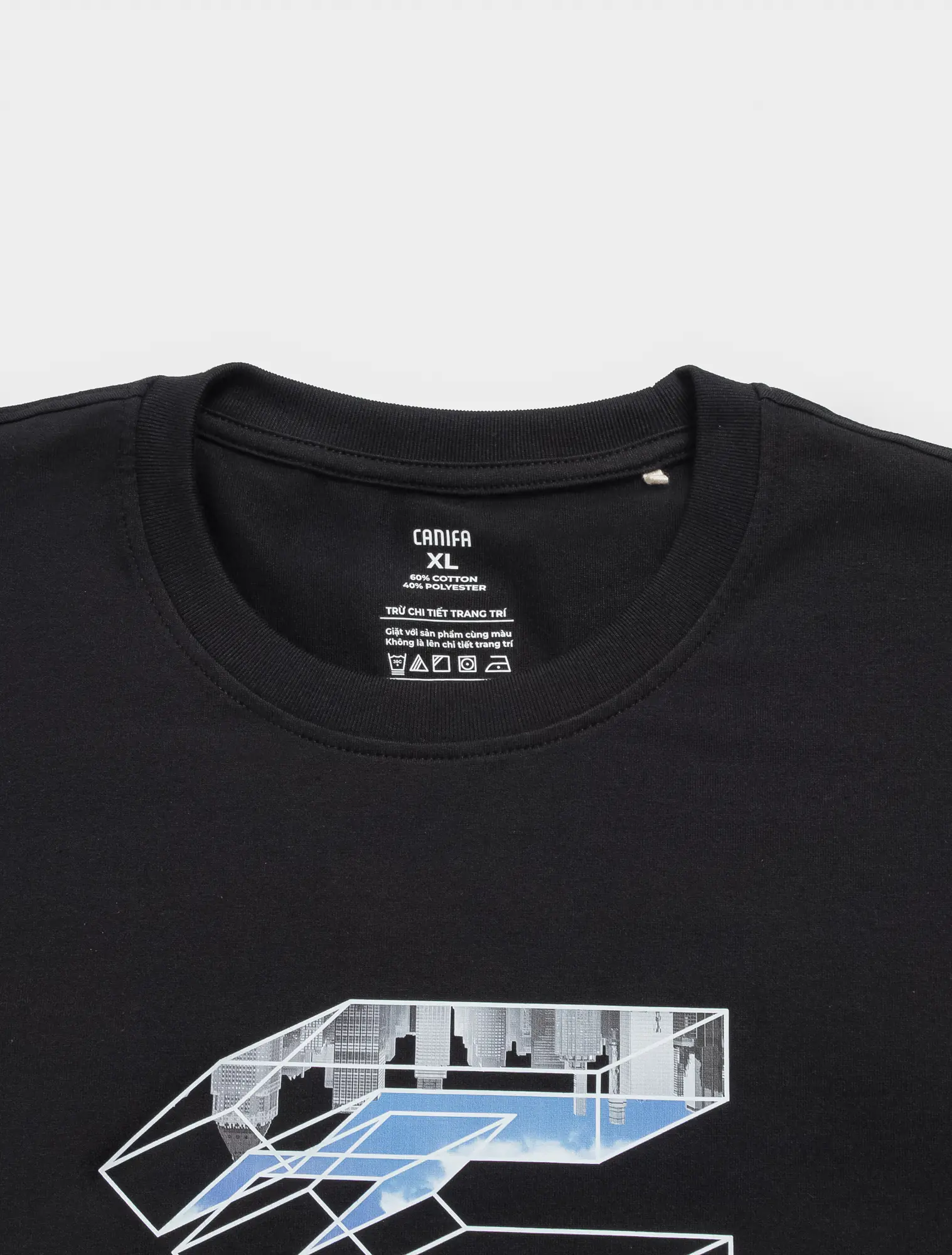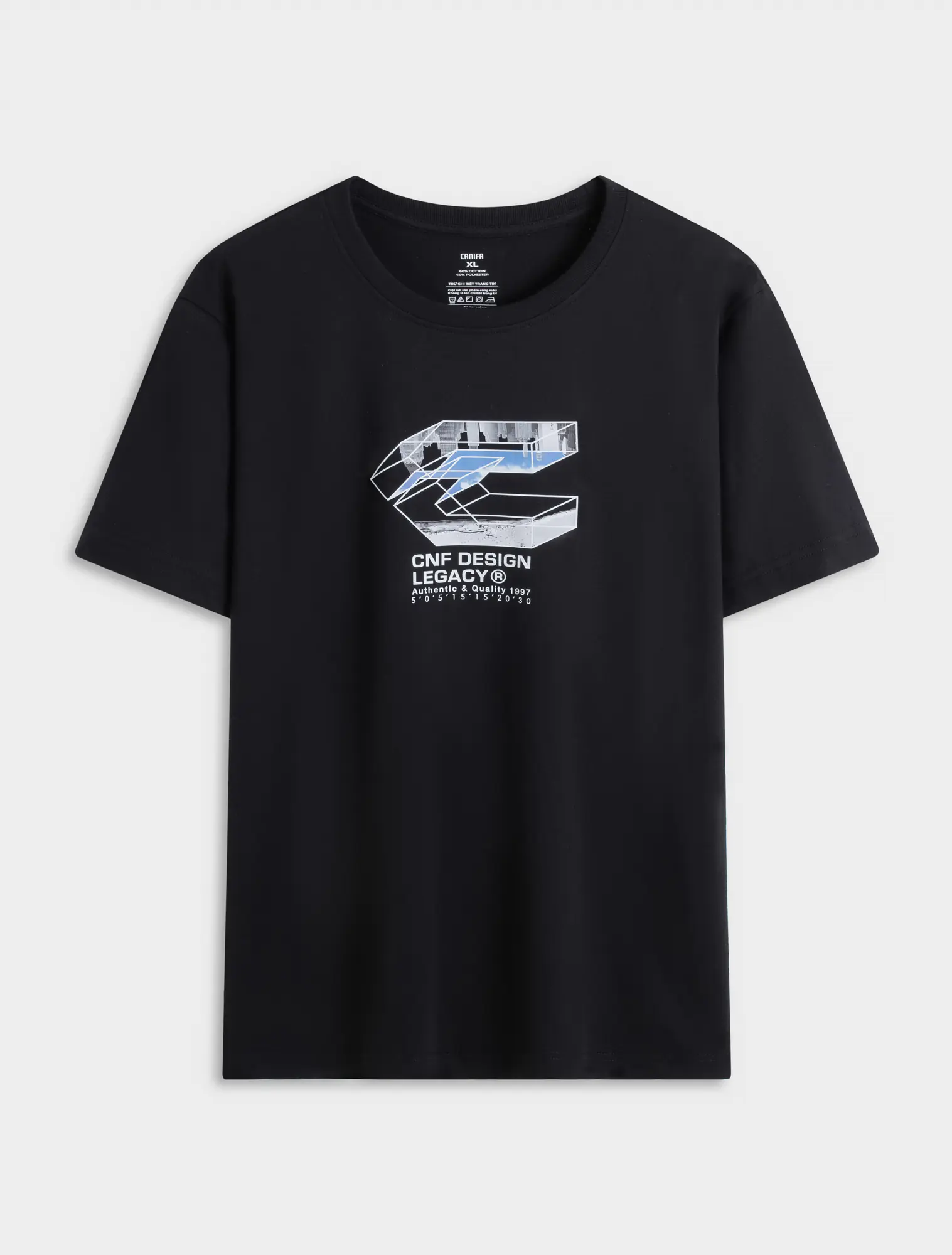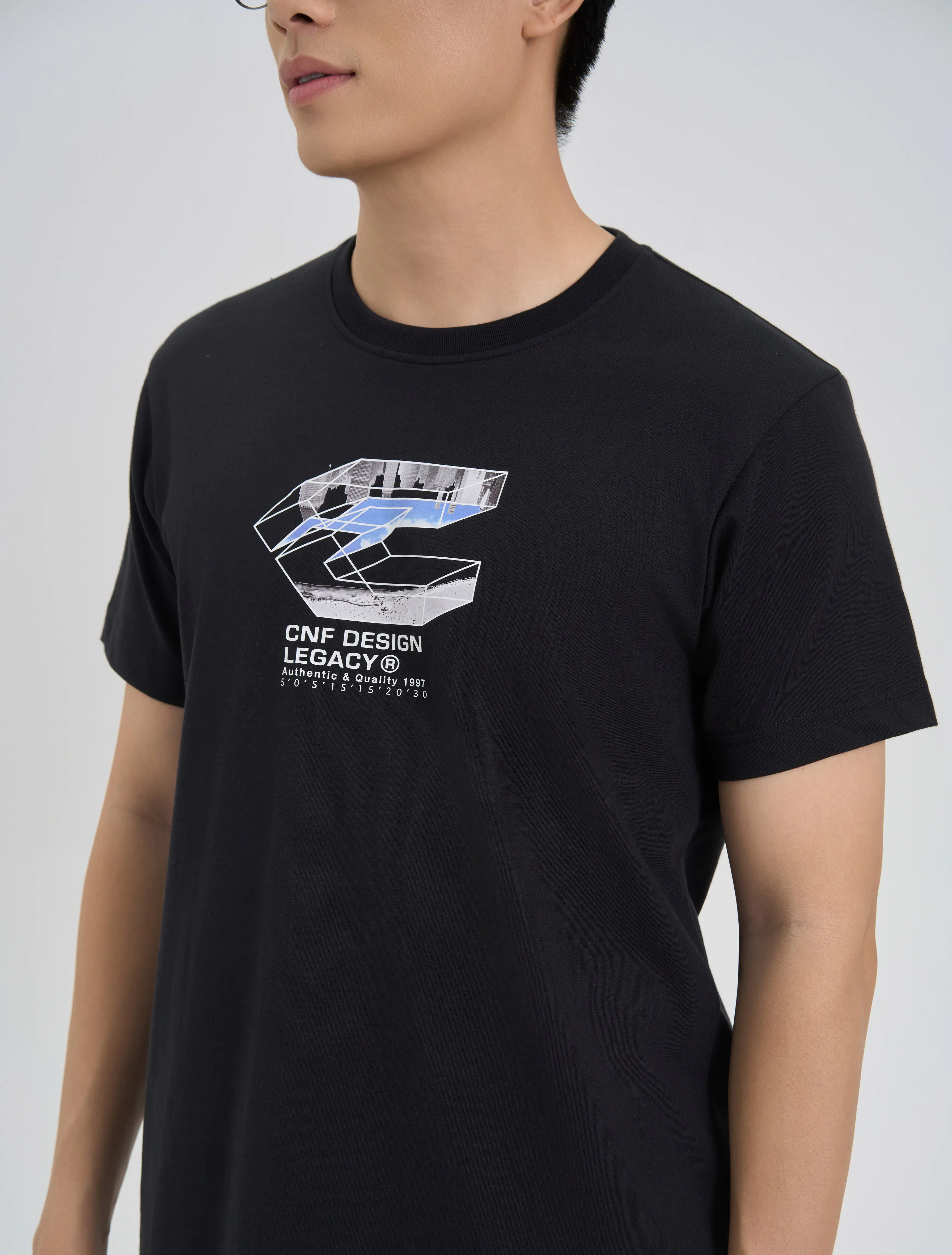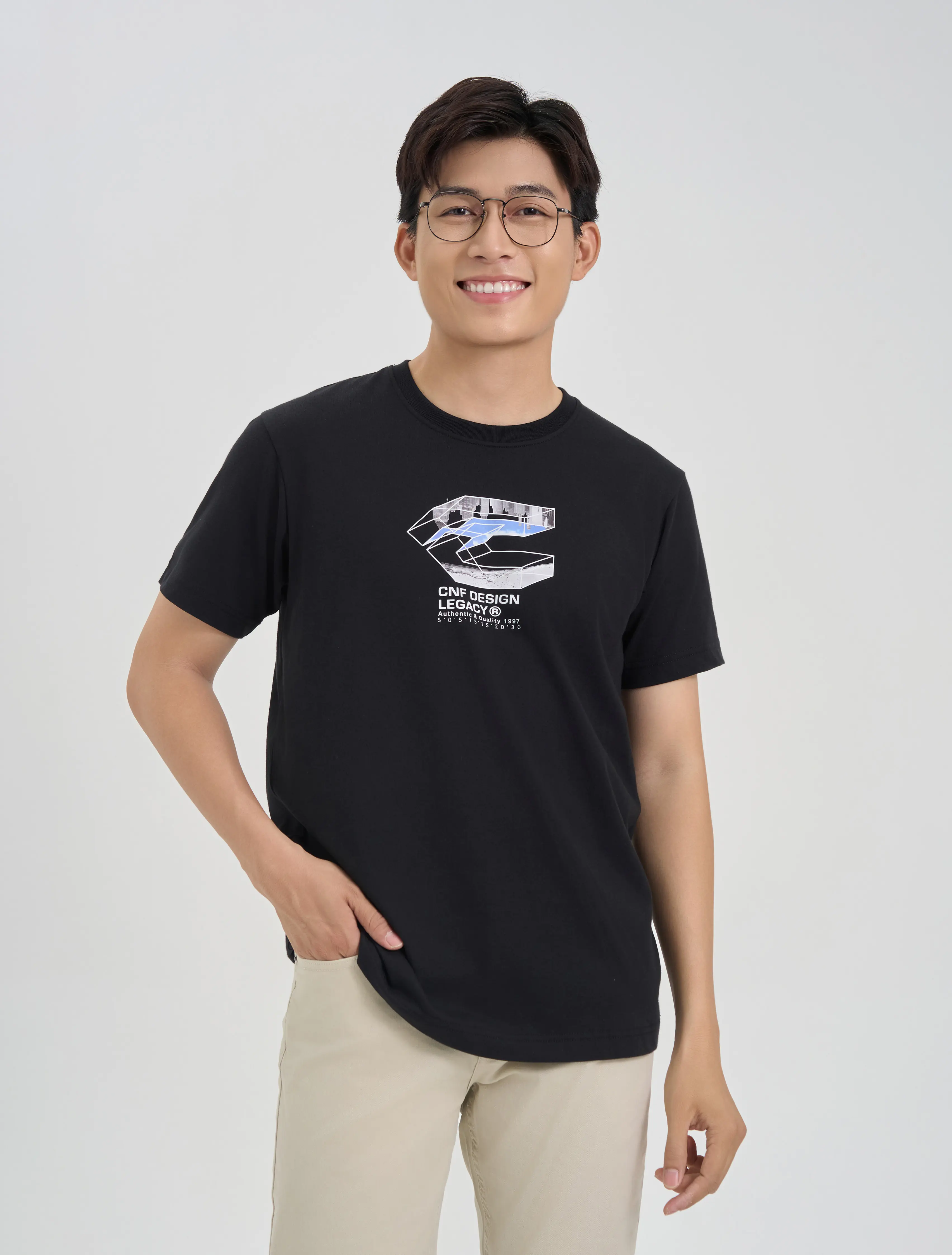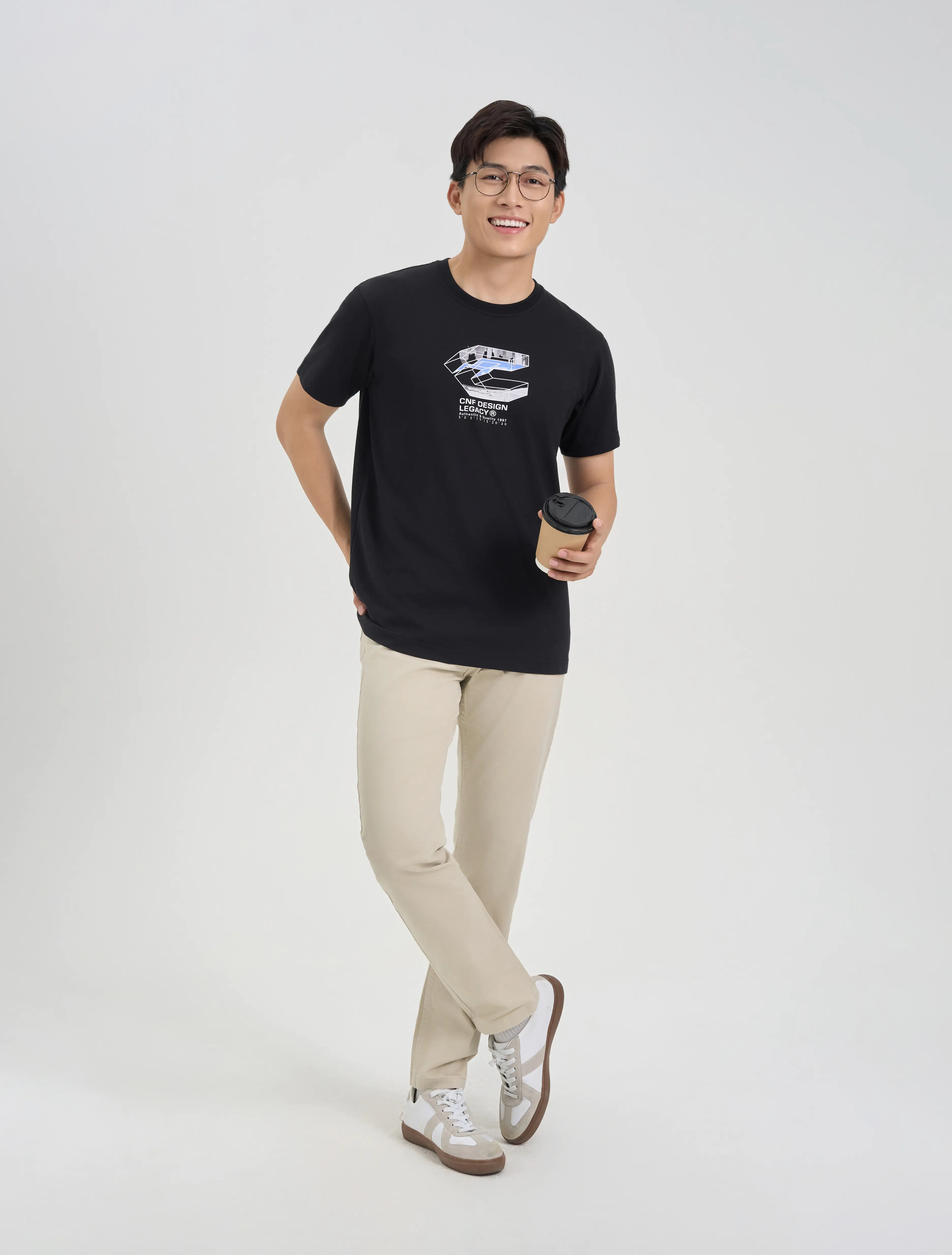 Áo phông nam basic dáng regular cổ tròn, có chi tiết đồ họa là điểm nhấn trên sản phẩm.