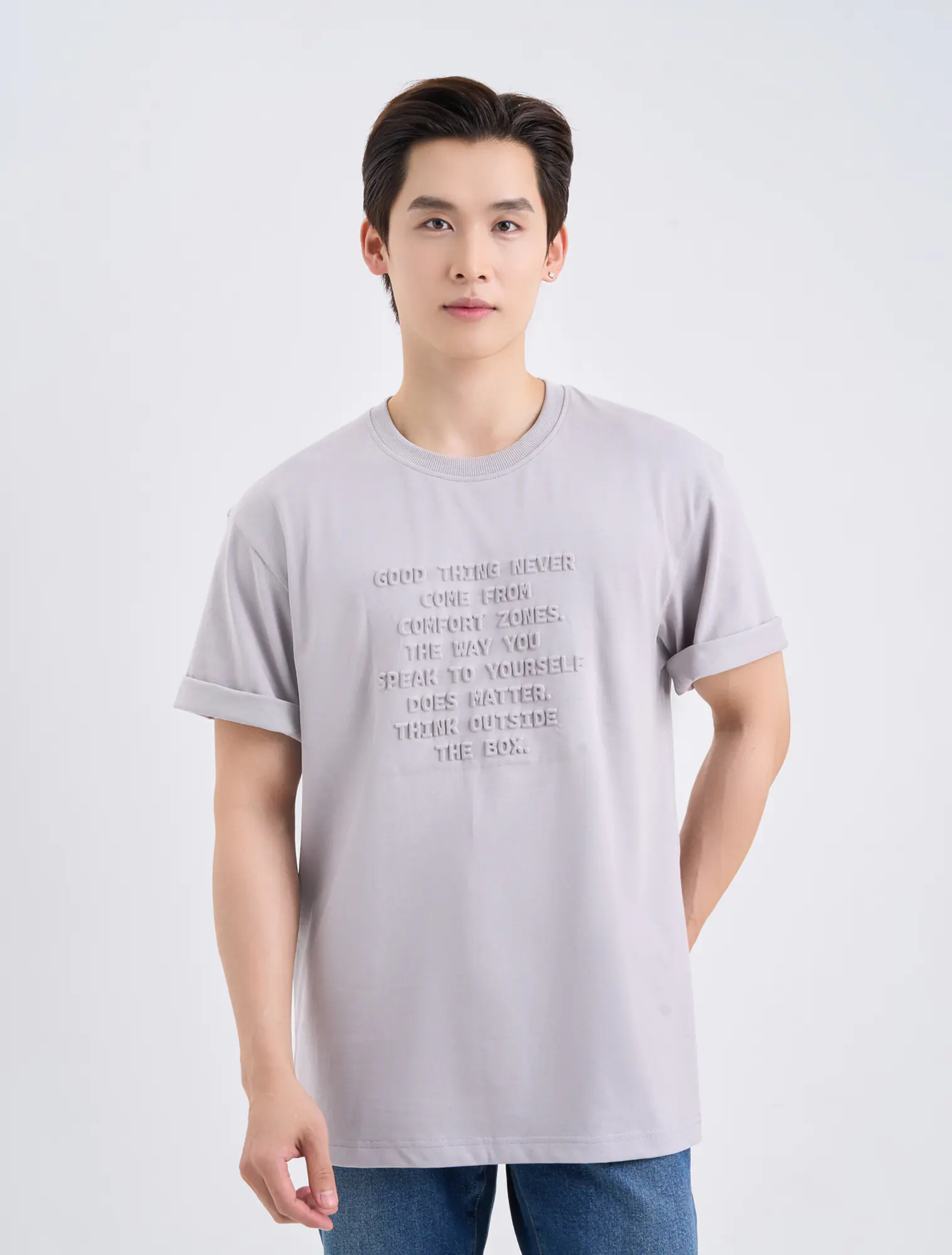 Áo phông phom oversize, điểm nhấn là hình in phồng tại ngực áo.