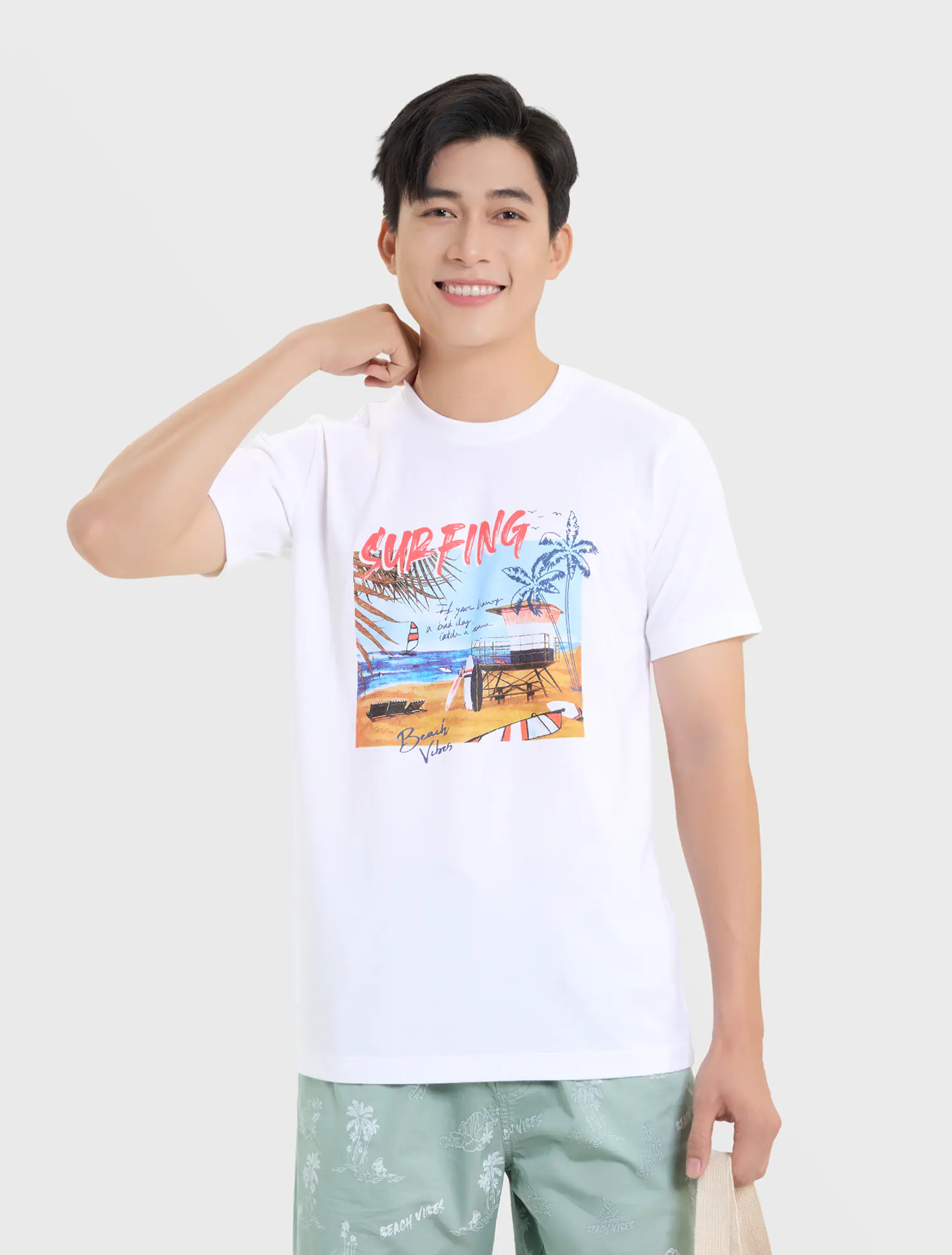 Áo phông phom regular điểm nhấn là hình in trước ngực.