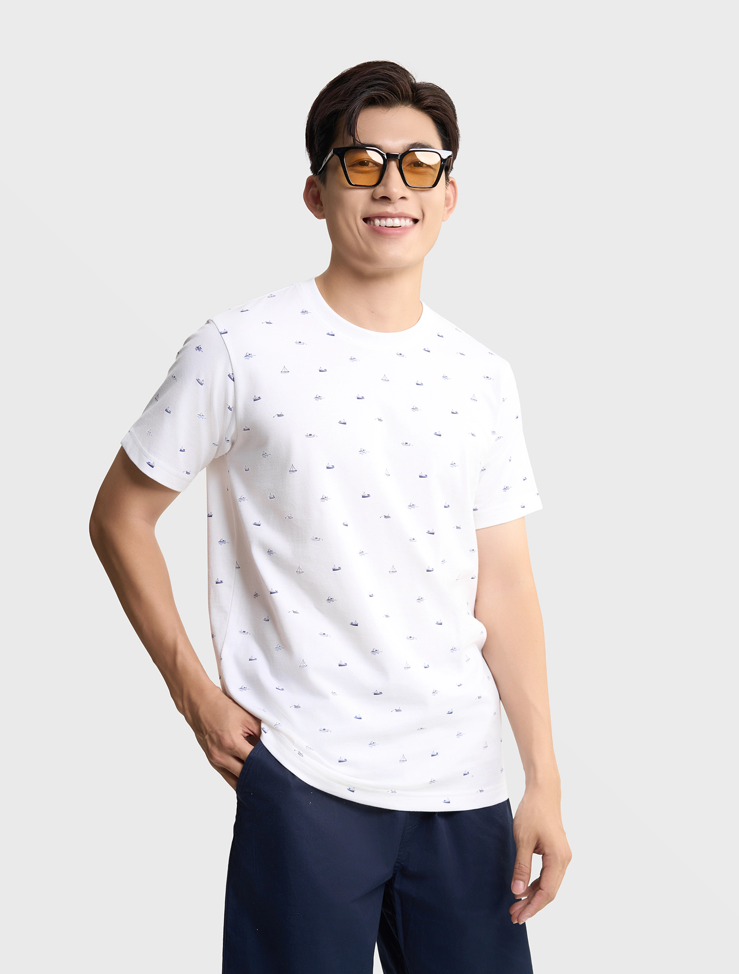 Áo phông nam phom regular với hình in bắt mắt. Phù hợp cho những chuyến đi chơi, du lịch hay mặc hàng ngày.
