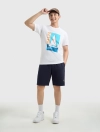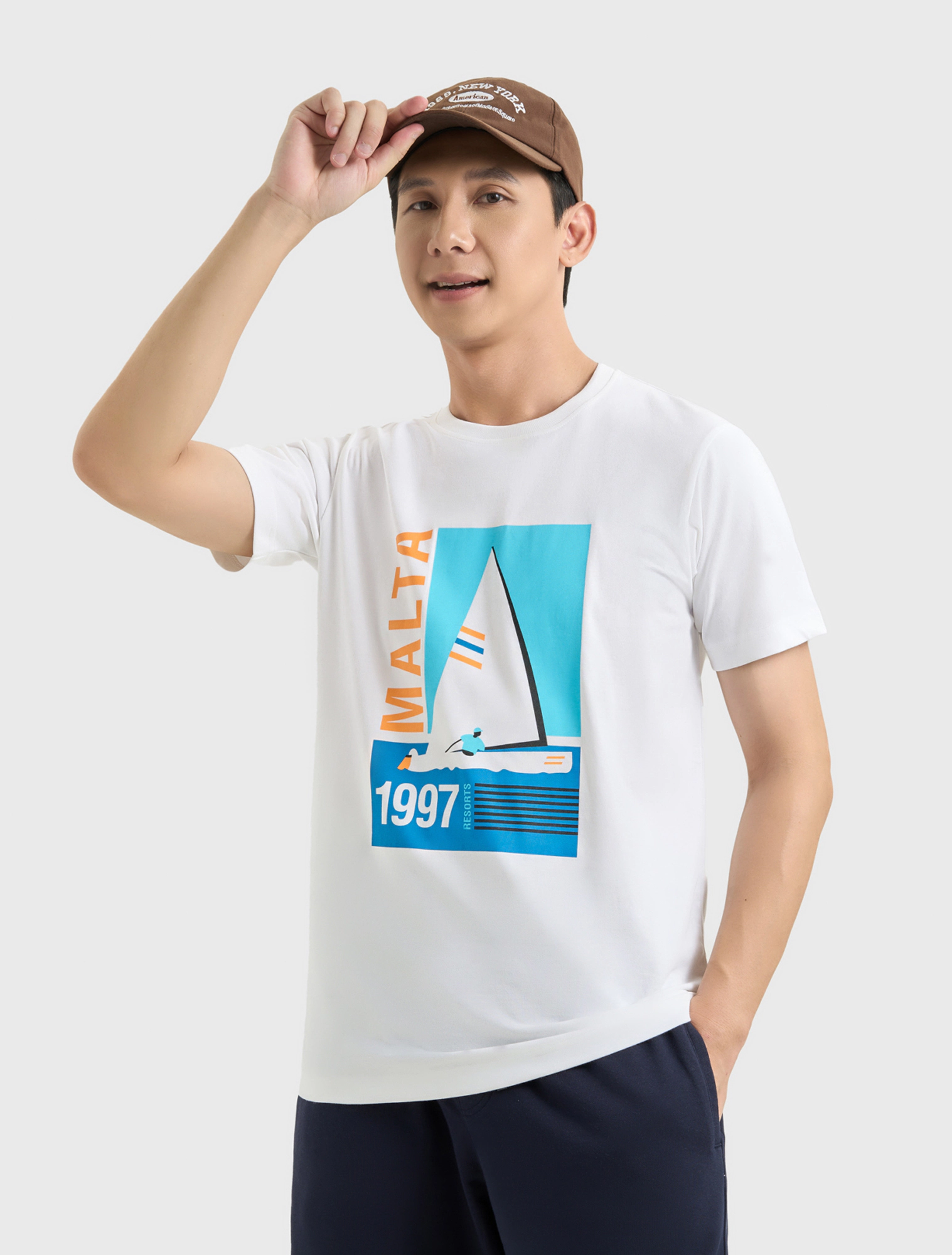 Áo phông nam phom regular với hình in bắt mắt. Phù hợp cho những chuyến đi chơi, du lịch hay mặc hàng ngày.