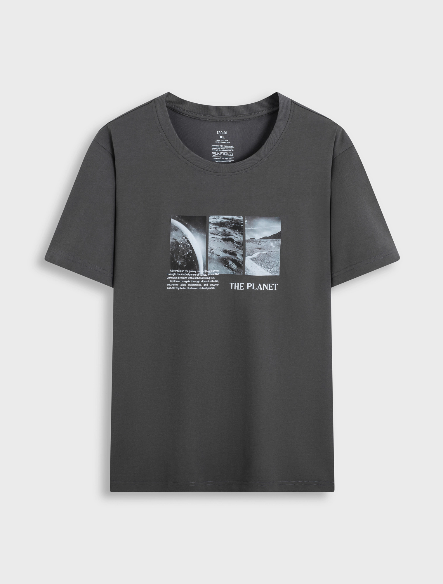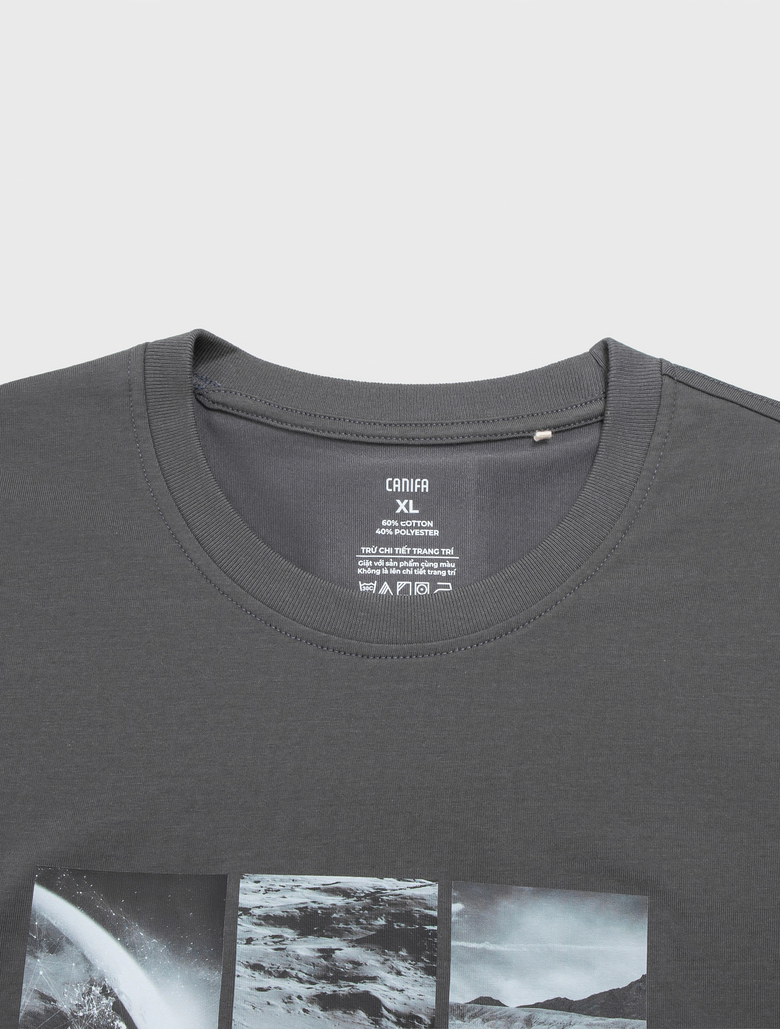 Áo phông nam với thiết kế in họa tiết nổi bật, mang lại sự trẻ trung và cá tính.