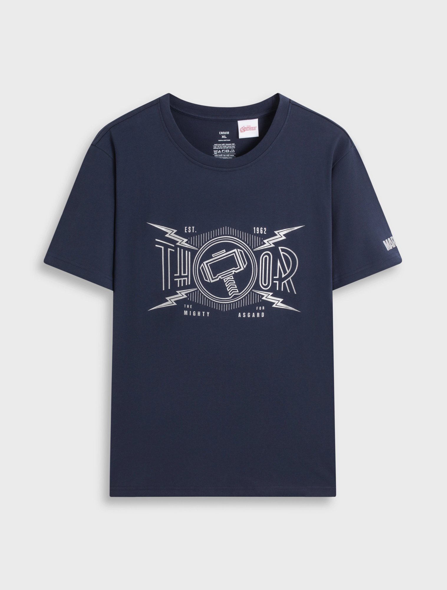 Áo phông nam dáng rộng với hình in trẻ trung.