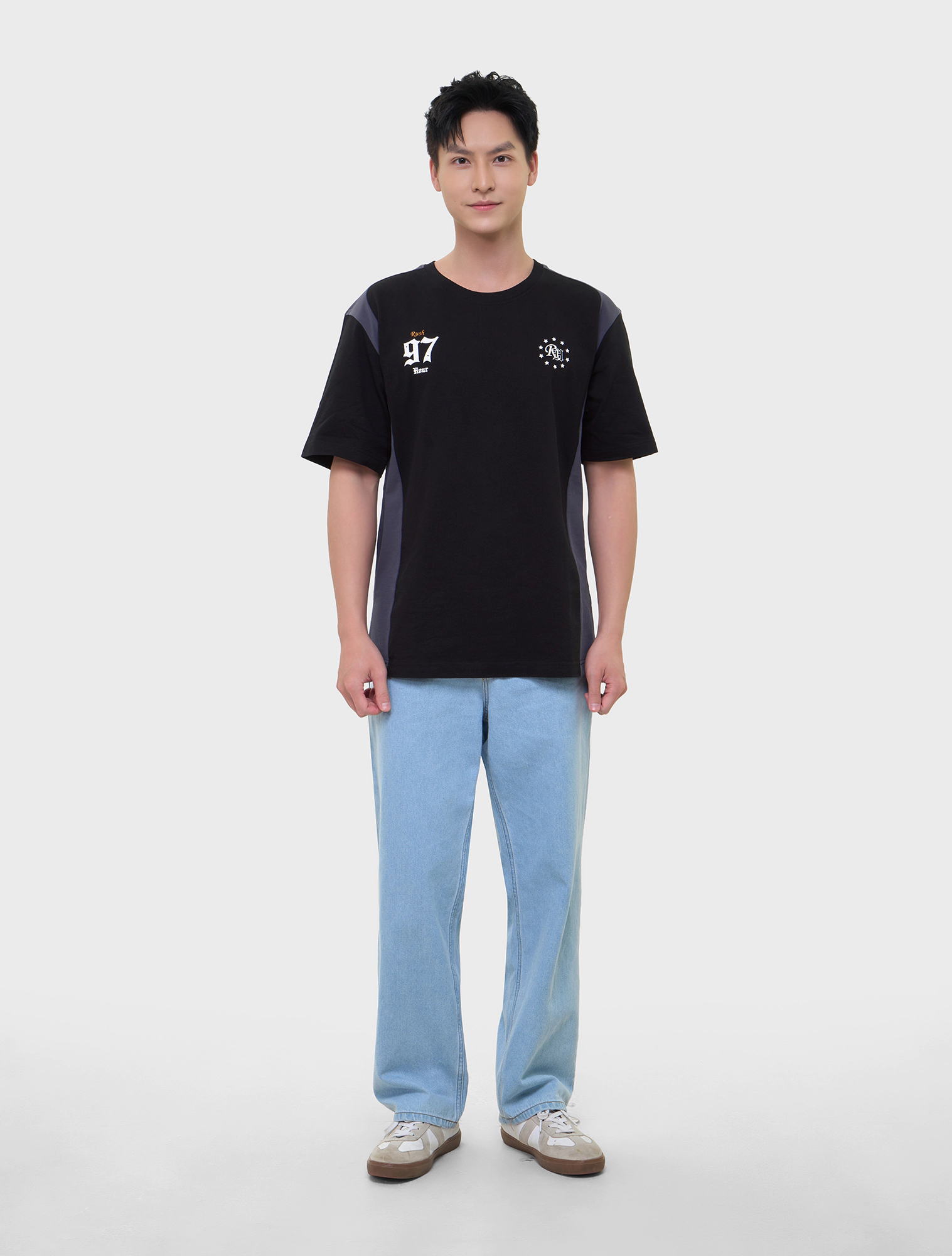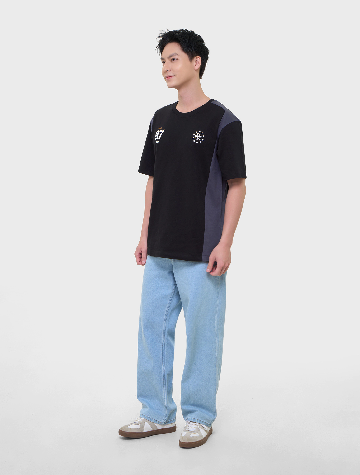 Áo phông nam phom relax với điểm nhấn phối thân trẻ trung, đồ họa nổi bật. Phù hợp sử dụng trong nhiều hoàn cảnh khác nhau