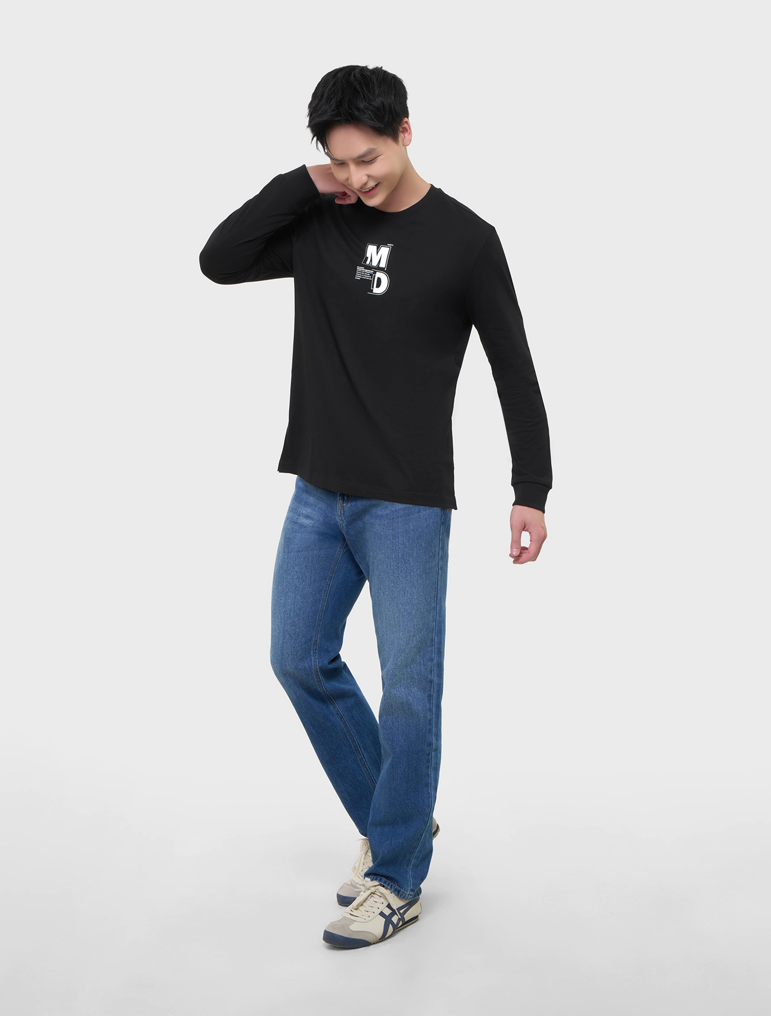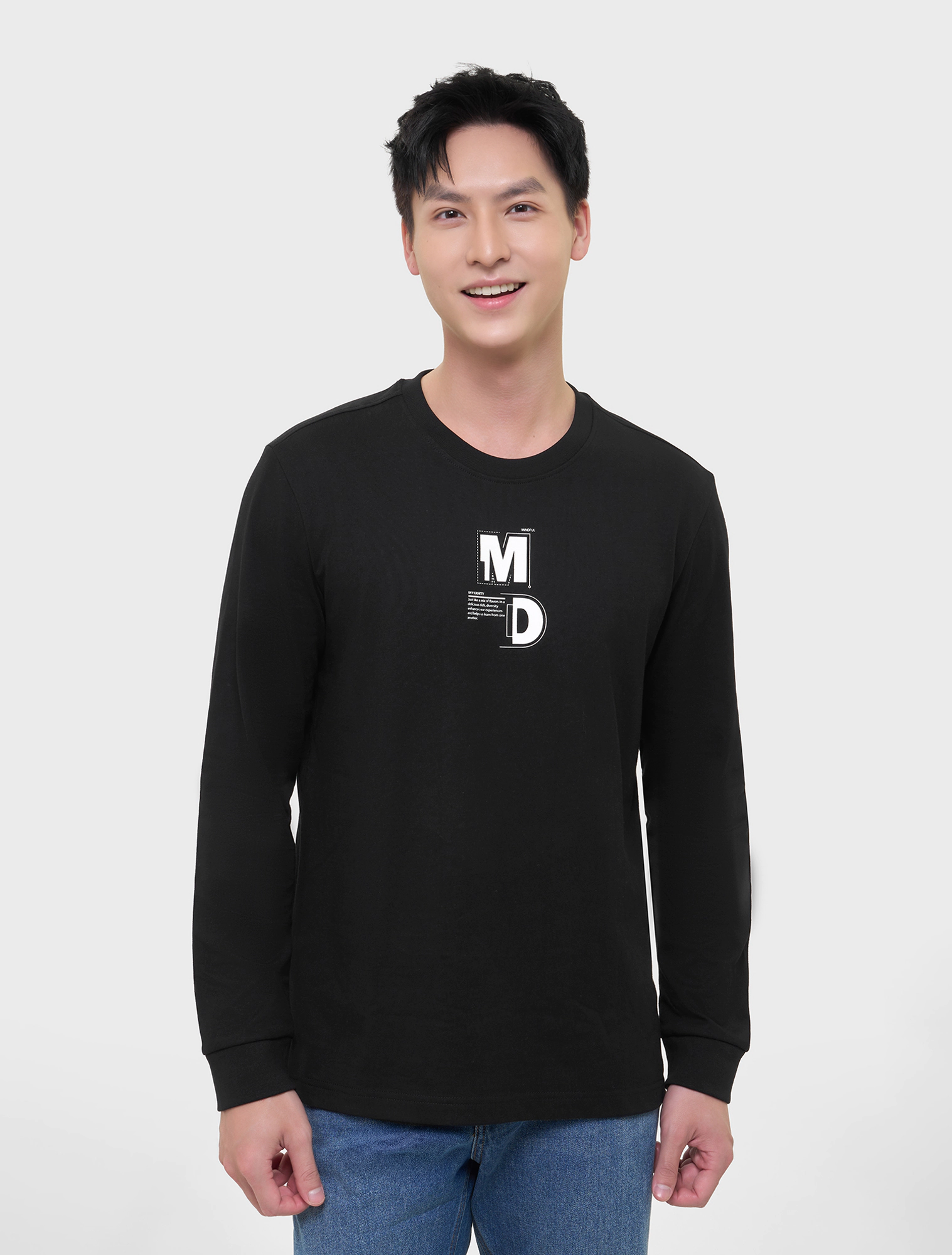 Áo phông nam dài tay phom regular có điểm nhấn hình in. Đa dạng hoàn cảnh sử dụng.