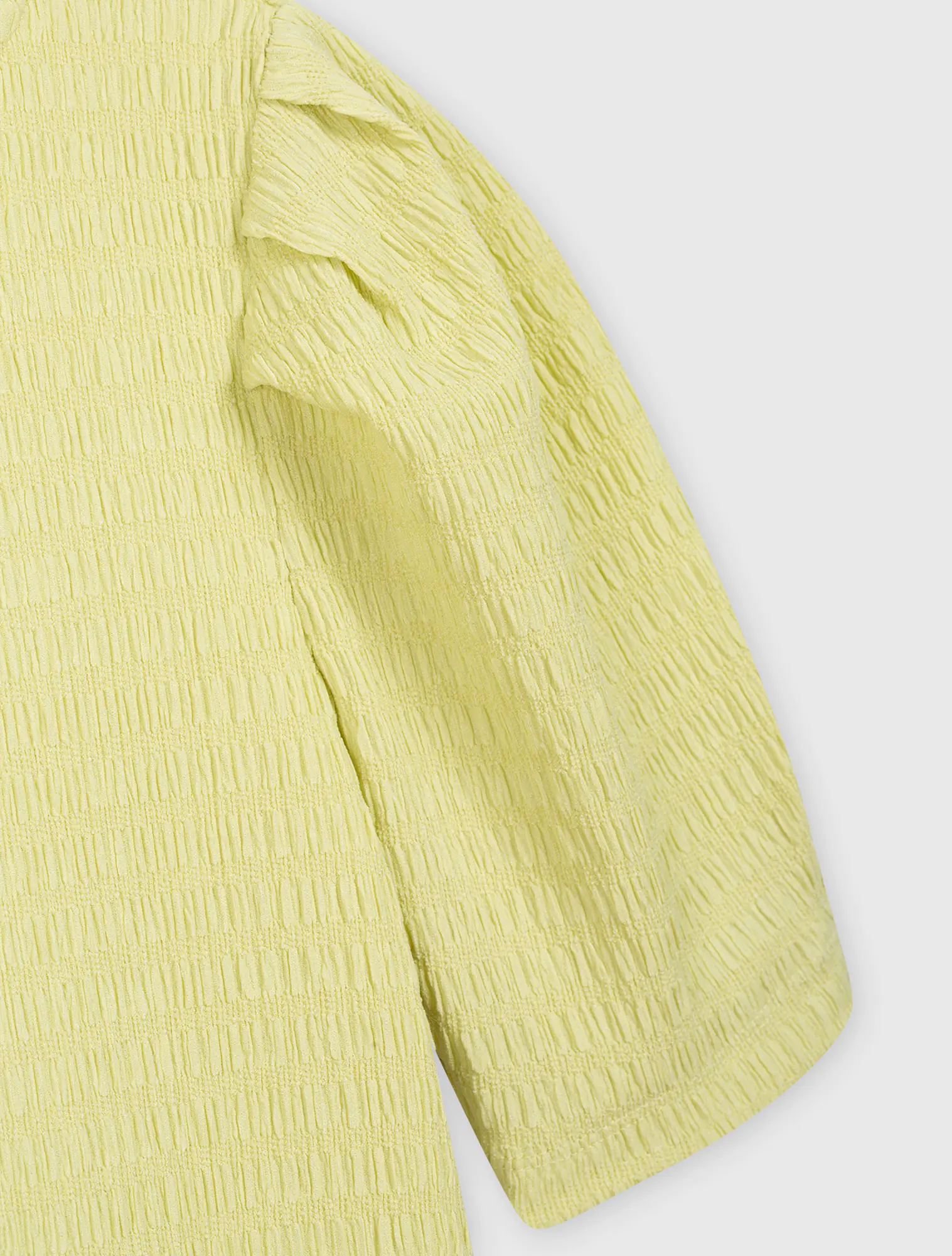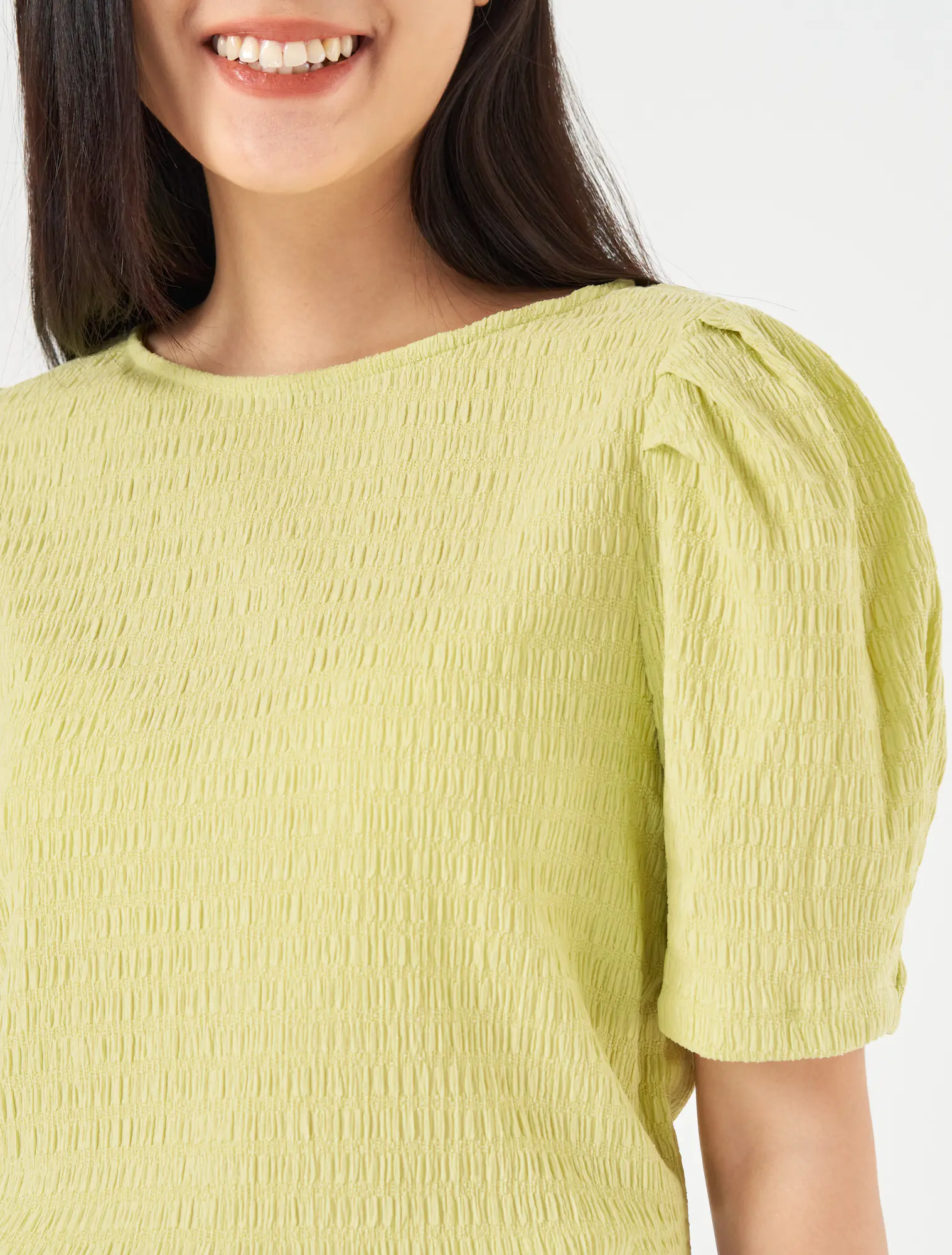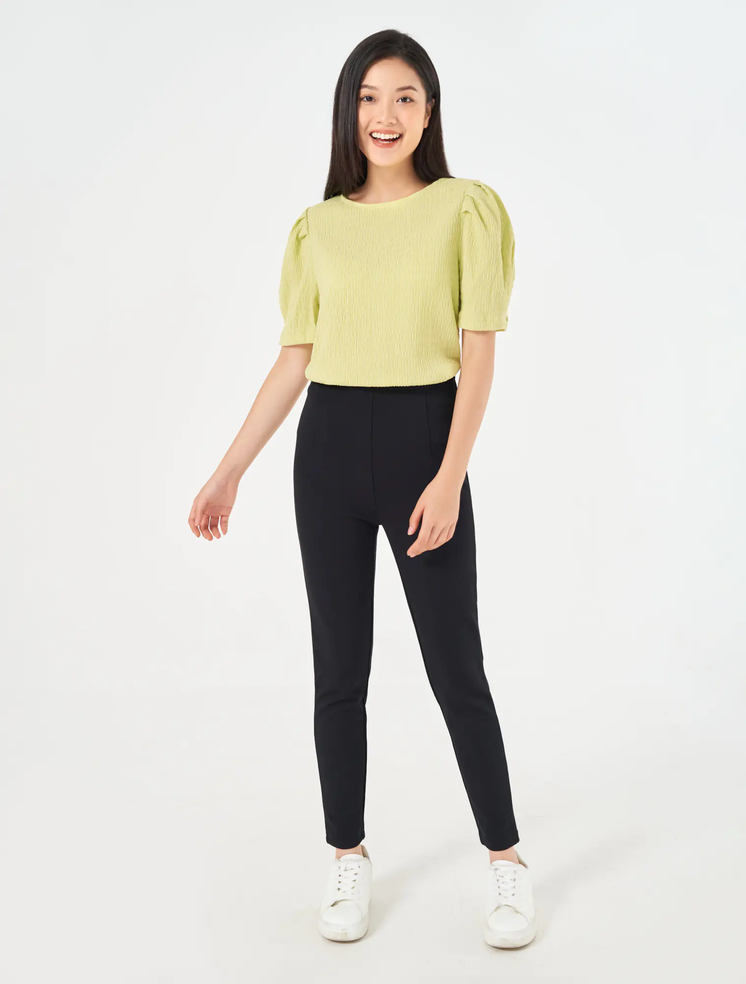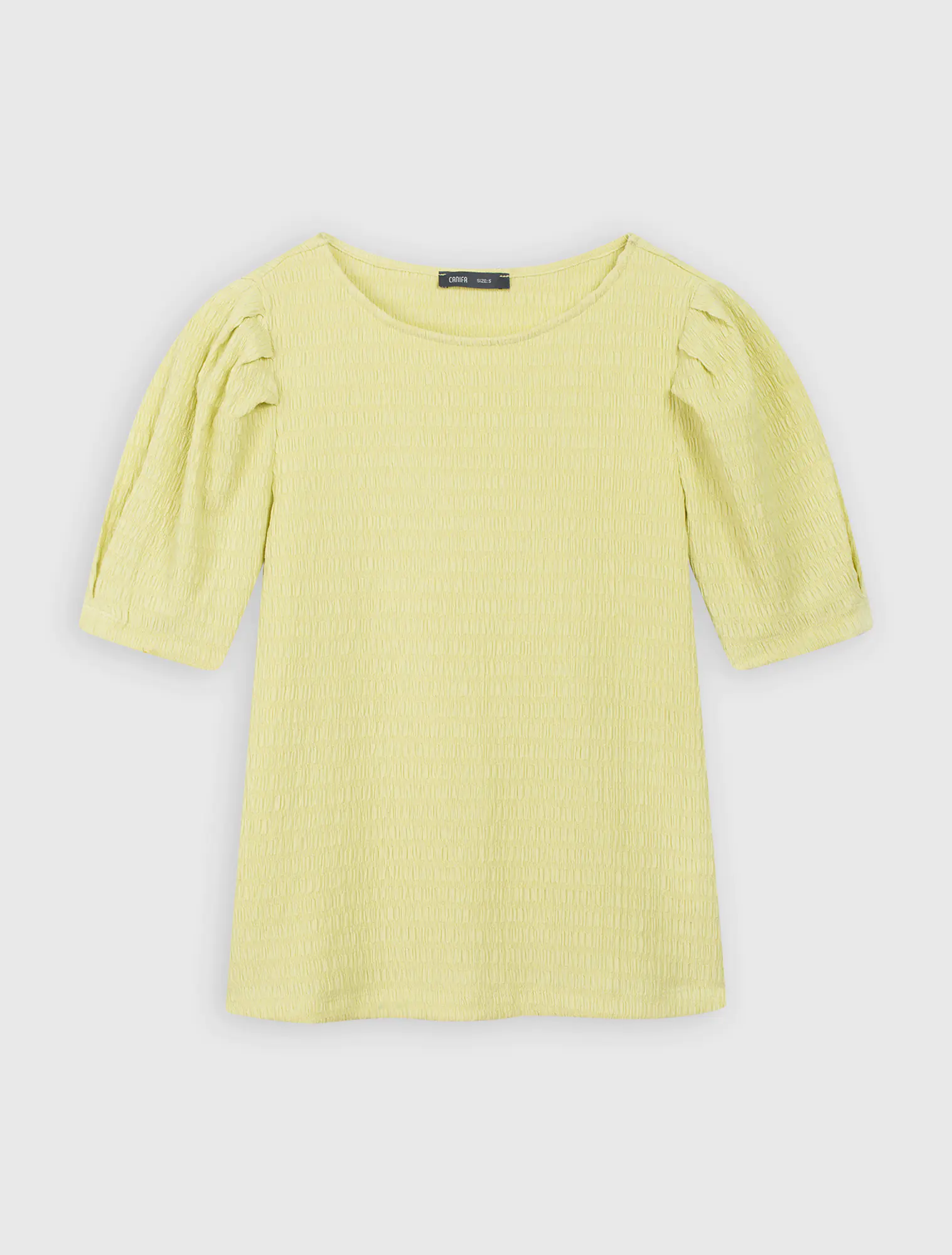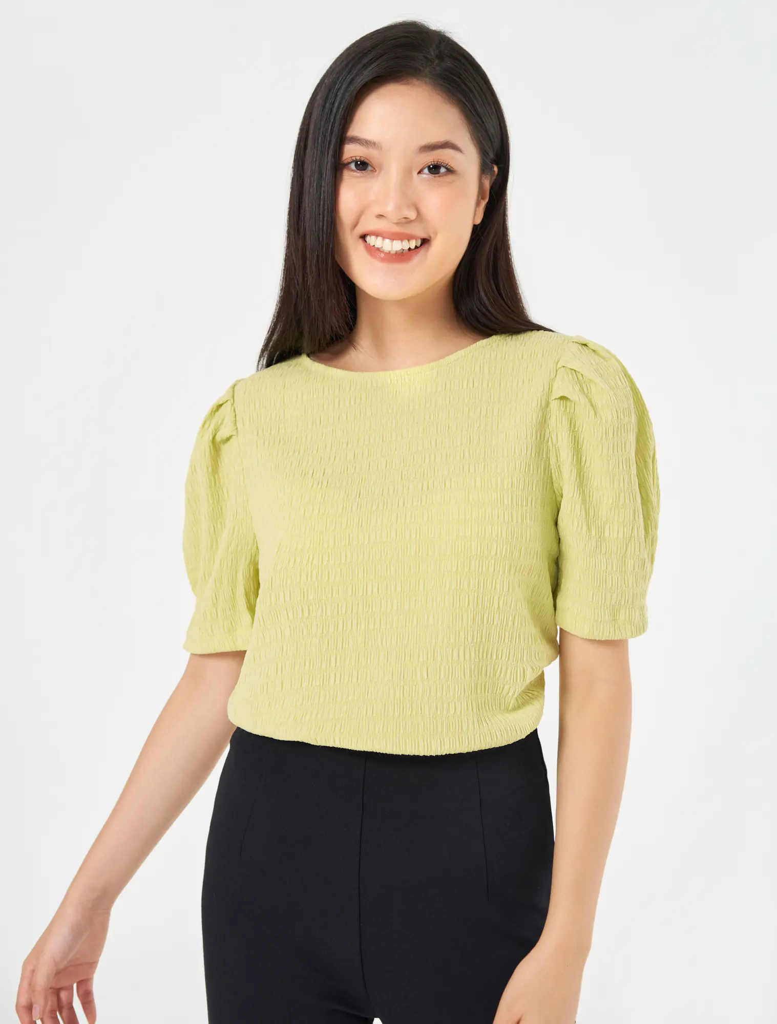 Dáng regular, cổ thuyền, tay cộc hơi phồng.