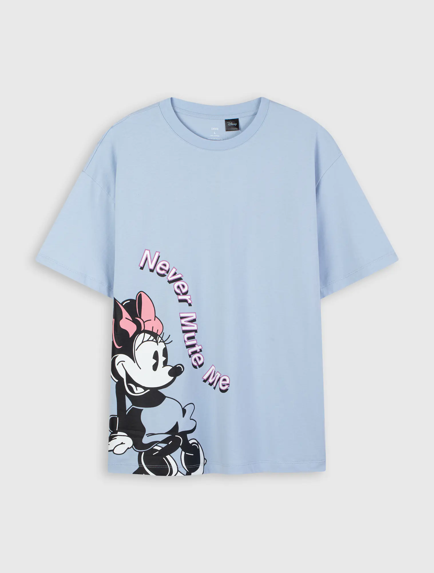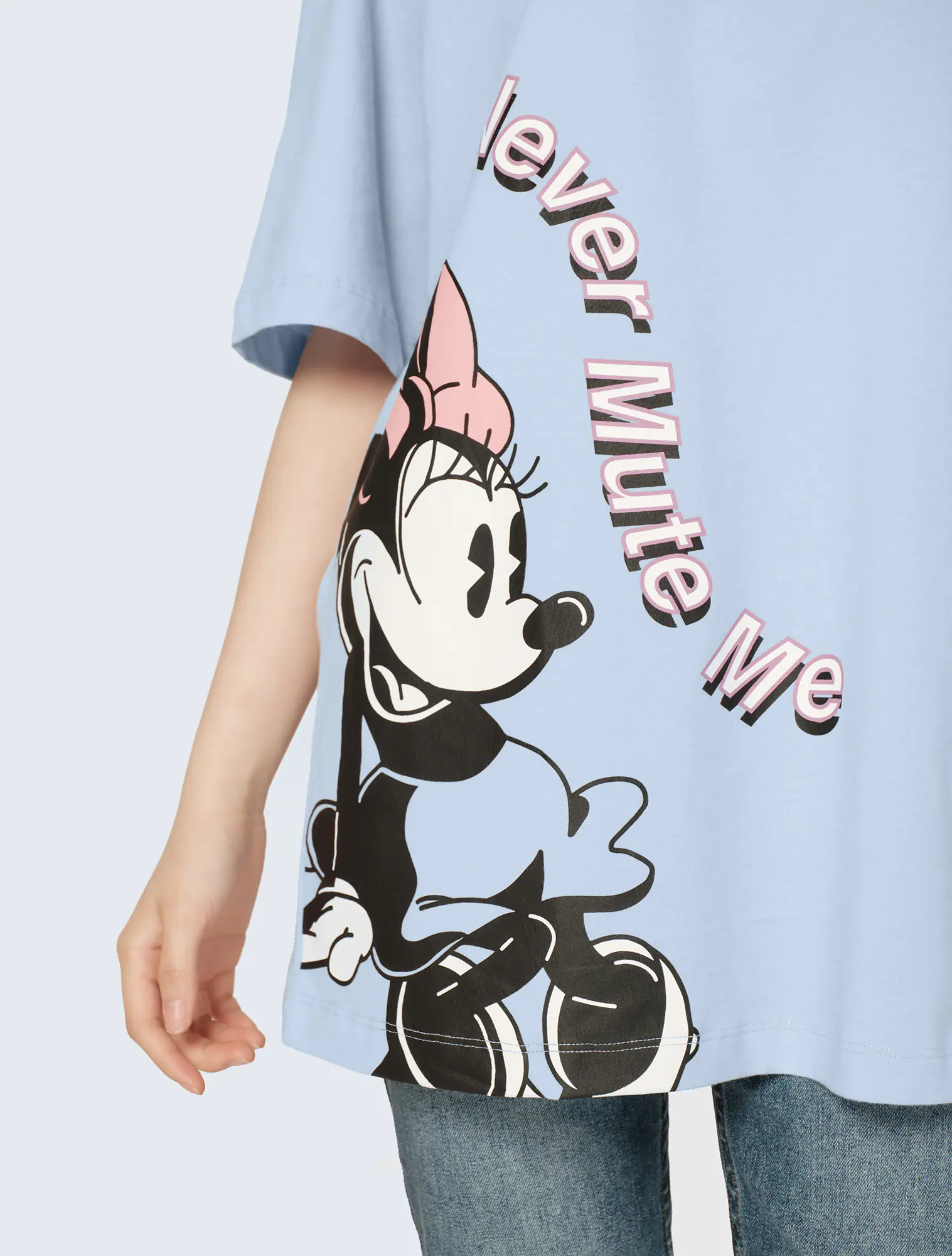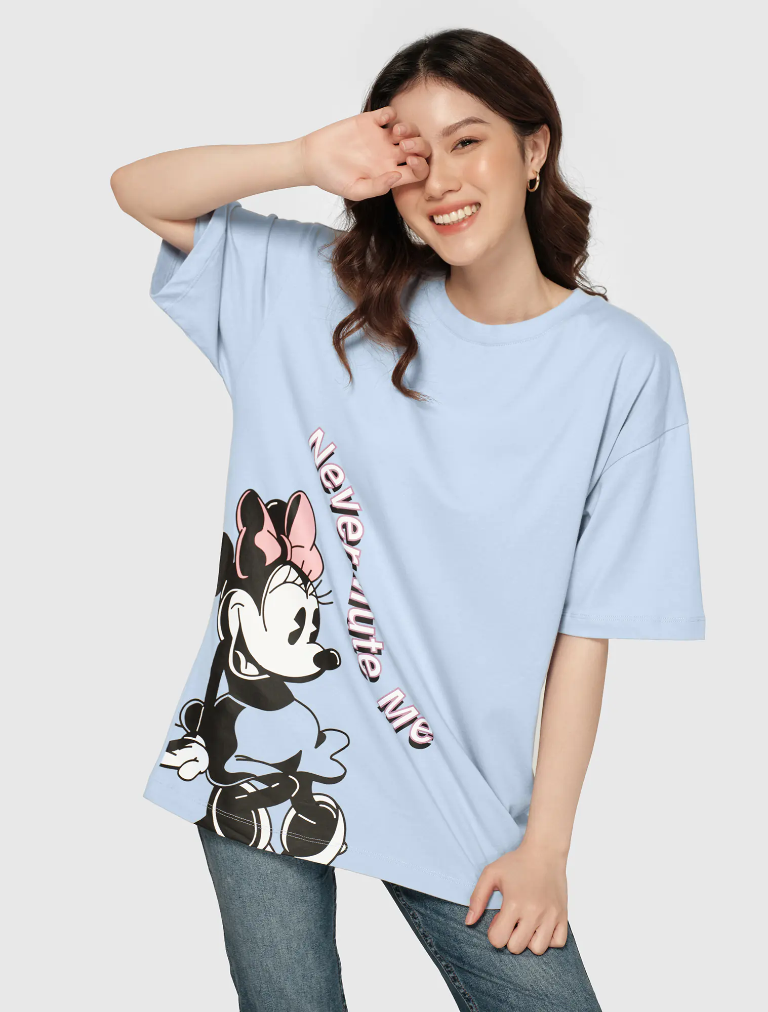 Áo phông nữ bo viền cổ in hình Mickey Disney, dáng basic