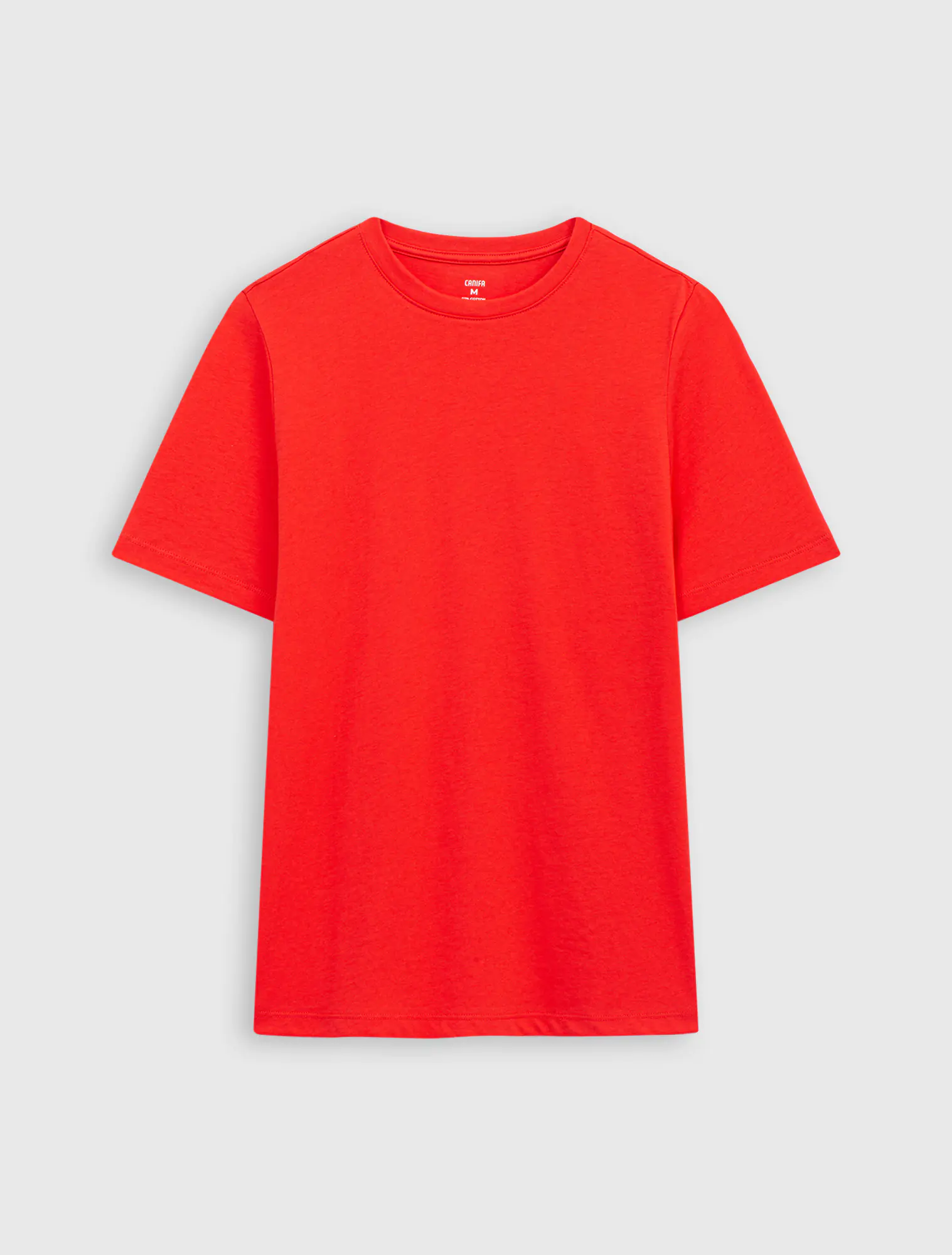 Áo phông chất liệu cotton pha, cổ tròn tay cộc.