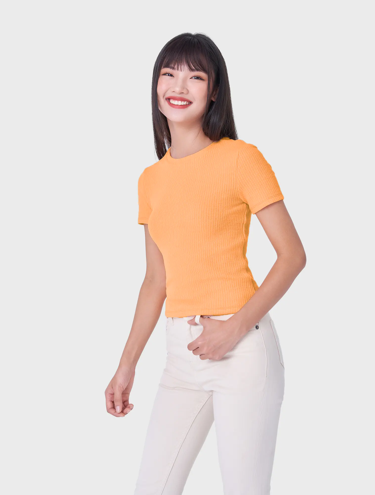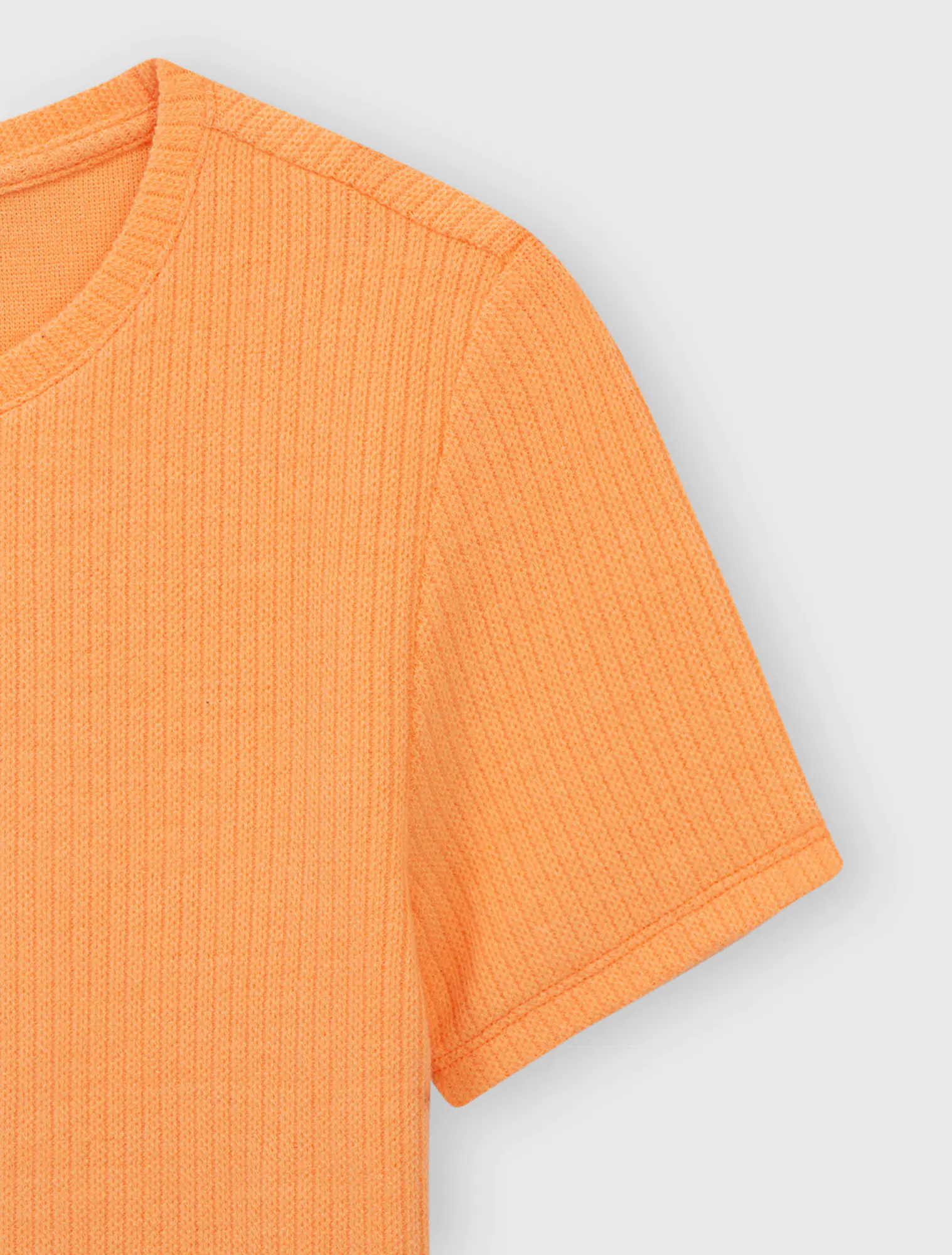Áo phông cộc tay, thiết kế đơn giản tập trung vào cấu trúc vải dệt làm điểm nhấn.