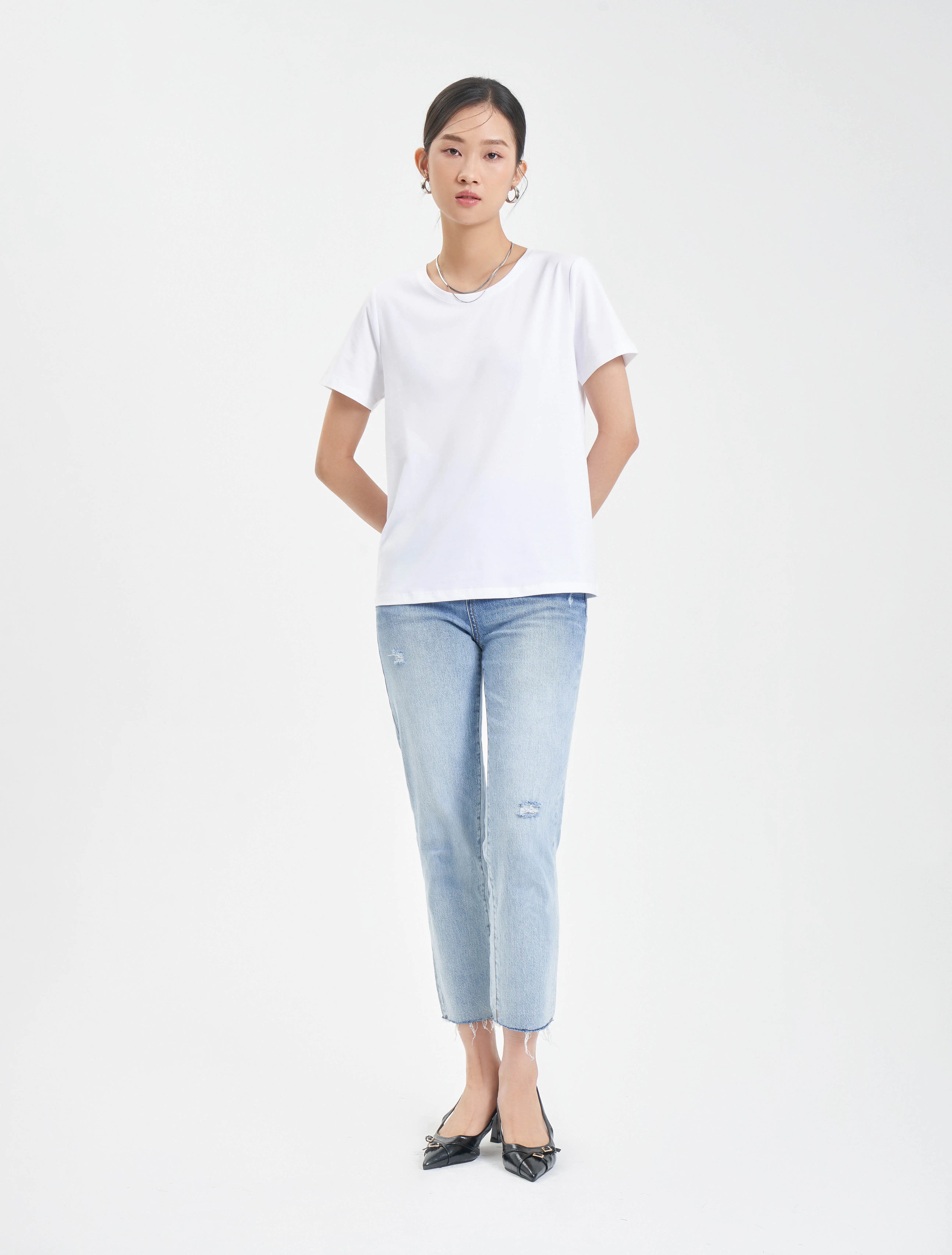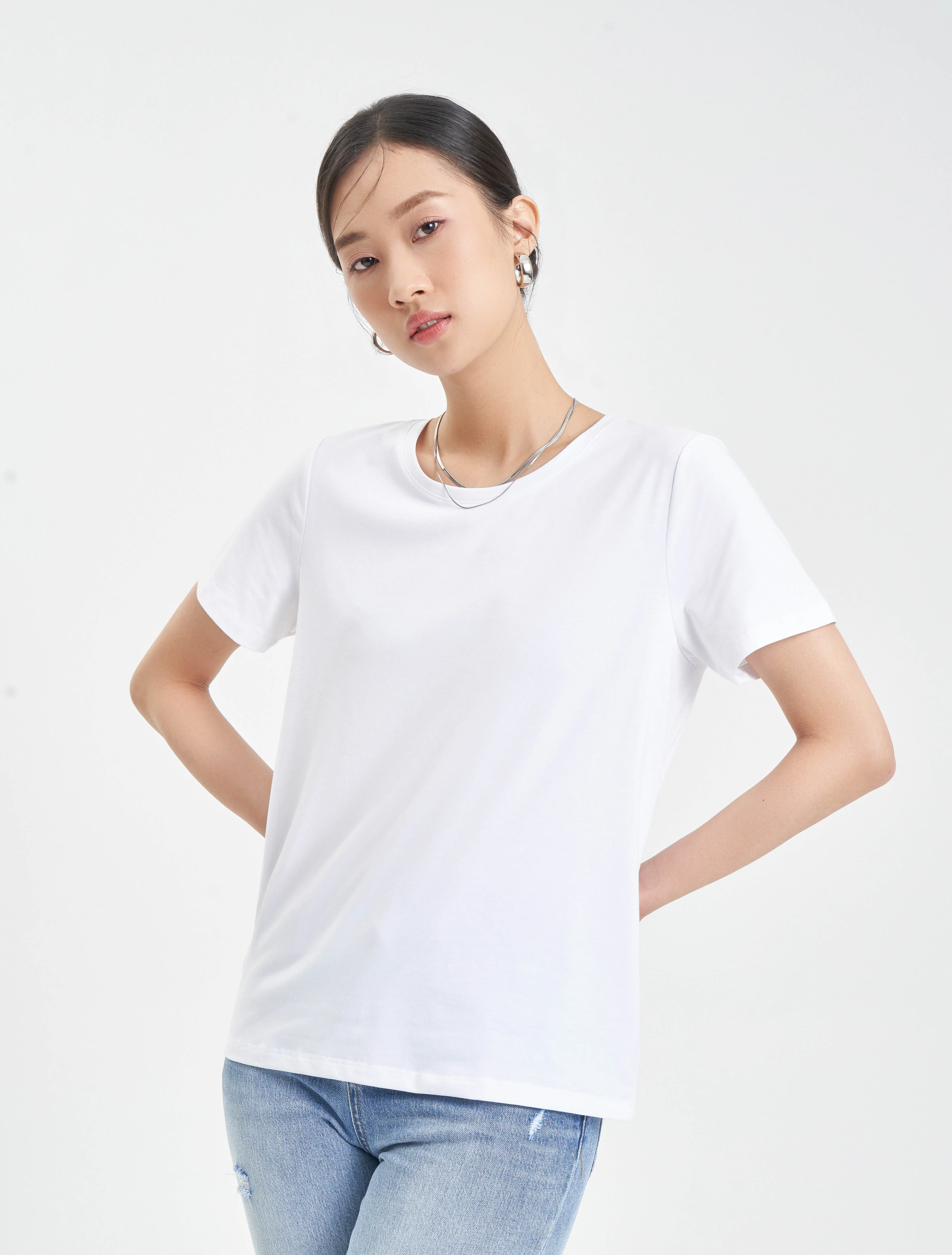 Áo phông nữ cổ tròn dáng suông