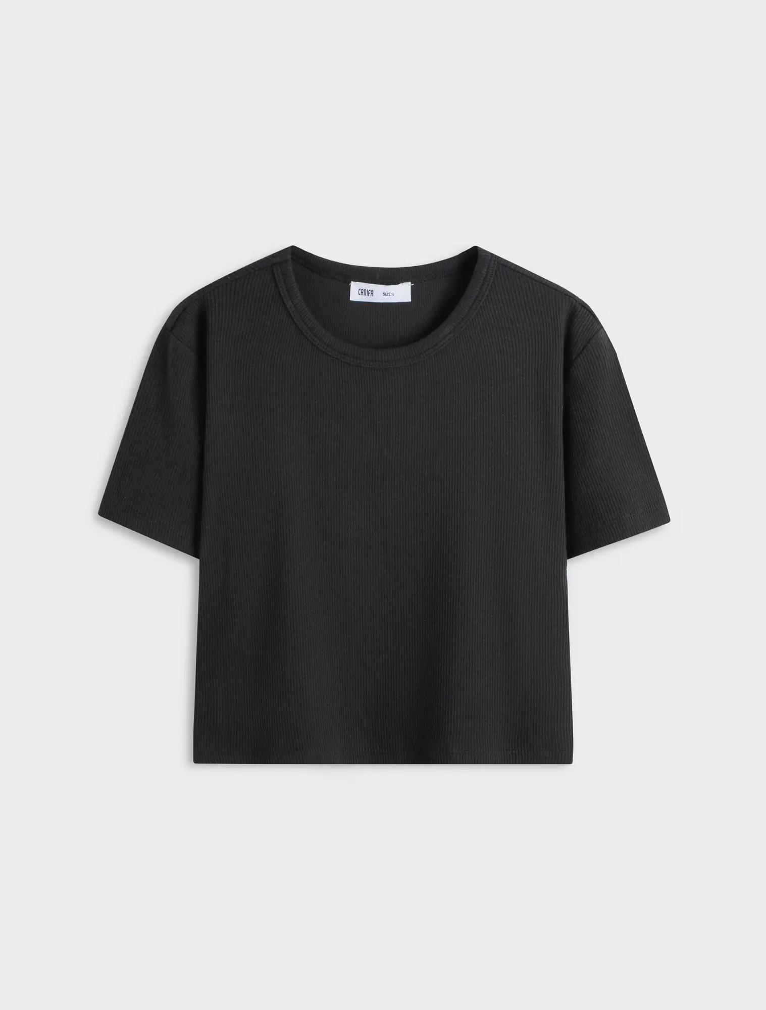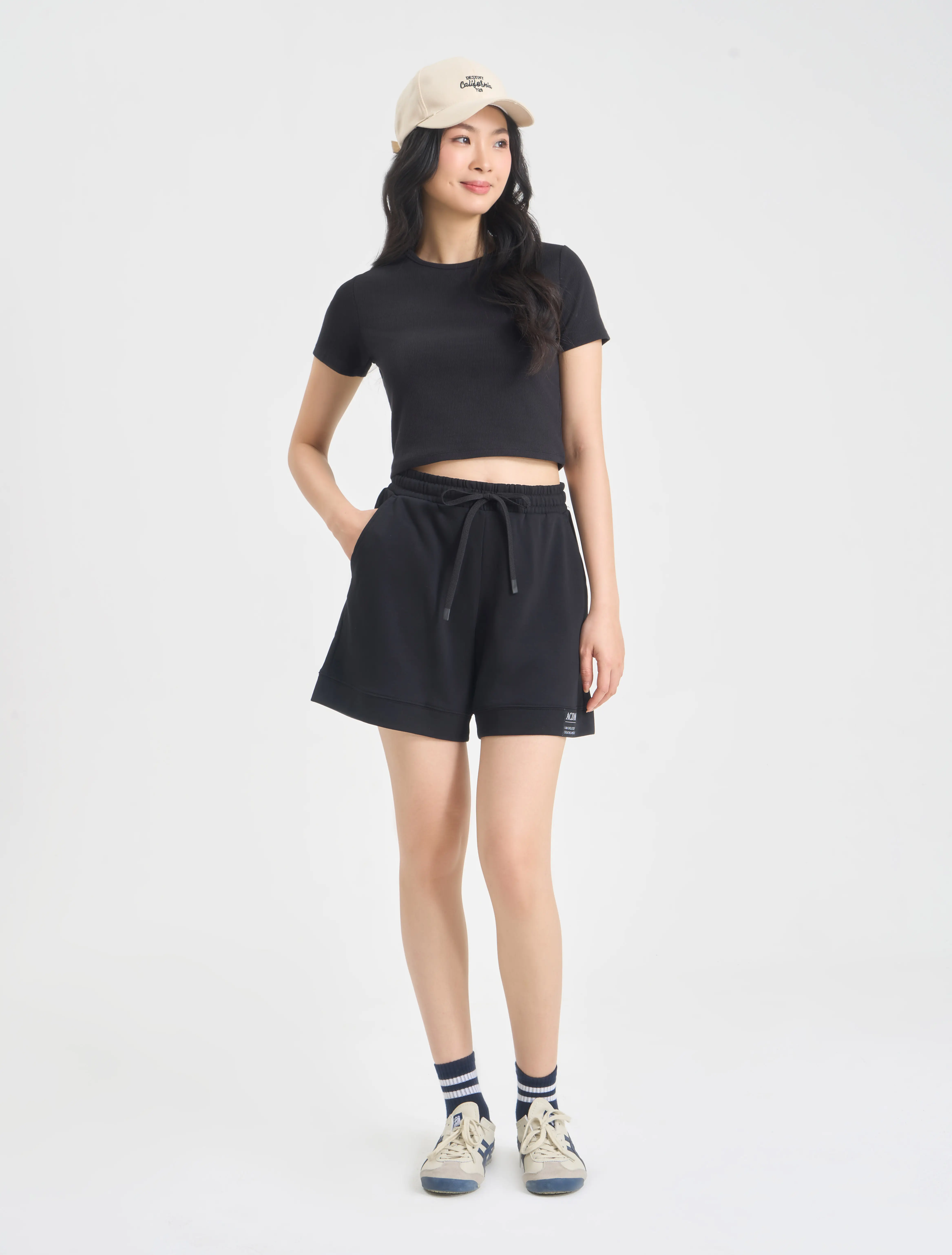 Áo crop nữ dáng ôm, với cấu trúc dệt rib tạo sự đàn hồi tối đa cho sản phẩm, thiết kế đơn giản phù hợp với nhiều trang phục khác nhau.