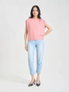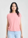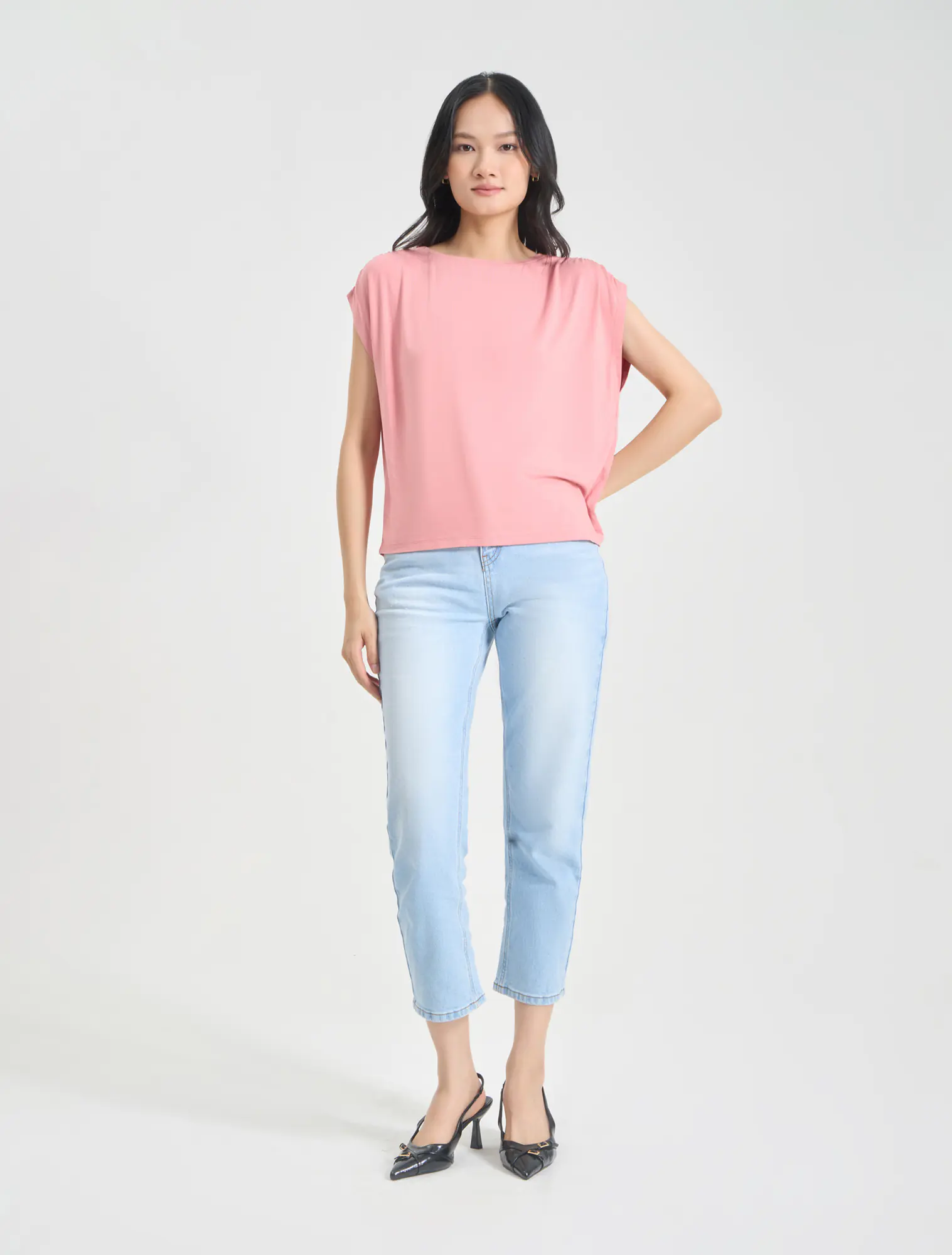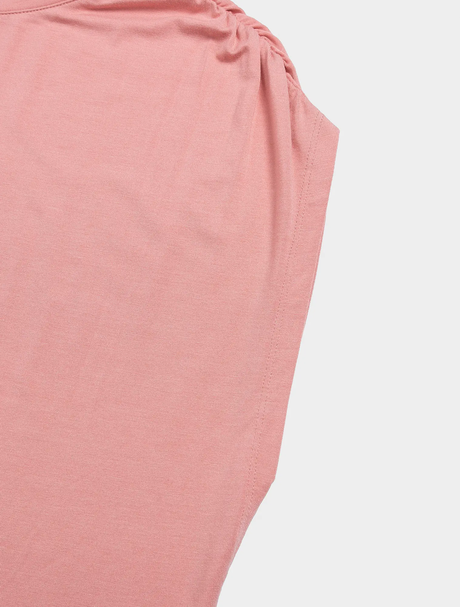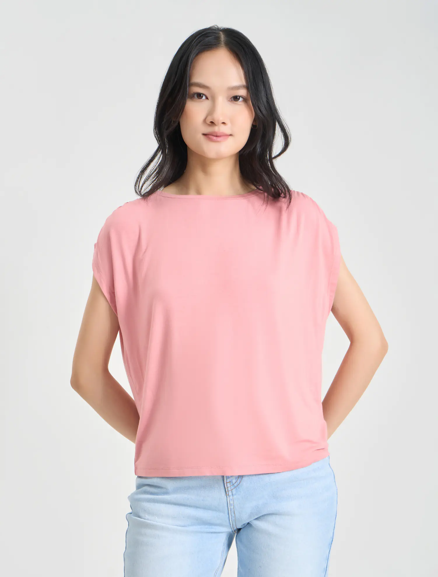 Áo phông nữ tay liền, chi tiết rúm vai tạo điểm nhấn. Sản phẩm dễ dàng mix-match để phù hợp với nhiều hoàn cảnh sử dụng khác nhau.