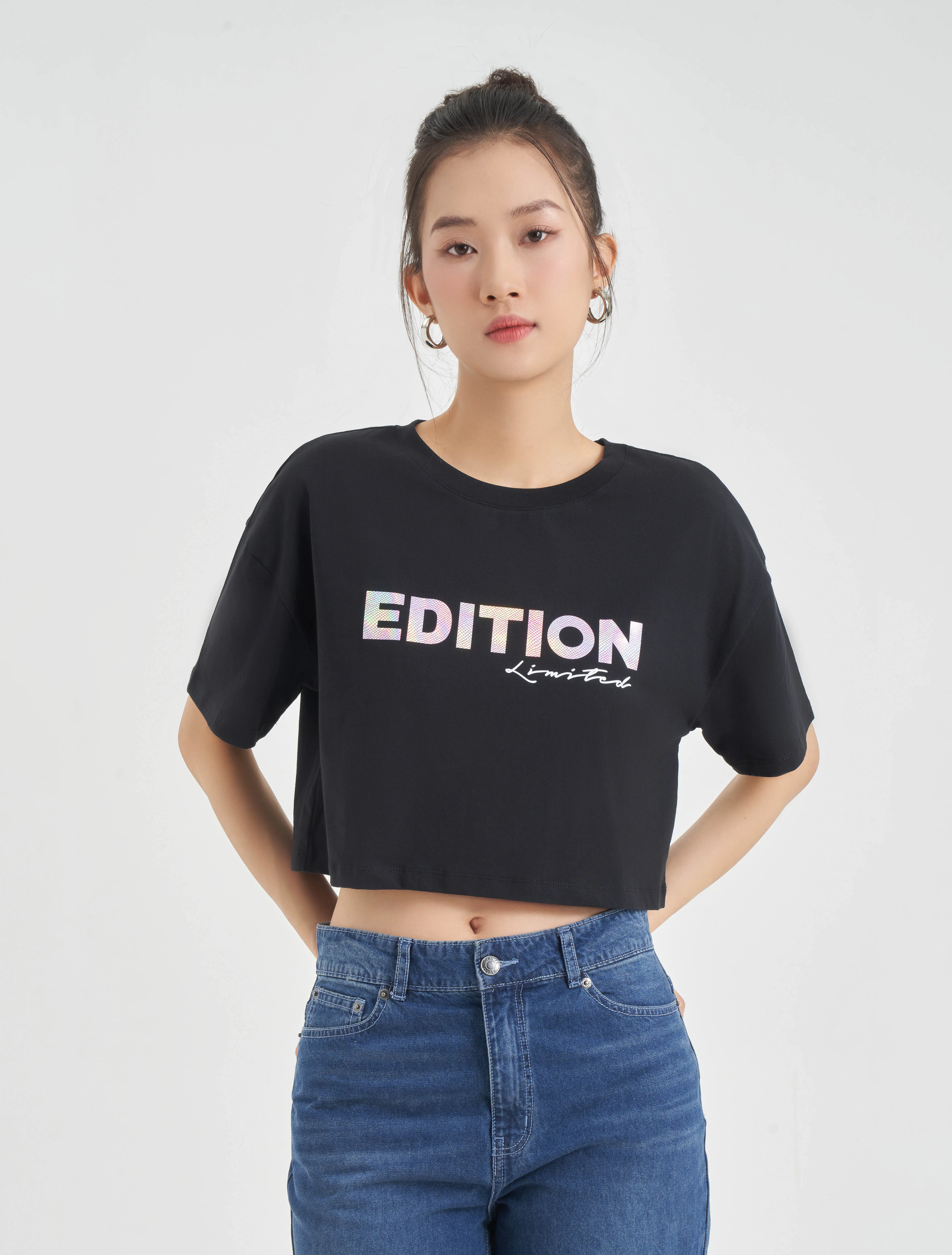 Áo phông croptop với điểm nhấn là phần đồ họa nổi bật và ấn tượng.