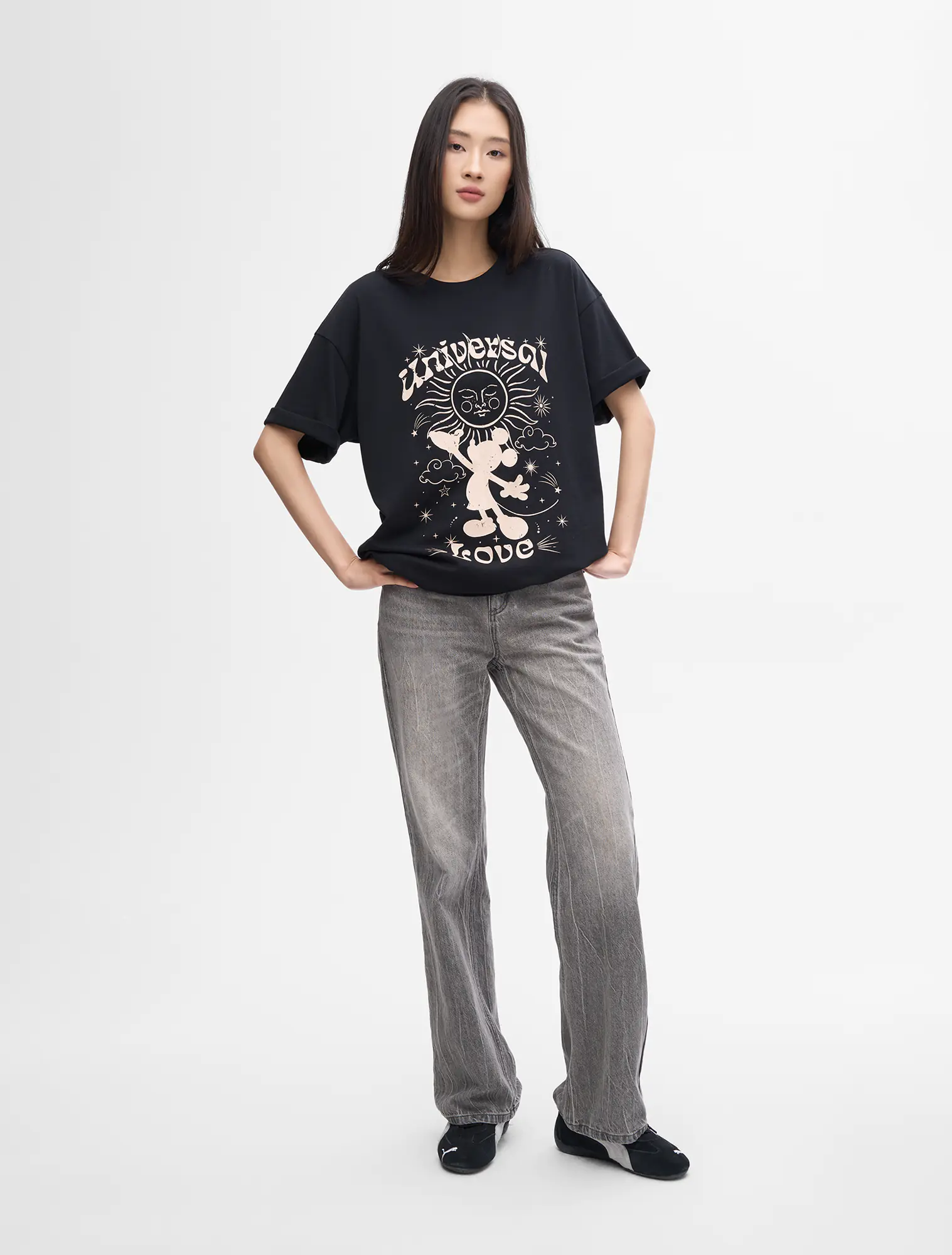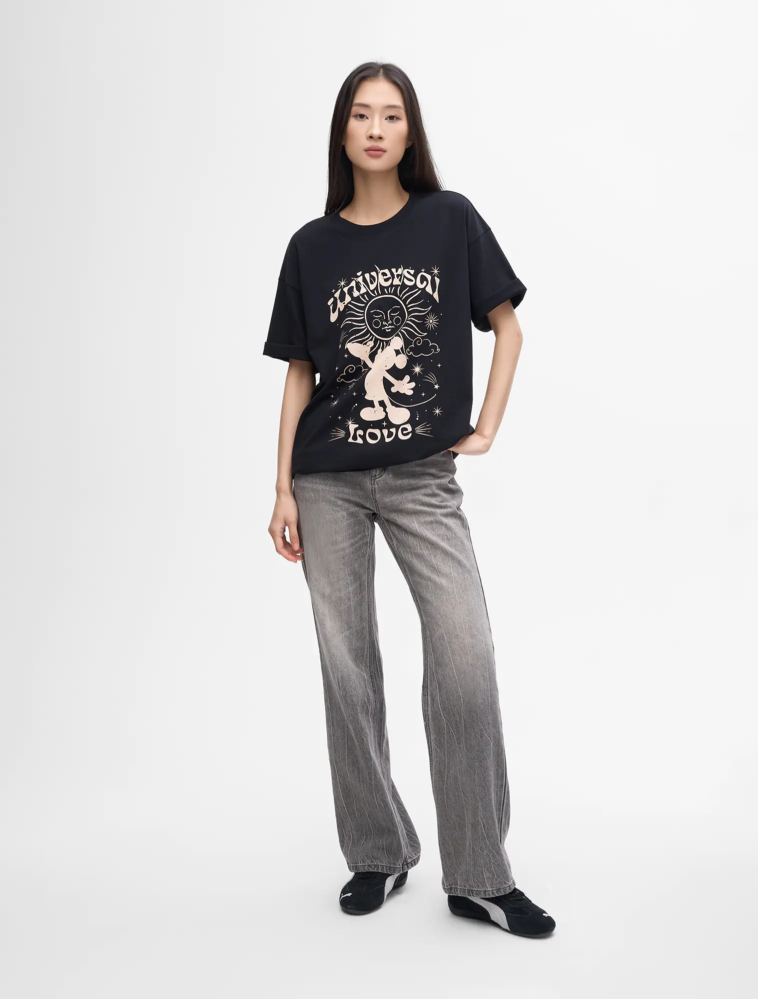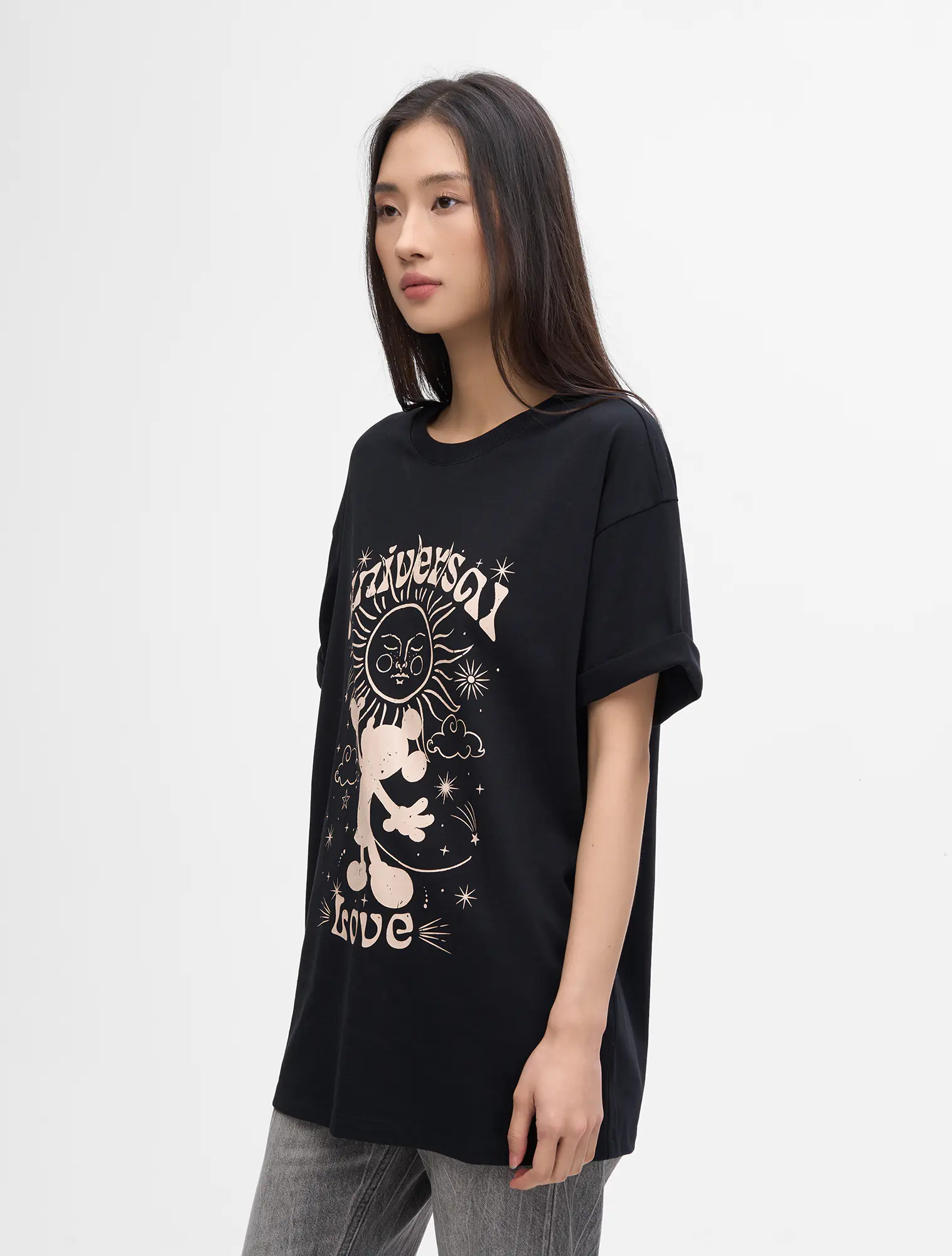 Áo phông nữ dáng oversize với thiết kế các nhân vật hoạt hình có bản quyền.