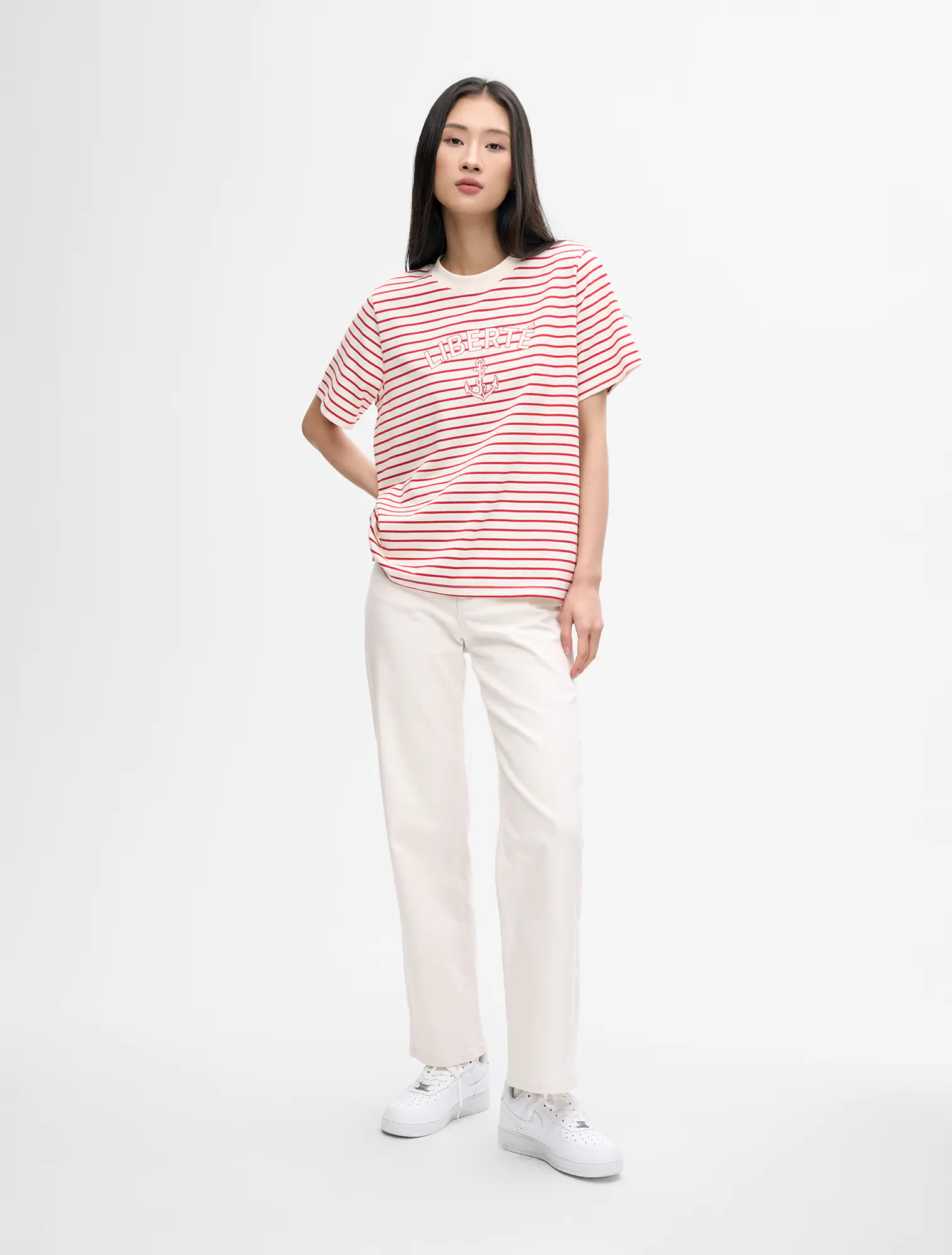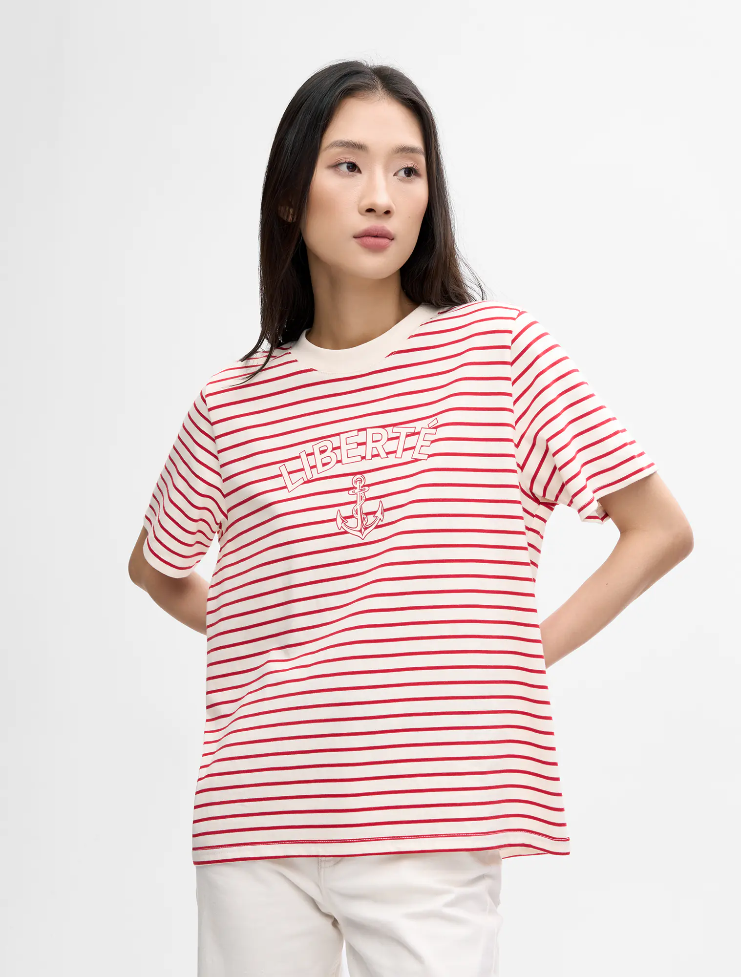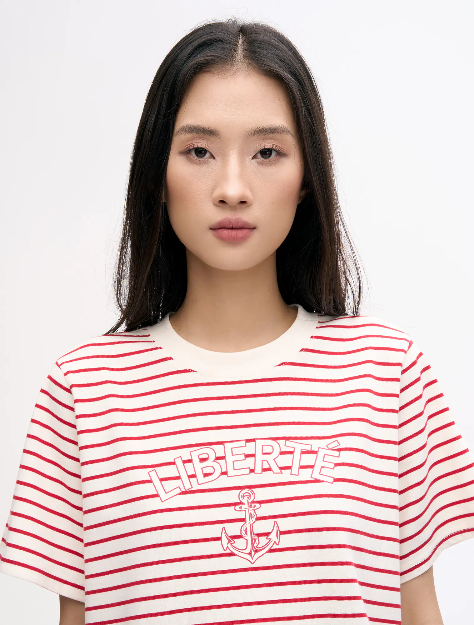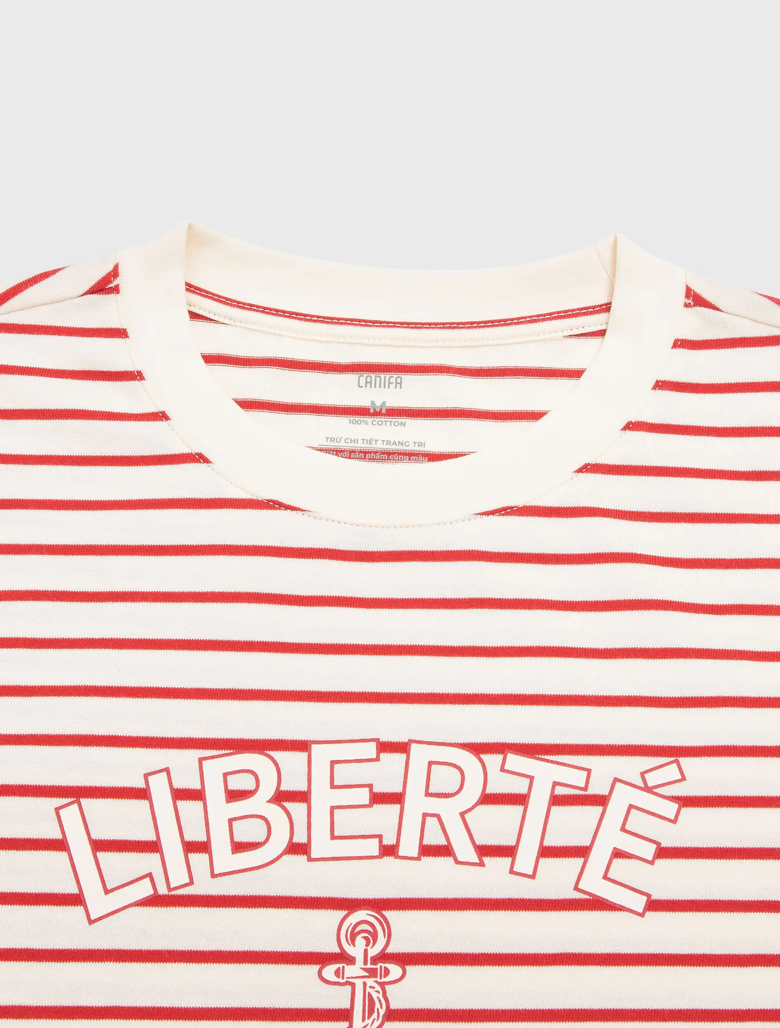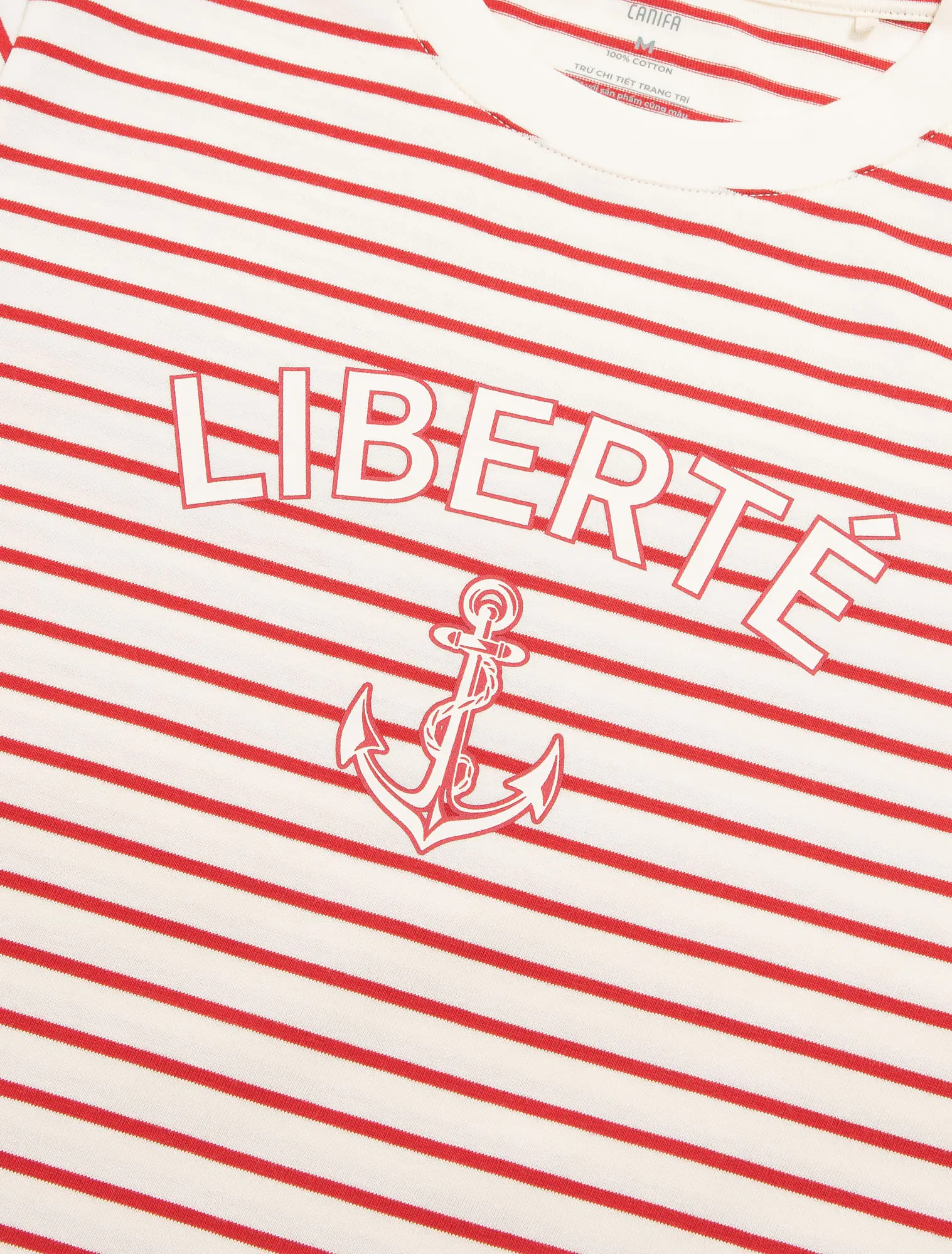 Áo phông nữ dáng relax, với chất liệu 100% cotton dệt kẻ ngang nổi bật, chủ đề kết hợp cả gia đình, rất phù hợp với nhiều hoạt động vui chơi, du lịnh cùng cả nhà.
