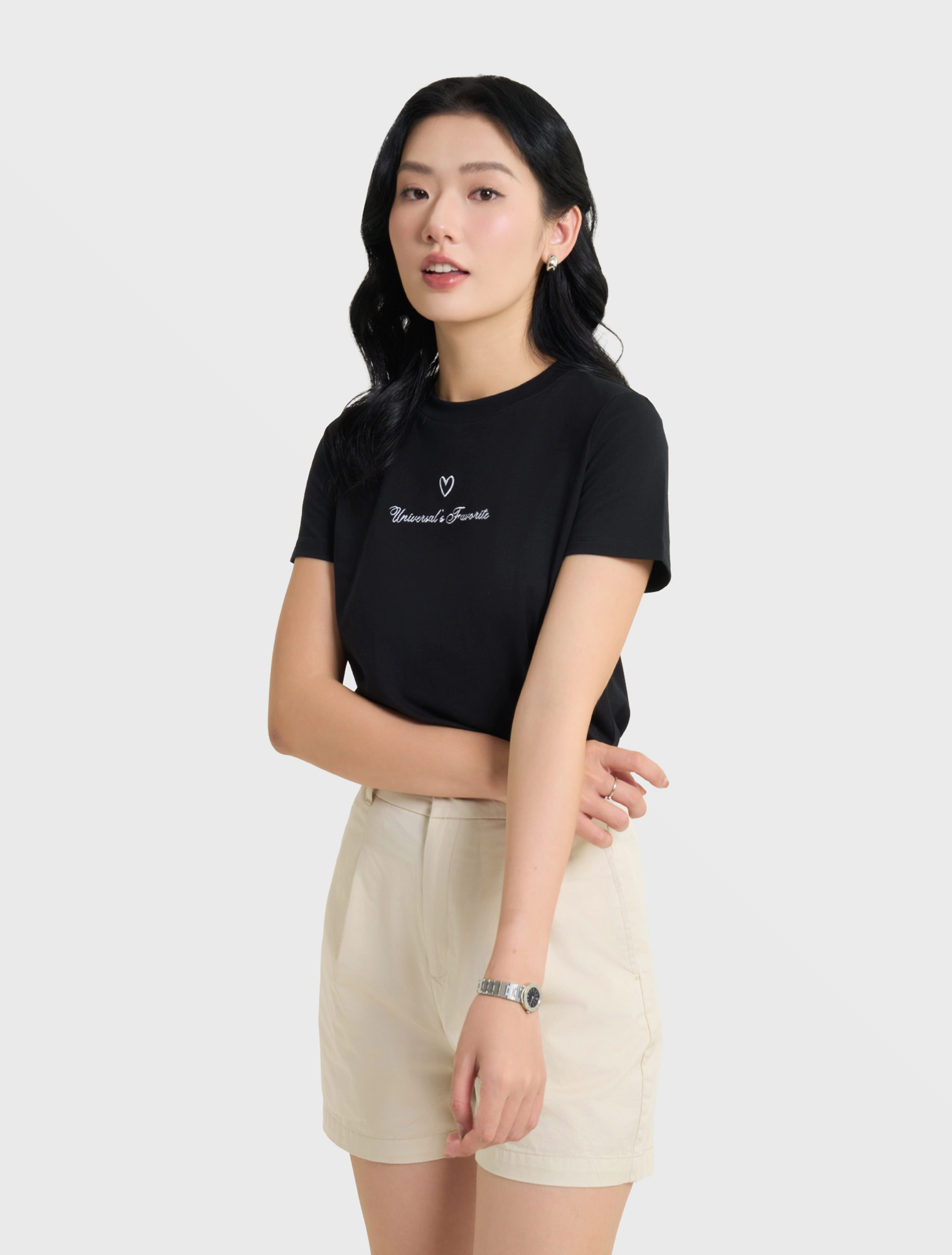 Áo phông nữ dáng babytee chất liệu 100% Cotton USA với phần đồ họa nhỏ tạo điểm nhấn, khiến sản phẩm vừa đơn giản nhưng vẫn có sự tinh tế khi mix đồ.